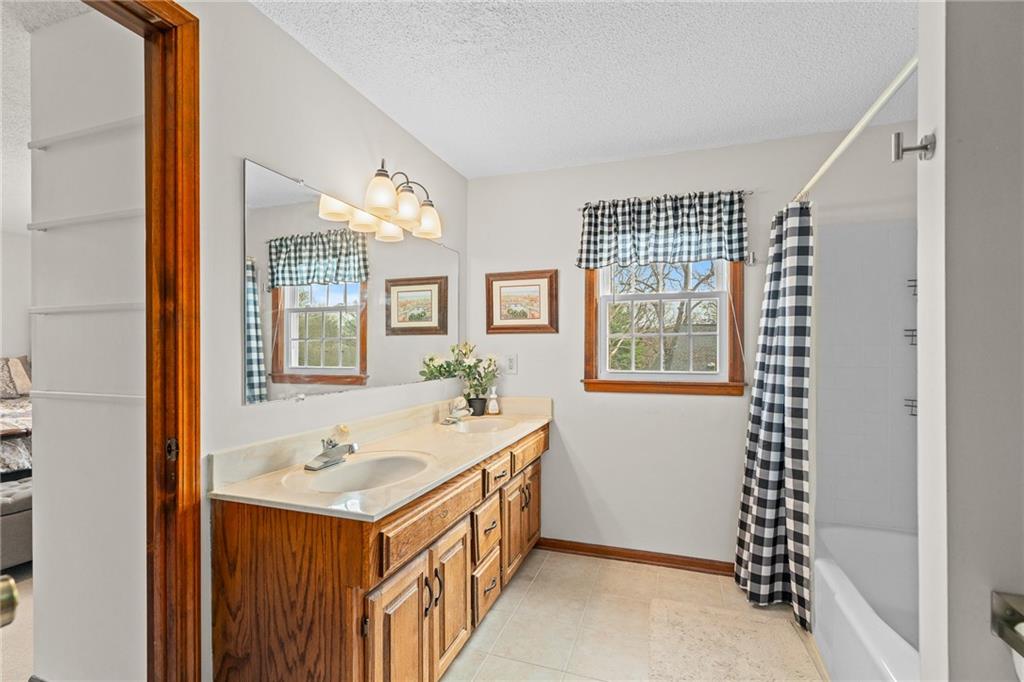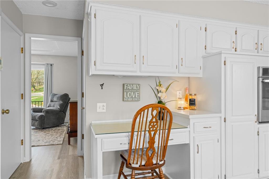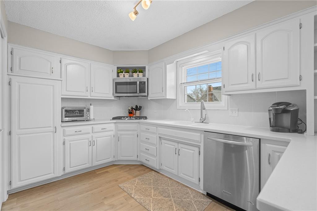 Welcome to the best kept secret in Overland Park, The Clearings neighborhood! Look no further! From the rocking-chair ready front porch and level front yard, you will love the curb appeal! This amazing 1.5 story home has space for everyone without losing that cozy feeling OR being too crowded. Enjoy two bedrooms upstairs, two on the main (including the primary suite), and two in the lower level with a full bath and walkout basement. From the entry way you can see the stunning hearth fireplace, formal dining room, and entrance to the guest bed/bath on the main. The white kitchen is light and bright with an eat in area and stainless steel appliances. You will love all the upgrades and special features like laundry hookups on the main floor, a working gas fireplace, the new primary suite vanity and shower, NEW windows, culligan water filtration system, new siding/gutters, NEW hard surface floors, and a brand new deck! NO HOA gives you ultimate freedom and affordability for this home with one-level living! Nothing to do but move in! Schedule your showing today, this one will go fast!