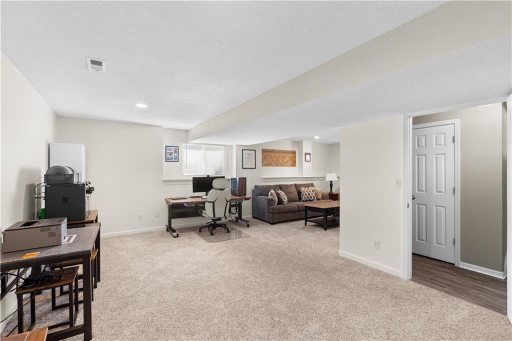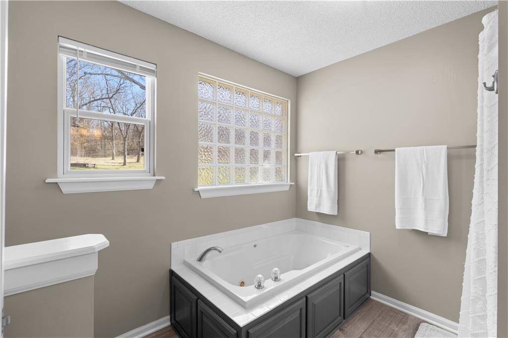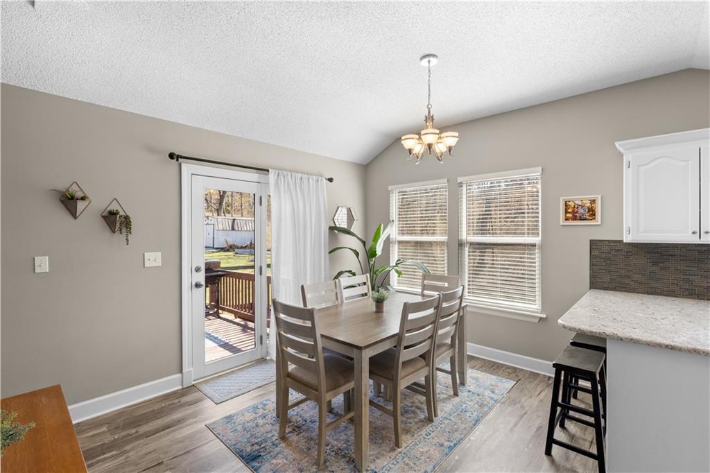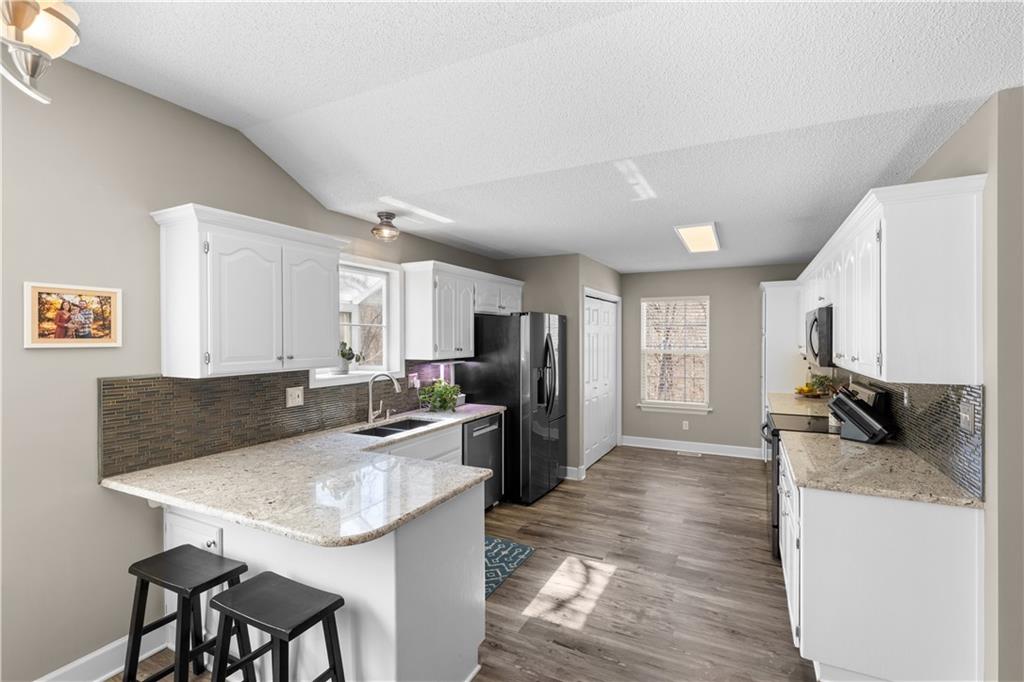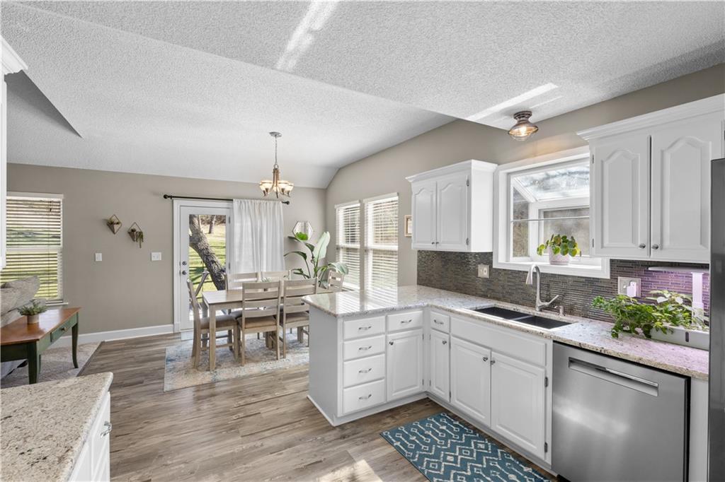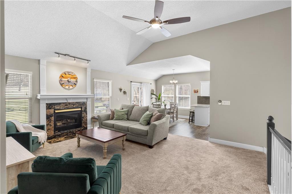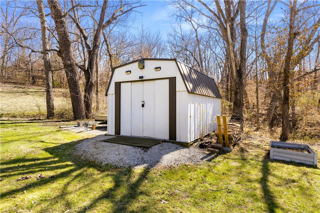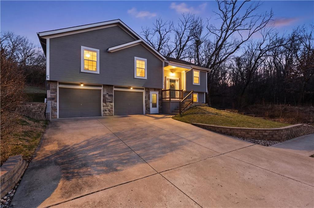 Welcome to your private small-acreage estate, a perfect sanctuary for those who appreciate nature without the burden of extensive upkeep! This beautifully updated home features 3 bedrooms and 2.5 baths, along with a spacious finished basement. Tucked away at the end of a quiet street, you can enjoy exceptional privacy while relaxing on your back deck, where it feels like you're surrounded by acres of tranquility. This split-entry home is designed for main floor living, featuring an expansive open floor plan. The large living room boasts vaulted ceilings, a cozy fireplace, and impressive windows that frame views of the private backyard, seamlessly connecting you to the fully renovated eat-in kitchen. The kitchen is a standout with granite countertops, a pantry, stainless steel appliances, and a breakfast bar that makes entertaining effortless. The master suite serves as a true retreat, offering a walk-in closet, large windows, and an indulgent bathroom equipped with a double vanity and a jetted tub. The finished family room is perfect for entertaining and includes an office space and a cozy TV area, along with a convenient half bath. An oversized garage adds convenience, with an additional entry door from the outside, ample room for storage, and a wash sink. Plus, a back shed provides even more space, keeping your garage organized. This home has undergone extensive updates and has been very well cared for, featuring new carpet, fresh paint, stylish laminate wood flooring, updated kitchen and bathrooms, mirrors, lighting, and fixtures throughout—making it move-in ready! Take advantage of this prime location, just minutes from Smithville Lake and Paradise Pointe Golf Course, all within the highly acclaimed Smithville AAA School District! Don’t miss the opportunity to claim this remarkable home as your own!