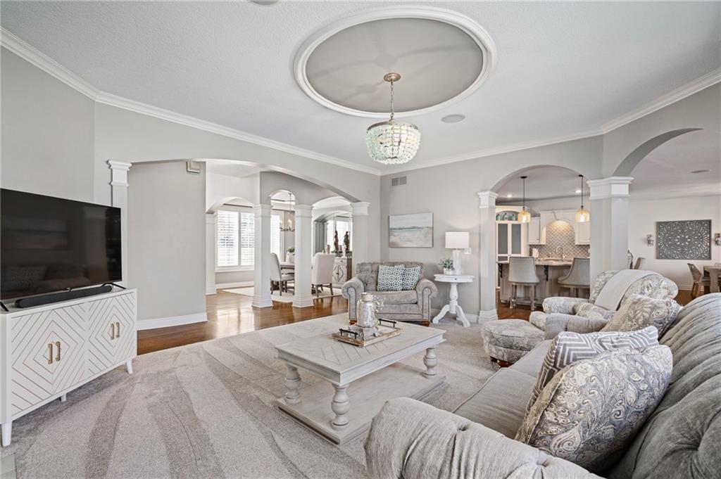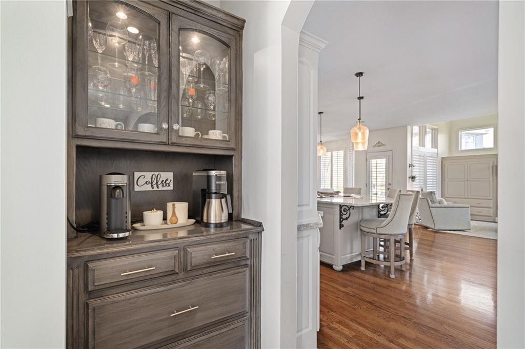 Welcome to this stunning 2-story home in highly sought after Woodland Reserve community in Lenexa! From the moment you arrive, the WOW factor is undeniable. This home has been beautifully updated and meticulously maintained with impressive attention to detail throughout. Step inside to discover gleaming hardwood floors that flow through the main level creating a warm and inviting atmosphere. The gorgeous kitchen is truly the heart of the home featuring modern finishes, ample cabinetry and granite counters w/generous space for cooking, gathering and entertaining. Work from home? Enjoy a quiet, private main level home office, perfect for productivity without distractions. After a long day, retreat to the spacious primary suite complete with a luxuriously updated primary bath designed for relaxation, offering stylish finishes and a spa-like feel. This home features 3 additional bedrooms providing comfort and flexibility for family and guests. The finished lower level is an entertainer's dream boasting an amazing bar area and plenty of space for movie nights, game days or hosting guests. Step outside to a professionally landscaped yard that enhances curb appeal and creates a beautiful outdoor setting. Enjoy time on the stamped concrete patio w/built in grill. The backyard sport court offers endless opportunities for recreation and fun. Car enthusiasts and eco-conscious buyers alike will appreciate the 3 car garage w/epoxy floors and EV charging power. Don't miss the built-in storage unit large enough to fit a golf cart (side of house). This exceptional home offers the perfect blend of luxury, functionality and standout features. (Did I mention plantation shutters throughout entire house?) Don't miss your chance to call this HOME!