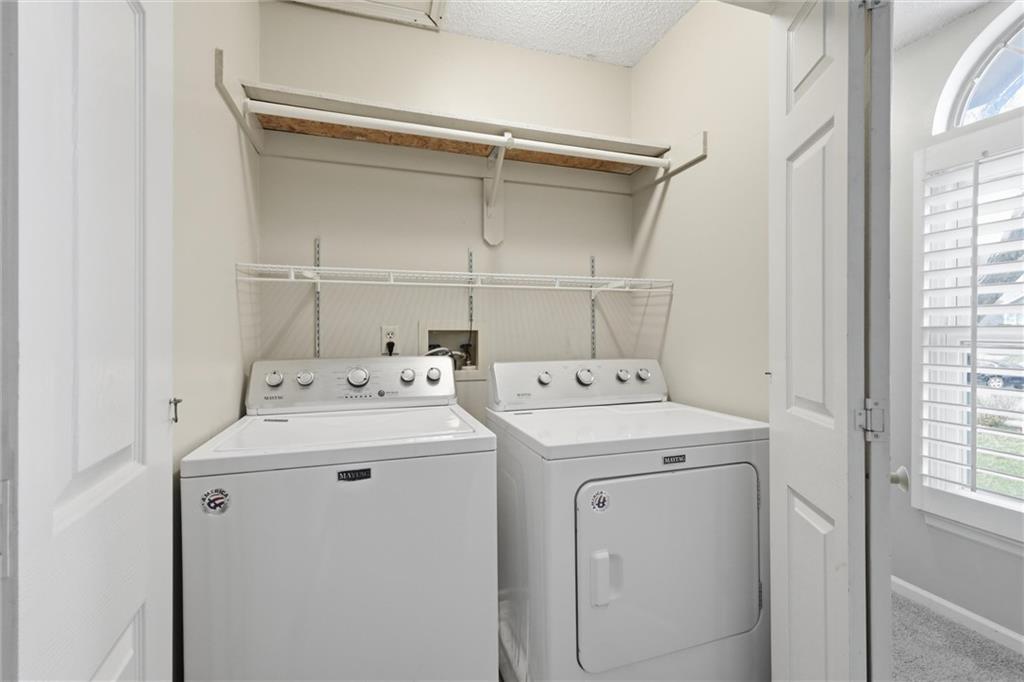 Great opportunity for investment or first time home buyer. Bones are good, but does need some cosmetic updates. The home features a bright and airy layout with neutral tones throughout, ready for your personal touch. A cozy gas fireplace is the focal point for the home's living room. In the kitchen, all appliances stay and the deck is accessed through the glass door in the eat-in kitchen. Both bedrooms are generously sized with plush carpeting, ceiling fans for year-round comfort, and ample closet space—including a convenient walk-in closet in the primary suite and mirrored sliding doors in the second bedroom. Enjoy a full bathroom upstairs featuring a large vanity and a practical tub/shower combo, plus a convenient half-bath on the main level for guests. No more trips to the laundromat! This unit includes a dedicated laundry closet on bedroom level, equipped with a washer and dryer set and overhead shelving for extra storage. Whether you’re a first-time homebuyer or looking to add to your investment portfolio, this townhouse is not to be missed. Schedule your showing TODAY.
