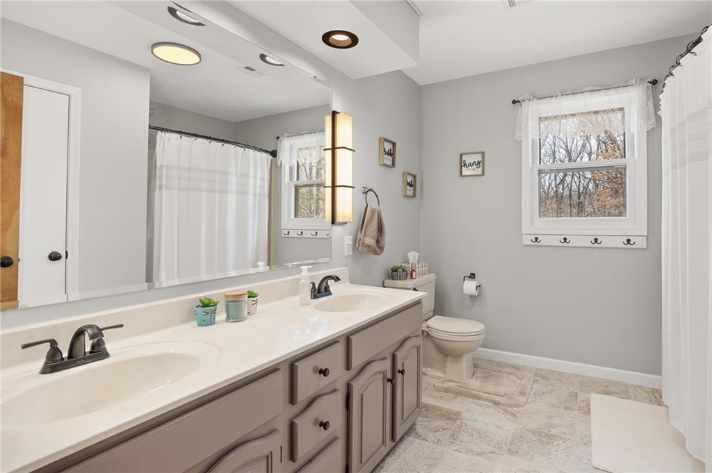 Located just outside the city limits of Chillicothe, Missouri on 3.2 beautiful country acres, this all-electric home built in 1988 is the kind of property buyers wait for—and it won’t last long. From the moment you step inside, you’ll appreciate the space and flow, featuring a formal living room, dining room, and a large kitchen that opens into a warm and inviting family room with a stunning brick, wood-burning fireplace. Expansive windows wrap the home, offering breathtaking wooded views in every direction and filling the space with natural light. Step out onto the brand new oversized back deck, complete with a fenced area perfect for pets or kids, and take in the peaceful setting. Upstairs offers three spacious bedrooms and two full bathrooms, highlighted by a show-stopping primary suite with a beautifully tiled walk-in shower featuring an onyx basin, matching onyx countertops, and a massive walk-in closet with its own laundry hookup for added convenience. The walkout basement provides even more room to spread out with a large, open, recreational area, non-conforming bedroom, ¾ bath, wet bar, and plenty of storage—all with direct access to the timber views. This home has been thoughtfully updated over the years, including a primary suite remodel in 2014 with alder wood cabinetry, an updated guest bath in 2020, newer paint, modern lighting and ceiling fans with LED fixtures throughout, new siding in 2018, and a new roof in 2019. With a newer HVAC system and solid mechanicals, this property is move-in ready and packed with value. Homes like this—on acreage, just minutes from town, and loaded with updates—are hard to find. Don’t miss your chance to make it yours. Call Ashley today to schedule your private showing before it’s gone!