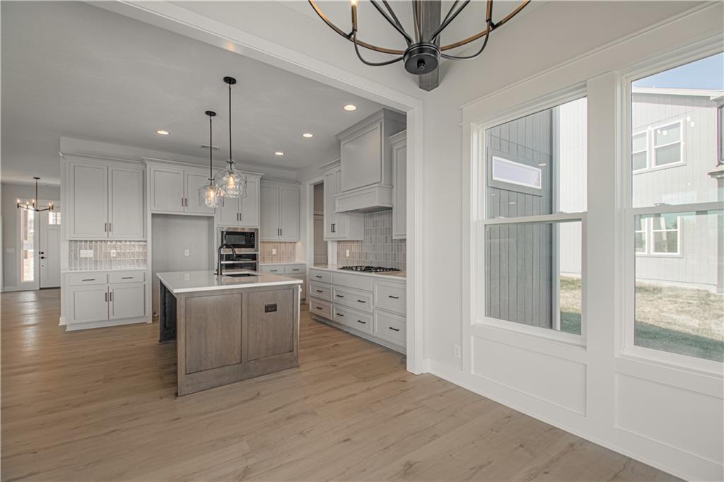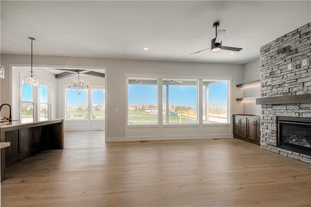 Move-in ready and beautifully designed, The Inglenook by Inspired Homes showcases a striking Craftsman-style exterior on a spacious, flat homesite—perfect for relaxing evenings or hosting BBQs on covered patio. Inside, you’ll find a thoughtfully designed layout with all the spaces you’ve been searching for. Just off the entry, a private home office with French glass doors and a walk-in closet offers both function and flexibility. The main floor features soaring 10-foot ceilings and oversized picture windows that fill the home with natural light. The kitchen is a true centerpiece, complete with high-end finishes including quartz countertops, a deluxe wood hood, built-in appliances with a gas cooktop, upgraded lighting, and under-cabinet illumination. An oversized walk-in pantry provides ample storage, and the kitchen flows seamlessly into the spacious great room, highlighted by custom built-ins, floating shelves, and a stunning stone fireplace. The breakfast area impresses with panoramic views and a custom X-beam ceiling detail. Car enthusiasts will appreciate the rare, oversized three-car garage—large enough to accommodate trucks or full-size SUVs with ease. Upstairs, generously sized bedrooms all include walk-in closets. The primary suite offers a luxurious bath and expansive closet, along with the convenience of second-floor laundry. The FINISHED BASEMENT adds even more living space, featuring a beautifully designed wet bar—perfect for entertaining. Located in the desirable Pryor Ridge community, residents enjoy exceptional amenities including a junior competition-sized pool, playground, basketball and pickleball courts, off-leash dog park, open green spaces, and scenic walking trails. All of this is just minutes from shopping, dining, groceries, entertainment, and easy highway access.
