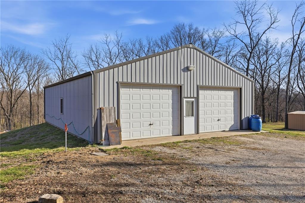 This acreage property just outside of Lawson offers approximately 25 acres of open ground and mature trees—creating the kind of setting that’s getting harder to find. What sets this one apart… the sellers have invested over $150,000 in recent improvements. Major updates include a new kitchen, updated bathrooms, new roof, new HVAC, new windows, All new doors, and a new cedar front porch—giving you a strong foundation of big-ticket items already handled. One of the standout features is the wood-burning fireplace with insert connected to the ductwork—providing an additional heat source throughout the home and the potential to reduce propane use during colder months. Some interior updates are still in progress, including portions of paint and trim. Flooring has not been fully completed, offering an opportunity for the next owner to select finishes based on their preference, depending on terms. Step outside and the possibilities really open up. A large barn (approximately 60x40) with three stalls, water, and electricity is ready for livestock or equipment. The separate shop (approximately 30x50) with water, heat, air conditioning, and concrete floors offers the kind of space that’s hard to find—ideal for projects, storage, or workspace. An additional shed provides even more room for tools or gear. The property also features fruit trees and three large raised garden beds, giving you the ability to grow your own produce, flowers, or simply enjoy the land in a more intentional way. Whether it’s working in the shop, spending time outdoors, tending the garden, or just having the space to breathe—this property delivers a lifestyle that’s difficult to match. Located in the well-regarded Lawson School District with convenient access to nearby highways.