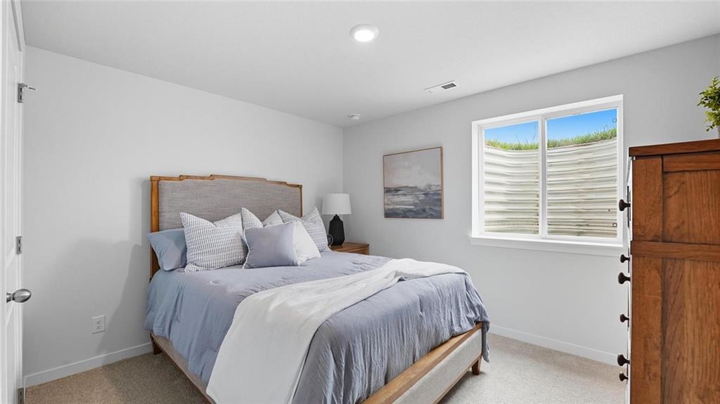 The Reagan is a ranch plan featured at Prairie Trace. This is a spacious and modern home designed with open-concept living carefully considered throughout. This home features four bedrooms, three and a half bathrooms, finished basement and a three-car garage. An inviting foyer greets you upon entering and leads you into the heart of the home. This open plan features a family room, dining room, and kitchen designed with entertaining in mind. The kitchen is equipped with a pantry, 36" cabinets with crown molding, quartz countertops with tile backsplash, stainless steel appliances, and a large island with a breakfast bar, making it perfect for both dining and guests. The luxurious primary suite offers a large walk-in closet and a primary bathroom with dual vanities and plenty of space to get ready. The additional two bedrooms share access to the secondary bathroom on the opposite side of the home offering privacy from the primary suite. With its thoughtful design, this ranch floorplan is the perfect place to call home at Prairie Trace. Pictures are representative.