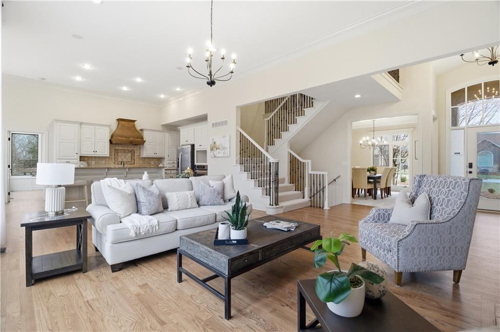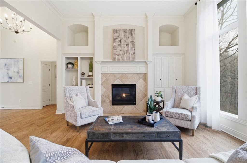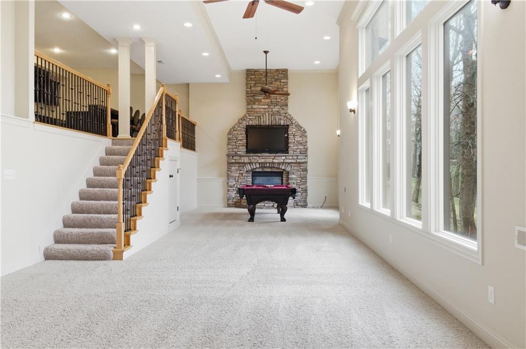 WOW! AMAZING PRIVATE TREED LOT! THIS STUNNING 1.5-story home offers nearly 5,000 square feet of living space and is ideally situated on a private, tree-lined lot just under a half acre. BRAND NEW ROOF coming on 4/6. New gutters will be installed as well. Inside, you’ll find soaring 15-foot ceilings, expansive windows, and abundant natural light throughout. The home has been thoughtfully updated with brand new hardwood floors, new carpet on the main and second levels (including the stairs), fresh interior paint, and new fixtures on the main floor creating a truly move-in ready experience. Two new decks great for outdoor entertaining and morning coffee. Two newer HVACS and Hot Water Heater have been installed to make this a low maintenance home. The spacious layout includes 4 bedrooms, 4 full bathrooms, and a half bath, along with a fifth non-conforming bedroom in the lower level. The two-tiered basement features 15-foot ceilings and offers exceptional flexibility for entertaining, recreation, or additional living space with a wet bar, recreation area, theater room and game room. Pool table and exercise equipment will remain with the home. Additional highlights include a suspended garage for bonus space, a newly replaced retaining wall, and a private backyard setting. This home offers the perfect combination of space, updates, and functionality, making it an exceptional opportunity for comfortable living and entertaining.