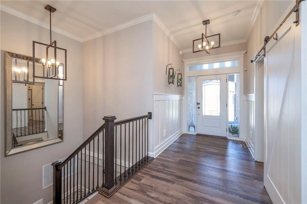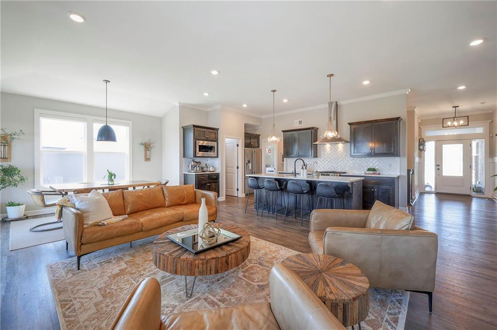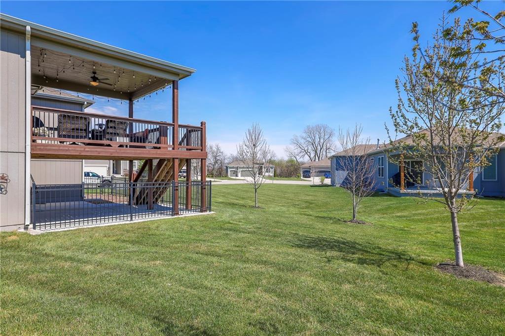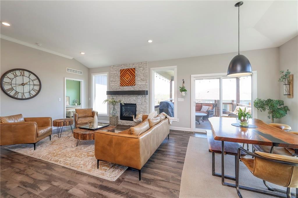 Welcome to effortless, care-free living in this beautifully designed, move-in ready home perfectly situated on a premium corner lot. From the moment you step inside, you'll appreciate the modern open layout, enhanced by engineered hardwood floors and wainscoting entry, upgraded finishes and fresh interior paint. The designer kitchen is truly the heart of the home, featuring custom cabinetry, a large center island, walk-in pantry, gas range and Frigidaire stainless steel appliances-all included. A charming coffee bar adds both function and style, making mornings something to look forward to. The spacious primary suite offers a relaxing retreat with a tray ceiling and large windows that fill the room with natural light, along with a custom tiled shower for a spa-like experience. Additional thoughtful touches include a stylish barn door, ceiling fans, faux wood blinds, upgraded front door, and a wrought iron fence. Cozy up by the gas fireplace with floor to ceiling stacked stone or step outside to enjoy the extra large covered composite covered 13' x 13' deck-perfect for entertaining or unwinding. The finished lower level, daylight basement, provides additional living space, an additional bedroom and full bath with plenty of unfinished storage space to do with what you would like, while the garage offers even extra storage for convenience. This home also includes an active radon mitigation system and a kitchen sink water filtration system for added peace of mind. Enjoy maintenance provided living with lawn care and snow removal for a mandatory $150/month. Community amenities are second to none, featuring a clubhouse, pool, playground, party room, and scenic walking trails. This home truly has it all-style, comfort, and convenience-ready for you to move right in and enjoy!! Why pay for new construction when you can everything you want right here. It's just waiting for you!