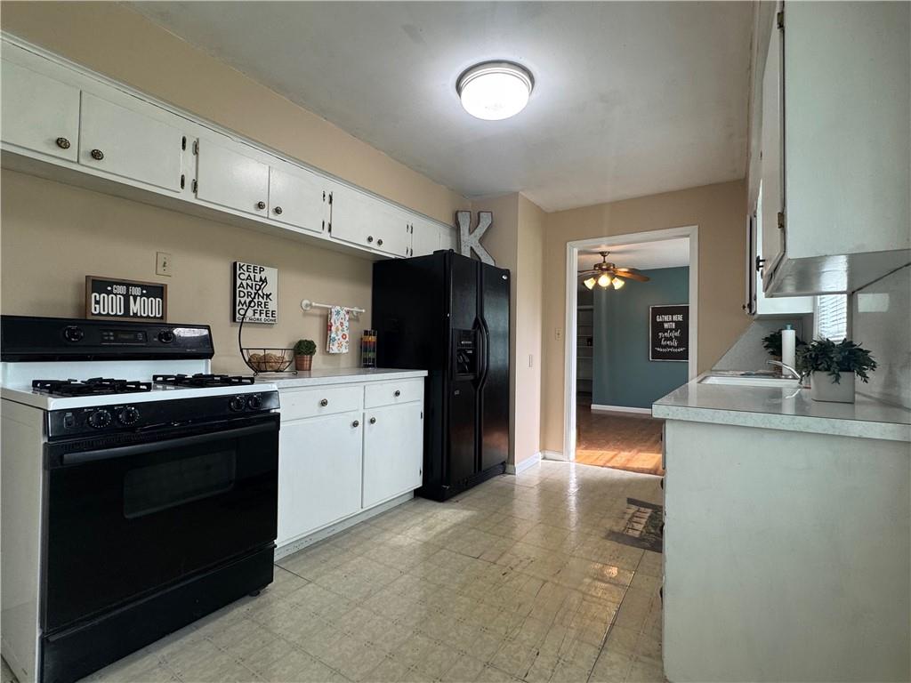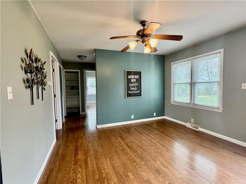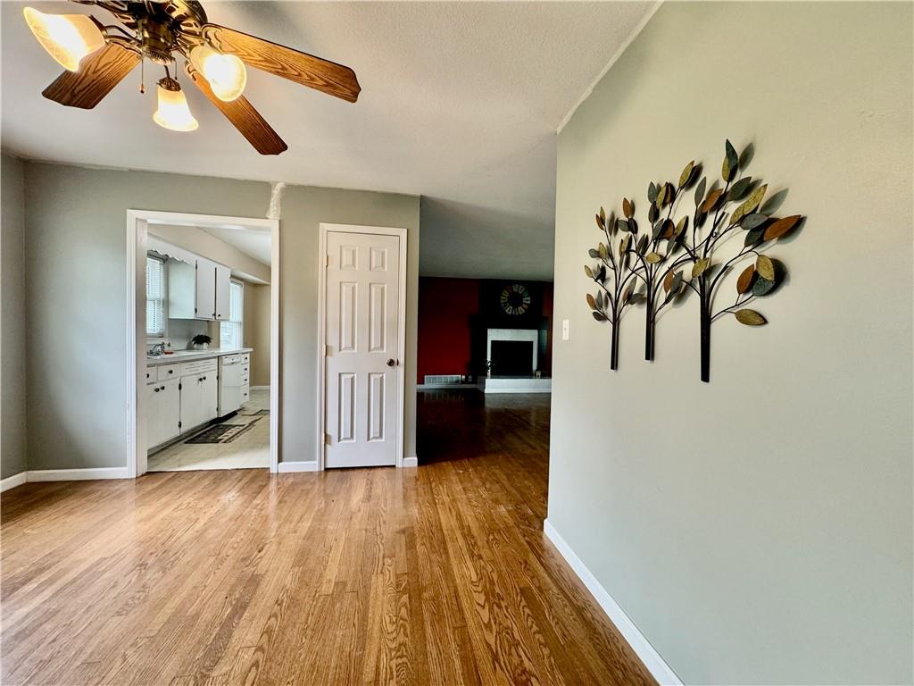 Opportunity awaits in this darling 3-bedroom 1.5-bath RANCH! Features include: Hardwood floors mostly throughout (except kitchen and baths & mudroom), light, bright/open living room, with cozy fireplace, formal dining and/or breakfast room, and a galley kitchen with a gas range. (kitchen just needs some new flooring and a little cosmetic updating. Large laundry/mudroom off of the 2-car garage. All 3 bedrooms are spacious. The exterior offers low-maintenance siding, a newer roof, and is located on a large corner lot! Quick access to K-7, 56 Highway & I-35 shopping and restaurants. This truly is a great starter home!