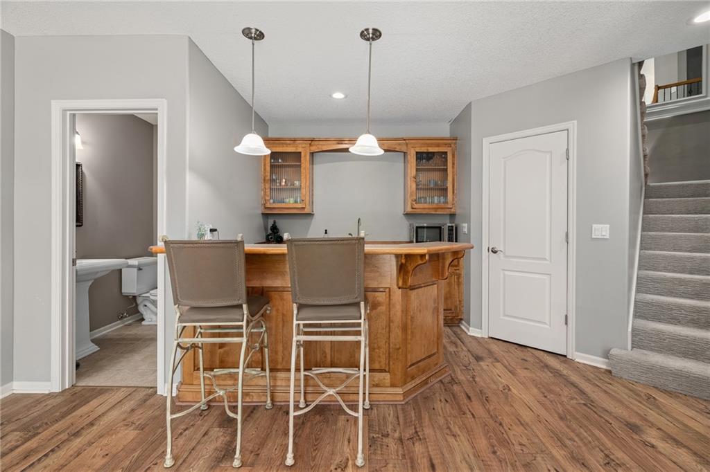Welcome home to this stunning Don Julian reverse 1.5-story tucked on a wooded half-acre at the end of a quiet cul-de-sac in Woodland Reserve. Soaring ceilings and oversized windows frame peaceful, tree-filled views and fill every room with natural light. The main level offers formal dining, a living room with see-through fireplace, hearth room, home office, and a well-appointed kitchen with custom cabinetry, quartz counters, stainless appliances, double ovens, and walk-in pantry. A four-season sunroom opens to the deck. The primary suite features a tray ceiling, built-ins, and a two-way fireplace into a luxurious en suite bath with heated tile floors, dual vanities, soaking tub, oversized shower, and walk-in closet. A second main floor bedroom with private bath, powder room, and laundry round out the main level. The finished walkout basement includes three additional bedrooms, two with private baths, a family room with fireplace and wet bar, media room, second powder room, and second laundry. The climate-controlled 4-car garage is a dream for hobbyists and car enthusiasts alike. A built-in shed adds even more storage. Enjoy the pool, pond, walking trails, play area, and beautifully maintained common spaces this community has to offer. Tranquil setting just minutes to Oak Park Mall, Lenexa City Center, Shawnee Mission Park, K-7 and I-435.Buyer/Buyer's Agent to verify square footage.