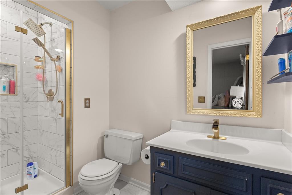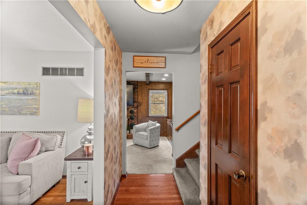 The main level offers two spacious living areas, beginning with a formal living room that seamlessly flows into the formal dining space—perfect for entertaining. The inviting family room features a cozy fireplace with built-in cabinetry and opens to a beautifully renovated kitchen. The kitchen has custom cabinetry, granite countertops, and stainless steel appliances. Just a few steps up, you’ll find the bedroom level, complete with a fully renovated guest bathroom featuring a tub/shower combination. The primary suite offers a private, updated on suite bathroom with a walk-in shower. The finished basement expands your living space with a large wet bar—ideal for gatherings—and offers plenty of room with the potential to add a fourth bedroom. The yard features a privacy fence that backs up to a creek. Ideal location with walking distance to South Valley Middle School and Wilshire Park as well as 5 minute drive to I-35.