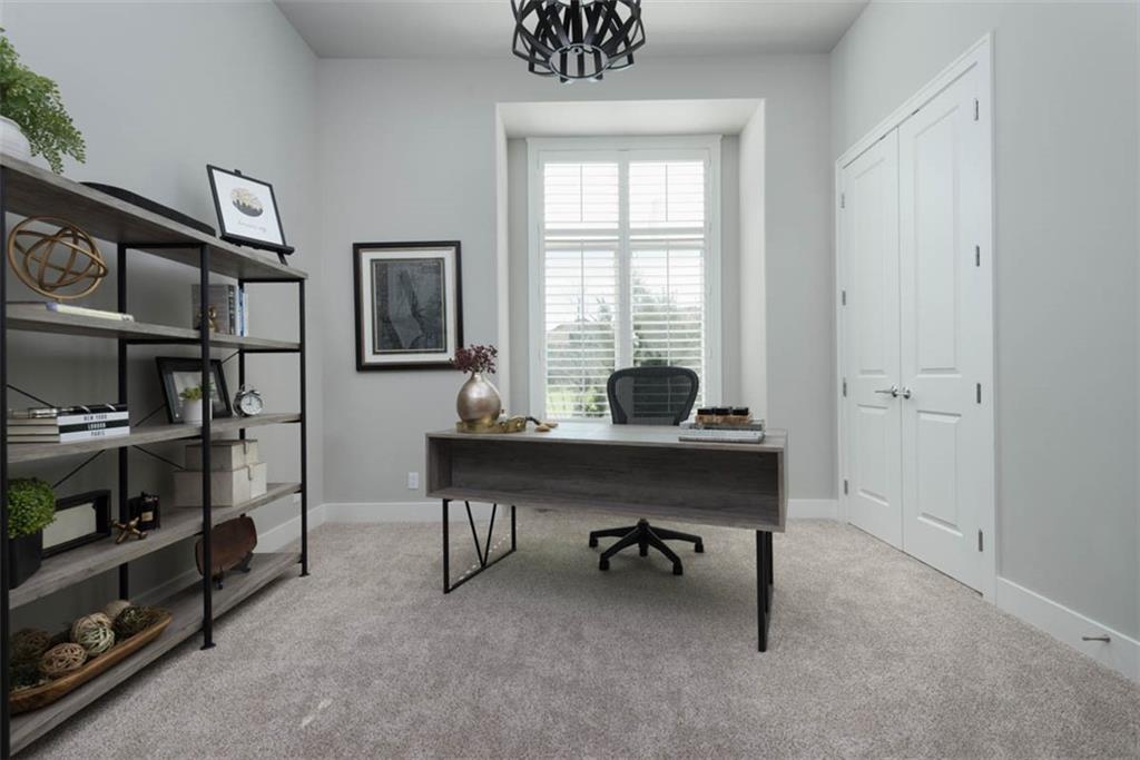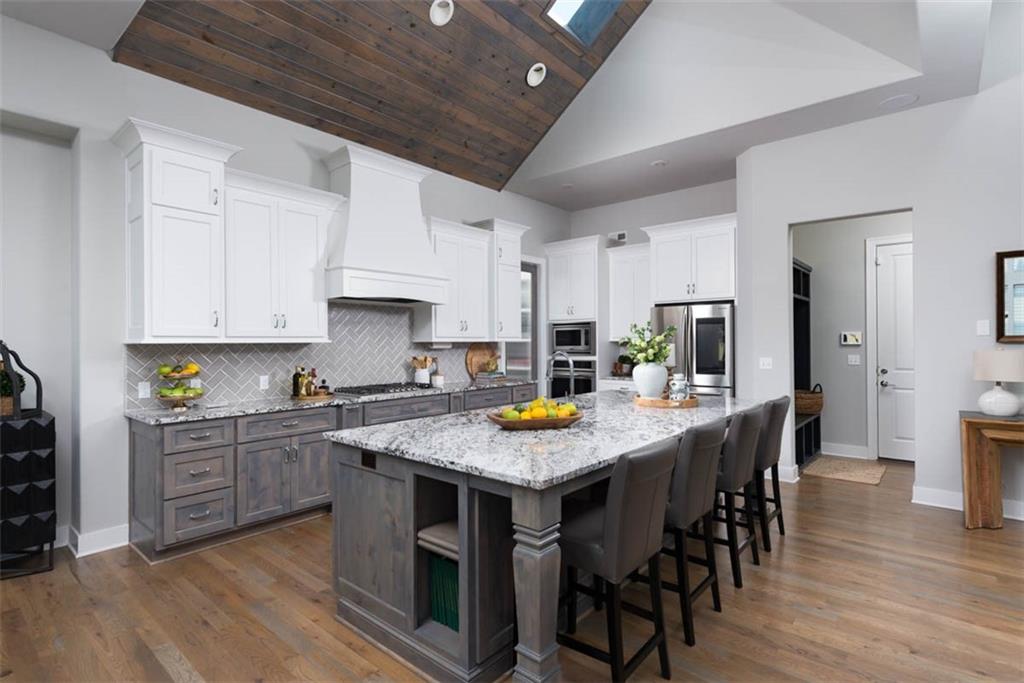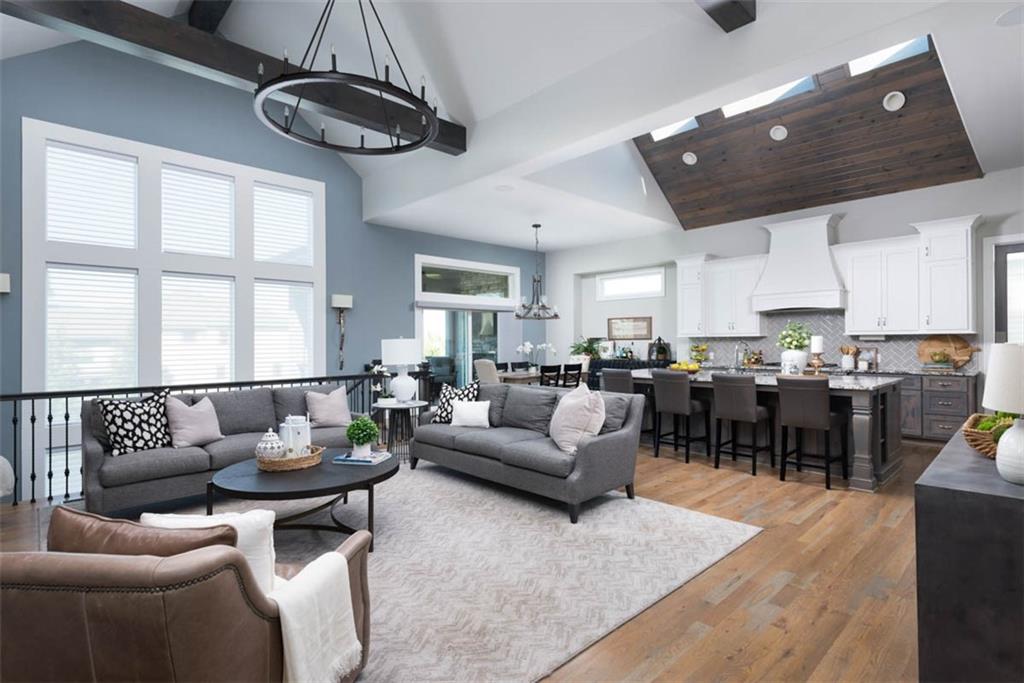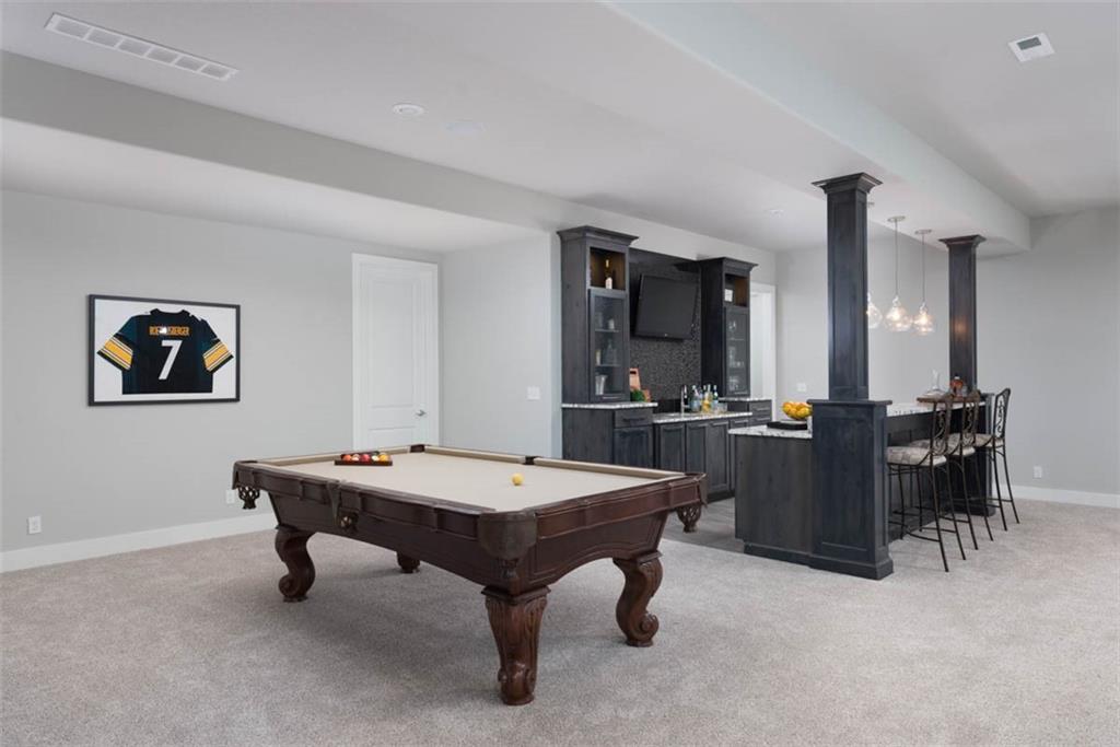 Positioned on a walkout corner lot in the sought-after Colton community, this custom Brookridge II by Don Julian Homes offers a refined take on reverse 1.5-story living with impeccable upgrades throughout. From the moment you step inside, soaring ceilings and expansive 3-floor window wall create a sense of openness, while rich architectural details bring warmth and character to the main living spaces. At the center of the home, the kitchen is both breathtaking and functional, anchored by an oversized island, abundant custom cabinetry, stunning backsplash and countertops, and a walk-in pantry designed for effortless organization. The adjoining dining area flows seamlessly to the covered deck, where a fireplace and elevated views create an inviting extension of the home, ideal for both quiet evenings and hosting with ease. The main-level primary suite is designed as a true retreat, featuring a spa-like bath with an oversized shower and rain head, dual vanities, and a generous walk-in closet that connects directly to the laundry room for added convenience. A secondary bedroom AND dedicated office or flex space complete the main floor, offering versatility without sacrificing comfort. The walkout lower level is equally impressive, with 10-foot ceilings that enhance the sense of space. A large recreation area, media space, and full bar create an ideal setting for entertaining, while additional bedrooms and baths provide privacy for guests. Outdoors, the experience continues with a spacious patio, firepit area, built-in grill, and a wide stretch of green space that feels both open and private, an ideal backdrop for everyday living and memorable gatherings. Garage features epoxy floors and custom cabinets! Every element of this home has been carefully curated to offer a balance of elevated design and effortless livability. A fantastic neighborhood just minutes away from dining, shopping, schools, highways, and entertainment, this stunning custom home has it all!