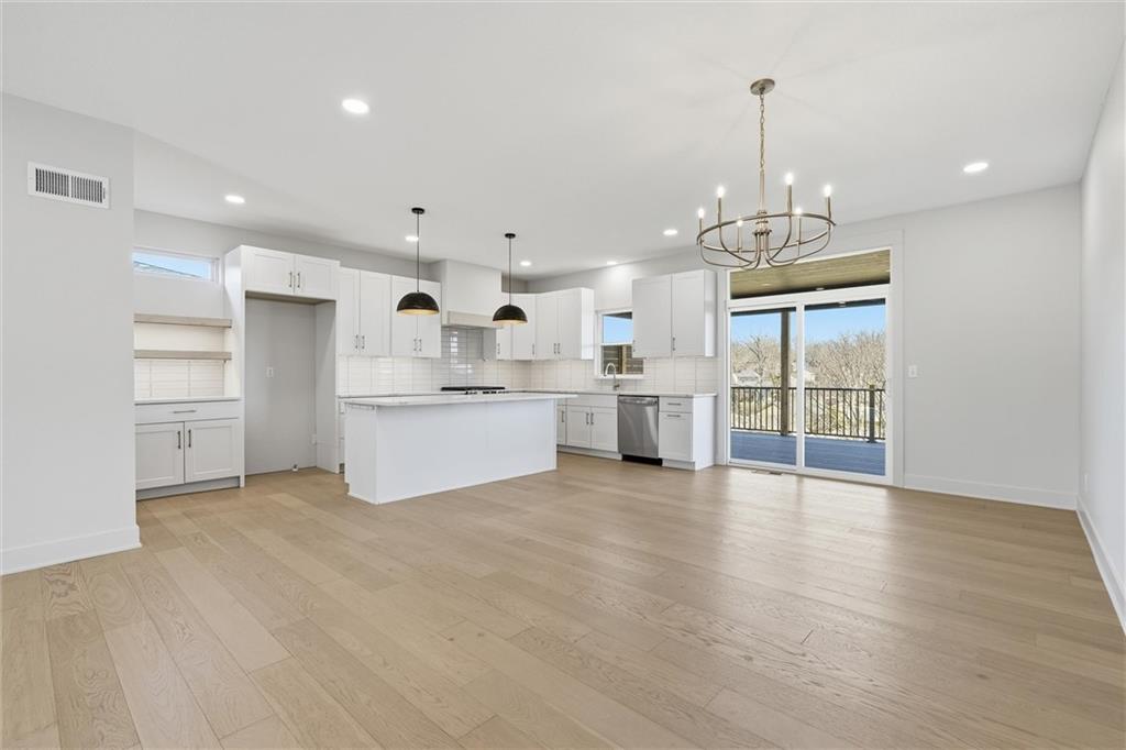 Stunning reverse 1.5 story NEW BUILD located in the desirable Fritchie Bluffs neighborhood featuring an open floor plan and thoughtful design. The main level offers two bedrooms including the spacious primary suite with spa like bathroom featuring soaking tub and an oversized walk-in closet accessible to the laundry room. Second main level bedroom could also serve as the perfect office with tons of natural light. Convenient mud room located off the three-car garage for an ideal drop zone for bags and shoes. The living room with stone fireplace opens up to the dining area and kitchen showcasing an 8-foot island, large walk-in working pantry with floating shelves, and a dedicated coffee bar. Three additional bedrooms and two full baths are located on the lower level all featuring HUGE walk-in closets, perfect for families or multigenerational living. The bright and inviting lower level features a wall of massive windows and is an entertainers dream with endless opportunities to make additional spaces into a theatre room, gym, or game room. Lower level also offers a dry bar area making entertaining a breeze! Walk out to your HUGE covered deck off each level thoughtfully constructed with maintenance free composite decking which overlooks a private, tree-lined backyard with stunning panoramic treetop views, perfect for relaxing in your quiet personal retreat. Additional highlights include a flat driveway, south-facing orientation, and a prime location close to award winning Lee's Summit schools, shopping, parks/trails, and Legacy Park Fields and Community Center! This is truly a rare opportunity to own a new construction home at an exceptional value for the area!