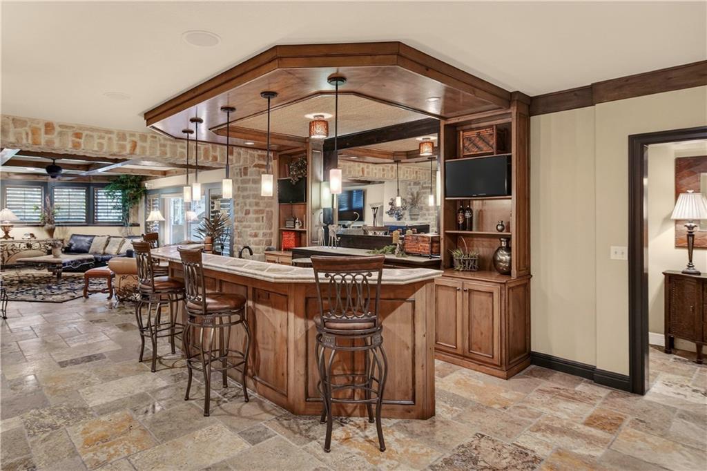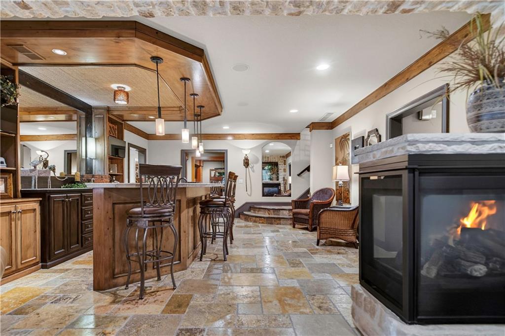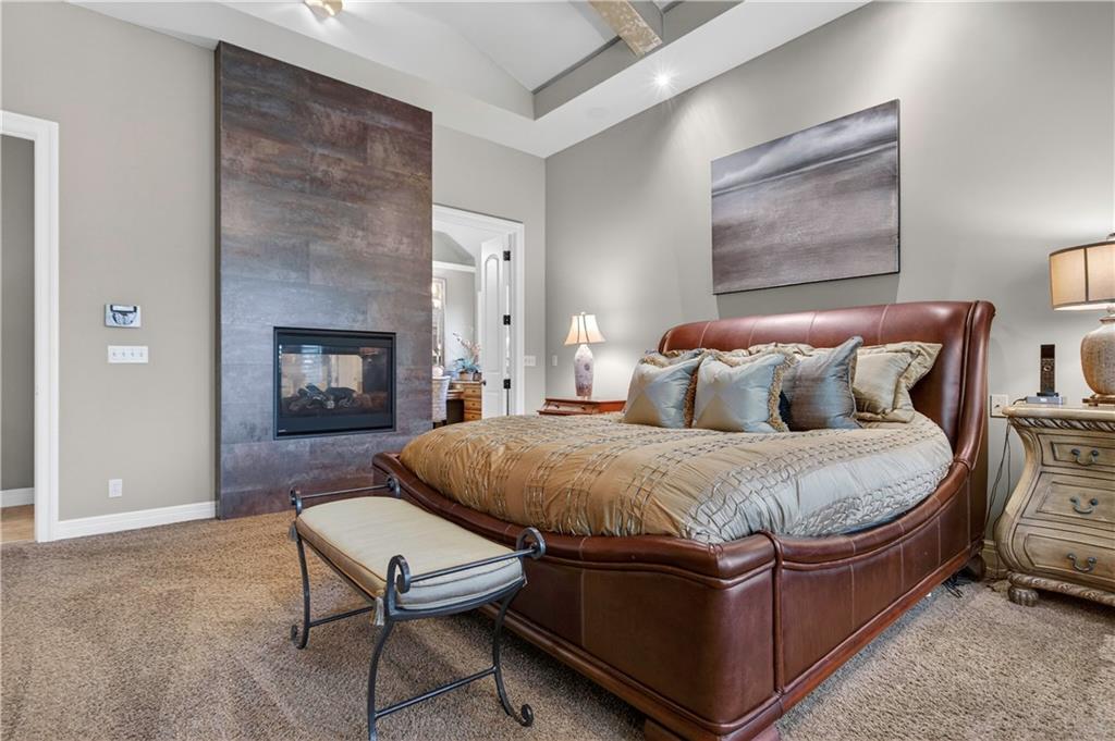 Step into the original & iconic Clydesdale floor plan -The blueprint for one of Johnson County's most sought-after luxury layouts. Built by Willis Custom Homes as the builder's personal residence, this home offers over 5300 sqft of elevated detail & finish, setting the benchmark that dozens of luxury home builders across Johnson County have followed for more than a decade. The craftsmanship, materials, & construction quality simply cannot be replicated anywhere close to this price point today. Rich stained woodwork and natural stone tile floors on main and lower level create a warm, welcoming ambiance from the moment you enter. Designed with both architectural elegance and everyday livability in mind, the main level is an entertainer’s dream, complete with a wet bar where family and friends naturally gather. Great room and kitchen open to a spacious screened outdoor room with stone fireplace, plus mid-level grilling deck overlooks a stamped concrete patio, creating a seamless indoor/outdoor experience. Lower level is designed for unforgettable entertaining, featuring a large sports bar, home theater, stone fireplace and accent walls, plus generous seating for game days or movie nights. Three additional ensuite bedrooms are located downstairs, along with a dedicated workout room and additional storage beneath the suspended garage. Systems in this amazing home match the finishes and include updated Control-4 whole-house audio/video/security, with 15 TVs (included), 3-zone HVAC with humidifiers, whole-house water filtration, plantation shutters throughout, and a lower courtyard stubbed for hot tub. The warmth, craftsmanship & details that make this home truly special simply can't be captured in photos or words, and we welcome you to experience it in person. The Villas of Whitehorse is a maintenance-provided community --lawn care/snow removal included, with access to neighborhood pool, clubhouse, & tennis courts. Sellers are licensed Real Estate Agents in Kansas.