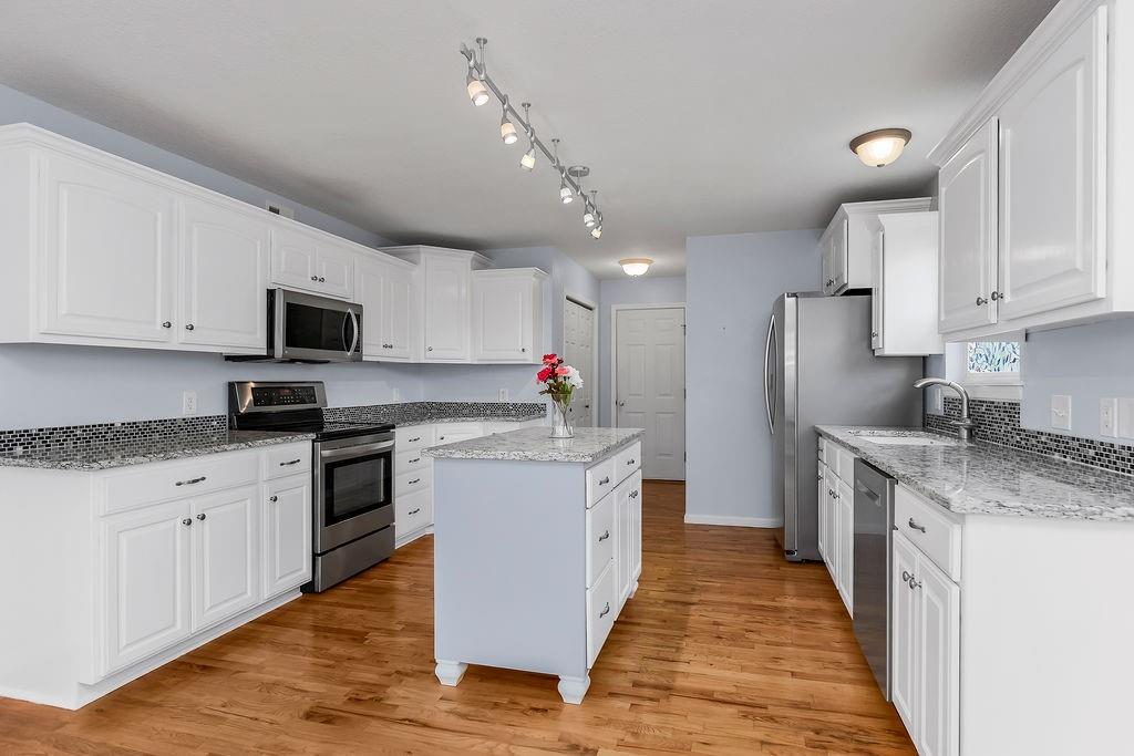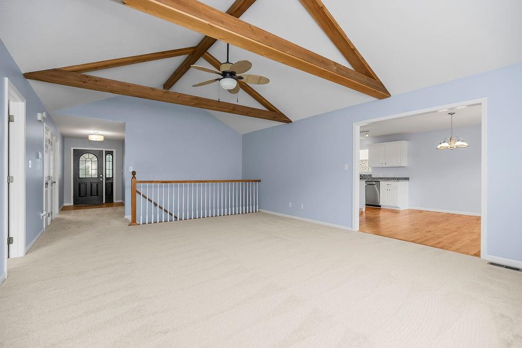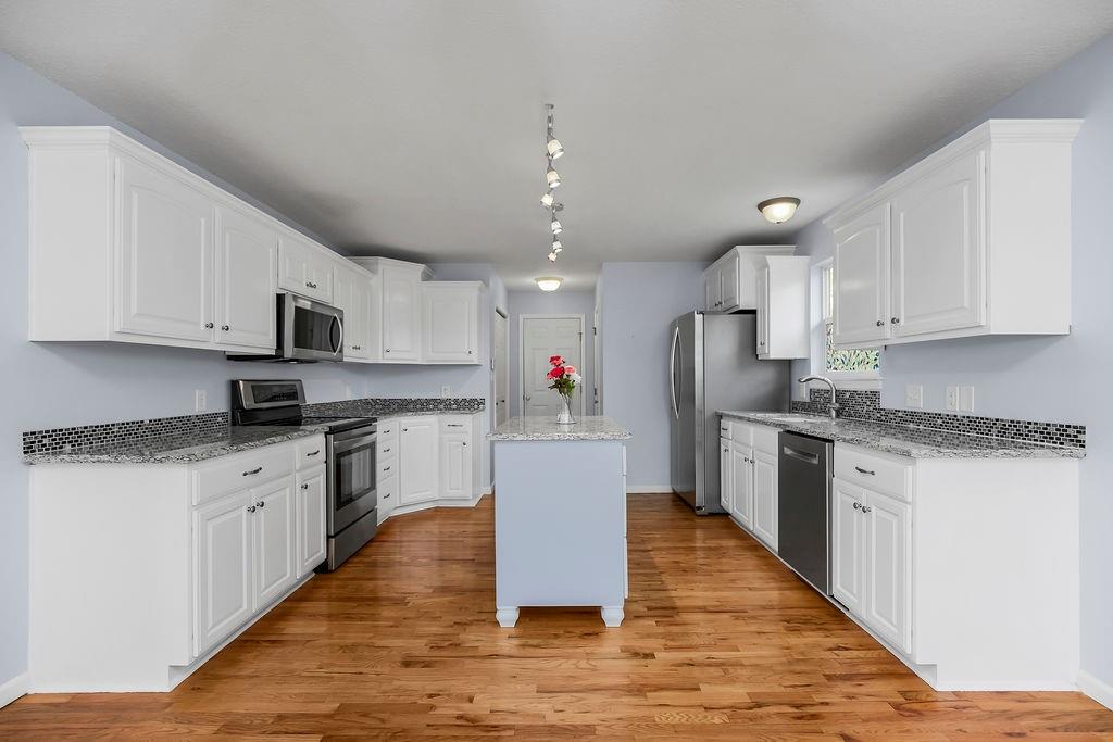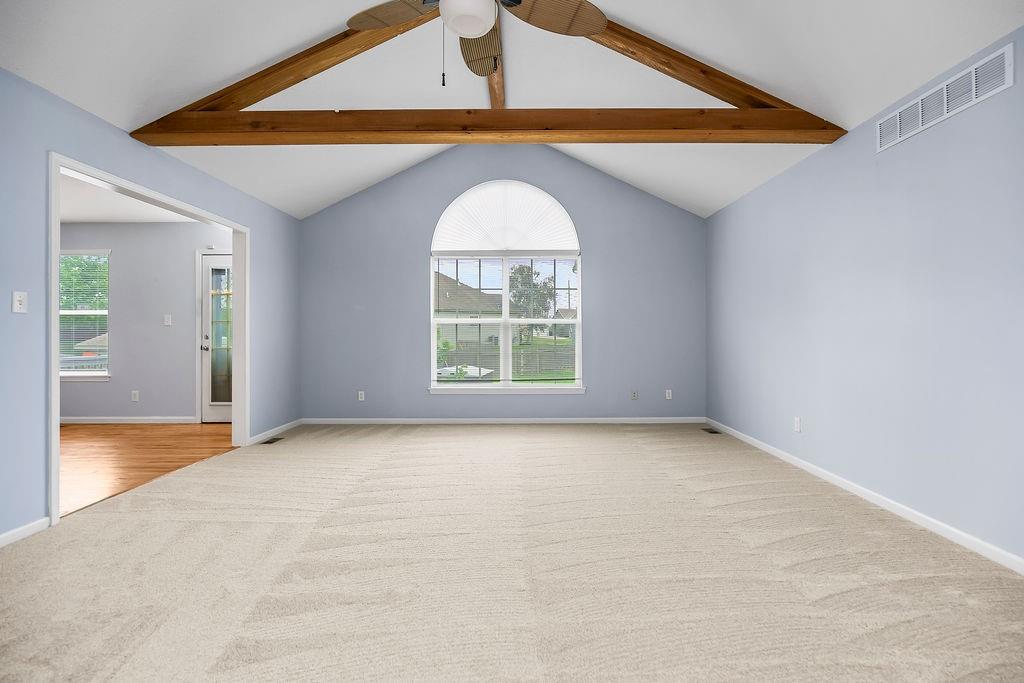 This well-maintained ranch in the Lansing School District offers main-level living just minutes from Fort Leavenworth. The living room features vaulted ceilings and wood beams, and the kitchen/dining room impresses with wood floors, granite countertops, a center island, large walk-in pantry, and abundant cabinetry. The main level also includes a master suite with walk-in closet and en-suite bath, a second bedroom, full bath, and laundry. Downstairs offers two additional bedrooms, a full bath, a large family room with fireplace, a wet bar w/new flooring, and generous storage. Enjoy outdoor living on the front porch or step out back to a deck and patio enclosed by a privacy fence — your own private retreat. Major updates give you total confidence: new roof (2024), fresh exterior paint (2025), new interior paint and carpet (2026), updated deck (2026), AC (2023), hot water heater (2022), and HVAC (2021) — plus granite countertops in all three bathrooms, updated interior and exterior lighting, and more. This home has been lovingly cared for and checks every box. NO HOA!