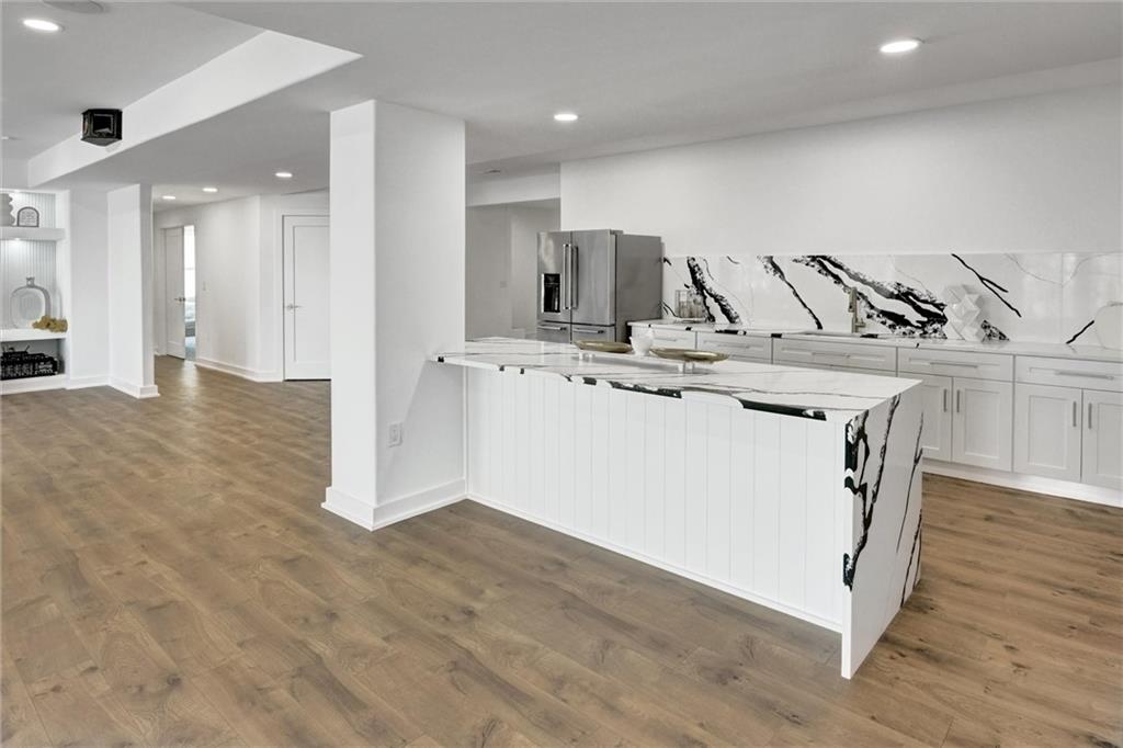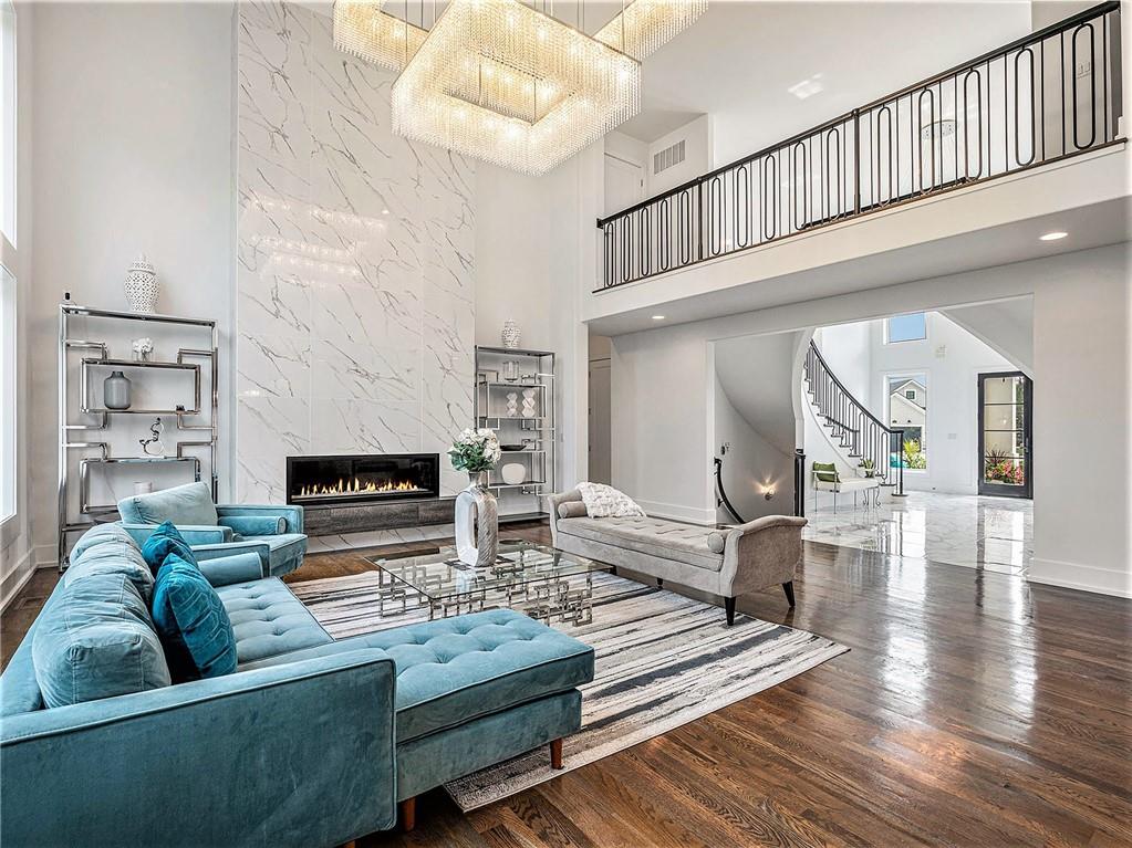 STUNNING. ELEGANT. EXTRAORDINARY. This nearly new Timber Rock Community showpiece is a true custom luxury build! A grand dual staircase and 3-tier custom crystal chandelier set the tone the moment you walk in, leading into a modern, light-filled living area with an 8-by-18-foot porcelain marble feature wall and a breathtaking 2-tier crystal chandelier. The chef-inspired kitchen is an entertainer’s dream, with a 5x10 leathered granite island, JennAir Pro appliances, a separate prep kitchen, and a huge pantry flowing seamlessly to an oversized crystal-lit dining area and covered lanai with a stone fireplace—perfect for unforgettable dinner parties, game days, and holidays. Your main-floor primary retreat feels like a five-star spa, offering an indulgent bath with oversized dual shower, soaking tub, and an expansive custom closet. Exquisite tilework, custom dual vanities, 5-foot circular mirrors, and crystal chandeliers create a jaw-dropping sanctuary, completed by a large 3-tier closet with two built-in chests. Upstairs, three spacious bedrooms with designer accent wallpaper—each with its own ensuite bath—ensure every guest or family member enjoys a private, boutique-hotel experience. The newly finished lower level is an entertainer’s paradise, with a wide-open living area, dedicated dining space, and a wet bar, all illuminated by a wall of windows overlooking green space; two extra-large bedrooms (ideal for an exercise room or private office) share a beautifully tiled full bath, and a generous wine room becomes the centerpiece for tastings and celebrations. Sliding doors lead to a large patio and lush green space expanding your living area outdoors, ideal for morning coffee and casual evenings. An oversized angled 4-car garage, large mudroom, and extra-spacious laundry loaded with custom cabinets and counters provide the everyday functionality that makes luxury living effortless. Buyer’s agent to verify square footage, schools, and taxes.