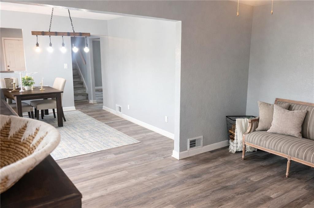 ACT FAST ON THIS GEM! COMPLETELY UPDATED, NEW LIGHTING THRUOUT, GORGEOUS LVT FLOORING, BEAUTIFUL LARGE KITCHEN, NEWLY PAINTED, NEWER ROOF, NEWER FURNACE, NEWER WATER HEATER, OPEN FLOORPLAN, TONS OF STORAGE, & PRACTICALLY NEW EVERYTHING. LARGE COVERED FRONT PORCH, LARGE CORNER LOT, LARGE UNFINISHED BASEMENT SPACE, THIS WON'T LAST LONG. GREAT LOCATION, CLOSE TO ALL MAJOR HIGHWAY ACCESS, SCHOOLS, SHOPPING, WALKING TRAILS, PARKS, RESTAURANTS, MINUTES FROM DOWNTOWN & PLAZA LOCATION.