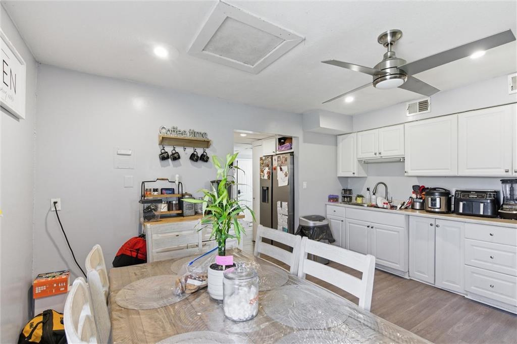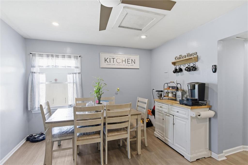 Welcome home! Upon entry, you’ll love the luxury vinyl plank flooring and recessed lighting that create a bright, modern feel throughout the main living areas. The roof is only 1.5 years old, practically new. The kitchen features newer cabinetry, offering both style and functionality. This home offers 3 bedrooms, 1 bathroom, and a convenient laundry room located toward the back of the home. Step outside to enjoy the deck—perfect for entertaining, relaxing, or summer gatherings. The property also includes a 1-car detached garage and a spacious, partially fenced backyard, offering plenty of room to enjoy while still providing some privacy.