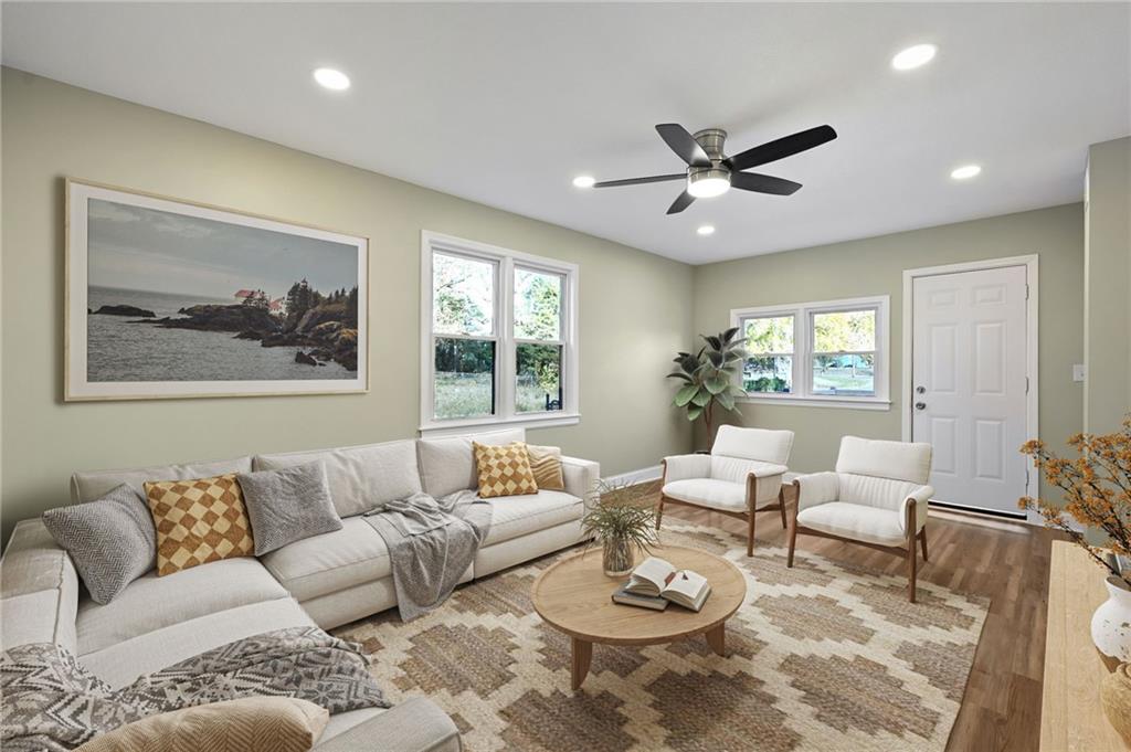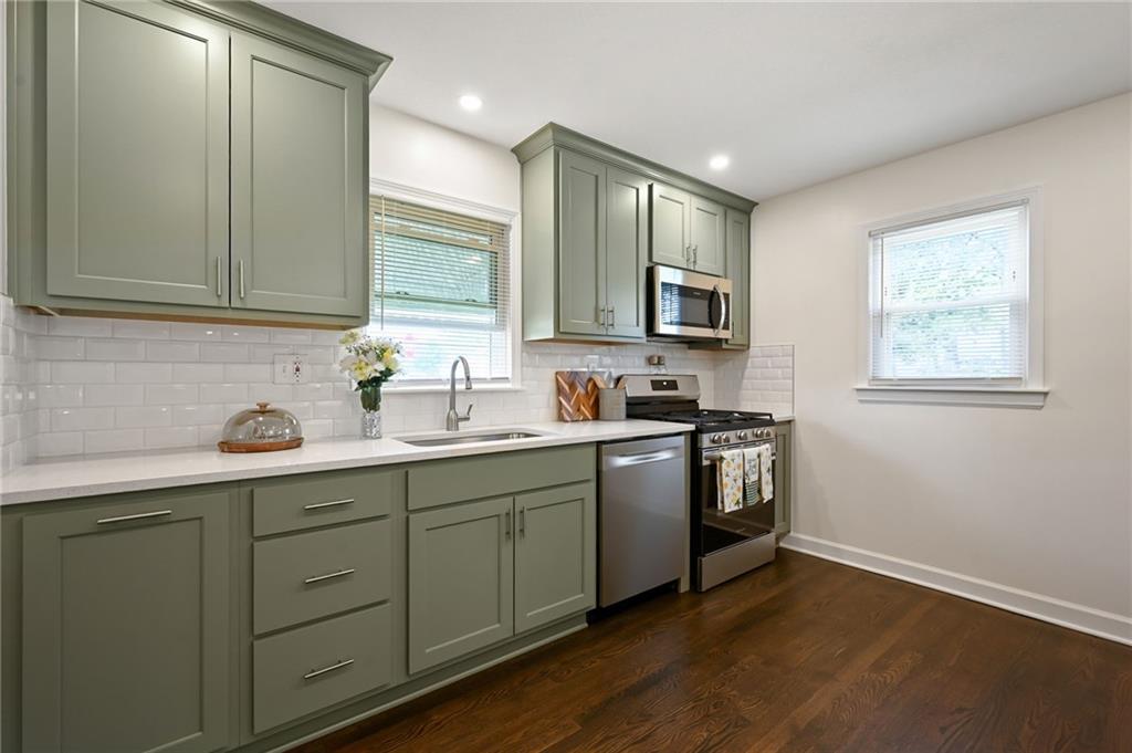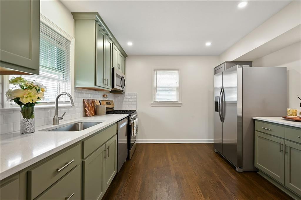 Charming and move-in ready, this inviting home features warm hardwood floors, fresh neutral tones, and elegant arched doorways that create a bright, open feel throughout. The brand-new kitchen shines with sleek countertops, stainless steel appliances, subway tile backsplash, and stylish green cabinetry that adds standout character. Enjoy peace of mind with all-new electrical and plumbing throughout. Comfortable bedrooms offer ample closet space, while the usable basement provides flexible living space for a family room, home office, or gym. Multiple deck areas and an enclosed porch/sunroom make relaxing or entertaining easy. A beautifully updated home with modern systems and great flow—this one is a must-see.