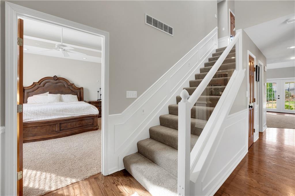 Welcome to this beautiful 1.5-story home with 4 bedrooms, 3.5 bathrooms, 3-car garage,and plenty of space to live, work, and entertain. The main level features a chef’s kitchen with a Wolf gas range, double oven, custom cabinets, and hardwood floors, along with a formal dining room and a comfortable living room with a fireplace. The primary suite is conveniently located on the main level and includes a full bathroom with a sauna, double vanity, and walk-in closet. You’ll also find the laundry room on the main level for added convenience. Upstairs offers two oversized bedrooms with large closets and a full bathroom. The finished lower level provides even more space with a custom bar, family/rec room, fourth bedroom, full bathroom, and large private office that’s perfect for working from home or a hobby space. Outside, enjoy the fenced backyard, irrigation system, and even a cold plunge area! This home offers a great mix of comfortable living space, unique features, and room to spread out.