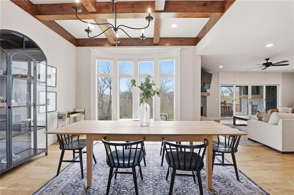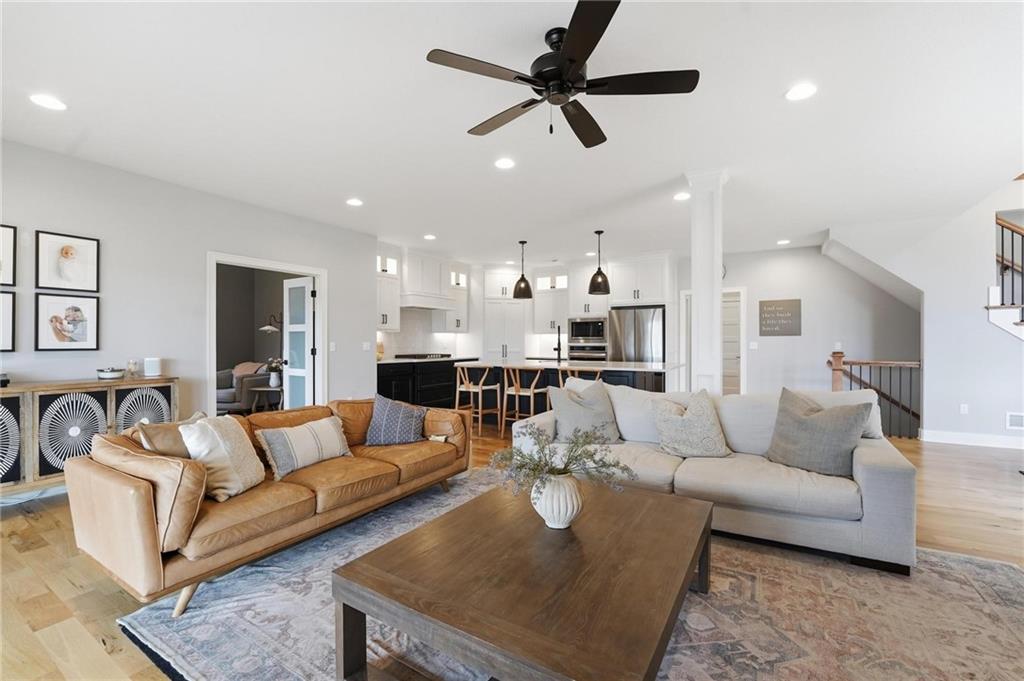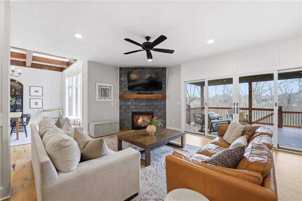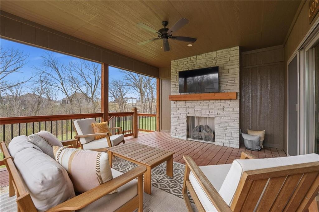 Built in 2023, this beautifully crafted 1.5-story home brings together modern design and comfortable living with 4 bedrooms and 3 and a half baths in Thousand Oaks, located in the Park Hill School District. With a large lot backing to green space, the walkout basement and patio create an easy flow for relaxing and entertaining. The main level features rich hardwood floors and a stunning kitchen with a spacious center island, granite countertops, custom cabinetry, and a walk-in pantry. The dining area feels elevated with wood boxed beams, and the living room invites you in with a stylish tiled fireplace. A thoughtfully designed drop zone off the garage keeps daily life organized. The main-floor primary suite is a peaceful retreat with a spa-inspired bath that includes a soaking tub, walk-in shower, and an oversized walk-in closet. Upstairs offers generously sized bedrooms, and a flexible space at the top of the stairs that works beautifully for a home office, playroom, or lounge. Evenings are easy to enjoy on the covered back deck with its own fireplace, and the walkout lower level opens to the backyard and serene green space, giving you even more room to spread out and enjoy the setting.