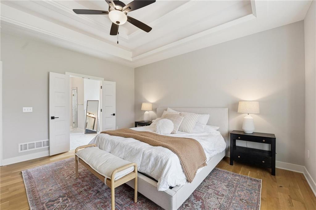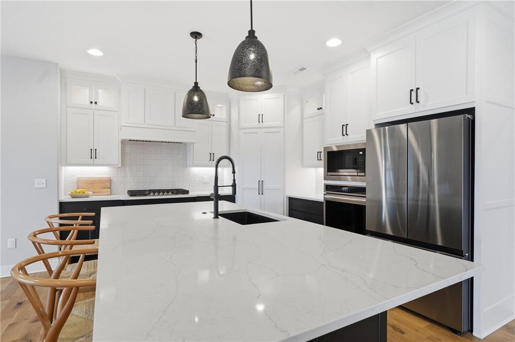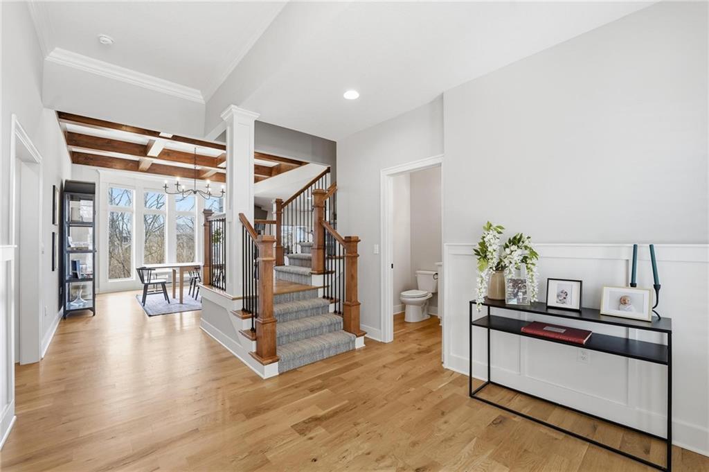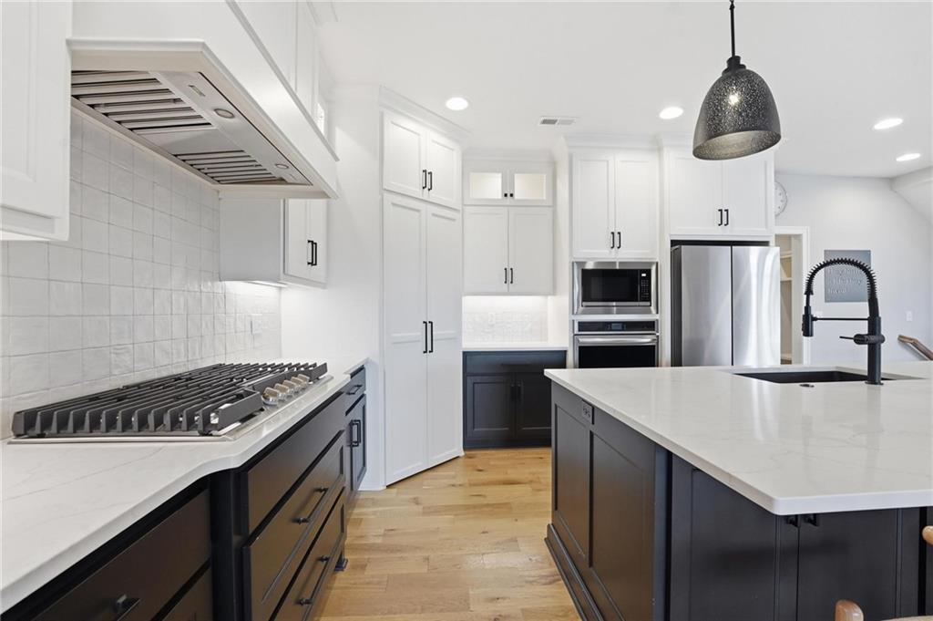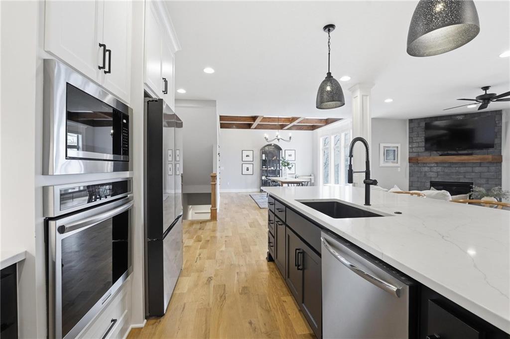 Built in 2023, this beautifully crafted 1.5-story home brings together modern design and comfortable living with 4 bedrooms and 3 and a half baths in Thousand Oaks, located in the Park Hill School District. With a large lot backing to green space, the walkout basement and patio create an easy flow for relaxing and entertaining. The main level features rich hardwood floors and a stunning kitchen with a spacious center island, granite countertops, custom cabinetry, and a walk-in pantry. The dining area feels elevated with wood boxed beams, and the living room invites you in with a stylish tiled fireplace. A thoughtfully designed drop zone off the garage keeps daily life organized. The main-floor primary suite is a peaceful retreat with a spa-inspired bath that includes a soaking tub, walk-in shower, and an oversized walk-in closet. Upstairs offers generously sized bedrooms, and a flexible space at the top of the stairs that works beautifully for a home office, playroom, or lounge. Evenings are easy to enjoy on the covered back deck with its own fireplace, and the walkout lower level opens to the backyard and serene green space, giving you even more room to spread out and enjoy the setting.