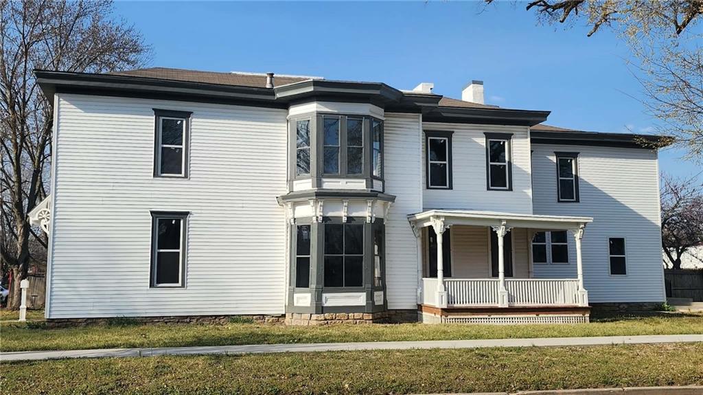 Step into everyday vacation living in this stunning turn-of-the-century retreat! Rich with character, the home features exquisite handcrafted woodwork, leaded windows, and beautiful original fireplaces that anchor the main living spaces. Thoughtfully preserved charm blends seamlessly with modern updates for comfort and efficiency. Enjoy flexible living and entertaining with spacious, connected rooms, a cozy reading porch, and a chef’s kitchen complete with butcher block countertops, stainless steel appliances, and stylish finishes. Upstairs offers generous bedrooms with updated features while maintaining original detail, along with spa-inspired bathrooms designed for relaxation. Located in Fort Scott’s historic district, this property offers endless possibilities—whether as a personal residence, Airbnb, or unique business space.