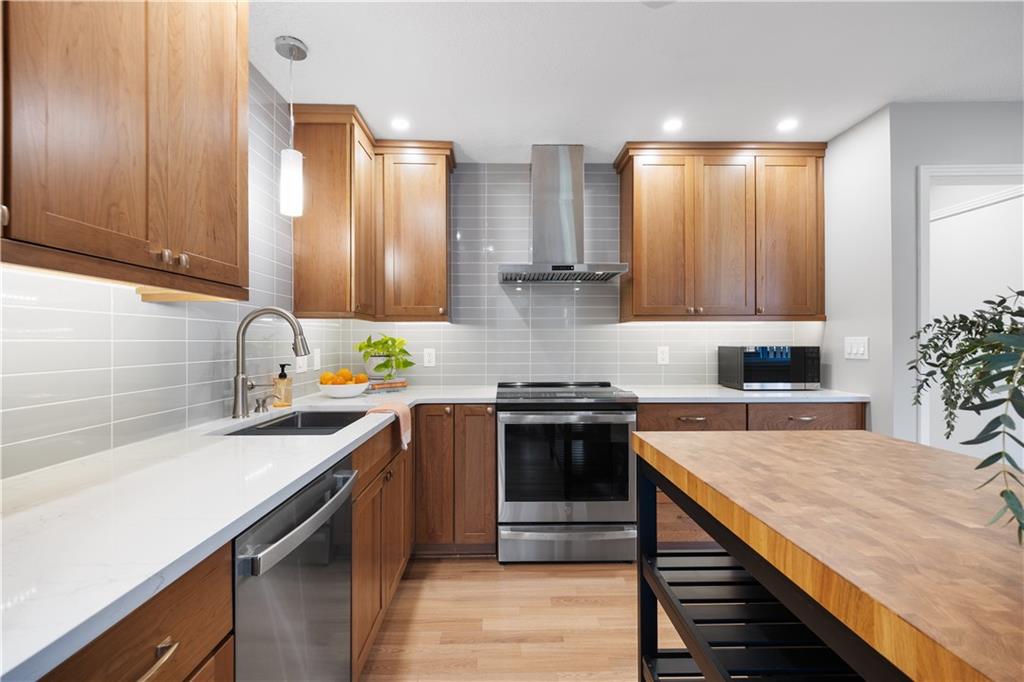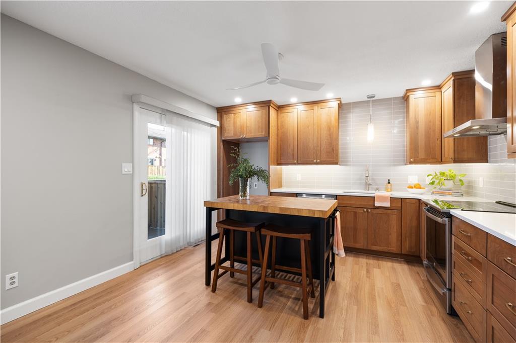 Prime Overland Park location! This meticulously updated 3-bedroom, 2.5-bath Chalet condo is truly move-in ready, offering convenience with easy access to parks, shopping, restaurants, and major highways. The owner spared no expense on a stunning custom kitchen, which was completely rebuilt from the studs up with new plumbing and electrical. It features beautiful custom cherry wood cabinets with soft-close doors and drawers, granite countertops, premium stainless-steel appliances, and top-of-the-line Karastan LuxeCraft luxury vinyl flooring. Numerous major upgrades provide long-term peace of mind, including an updated electrical panel, new installed wood flooring on the stairs and throughout the second-floor hallway and primary bedroom, and a replaced primary sliding door. Ceiling fans have been added for year-round comfort. All bathrooms have been refreshed with new toilets, vanities, and faucets. The efficient floor plan boasts excellent flow and plenty of storage. This unit includes two covered parking spots and a private, fenced patio perfect for relaxing. Google Fiber ready! Enjoy stress-free living! The comprehensive HOA dues cover nearly all of your monthly housing bills including gas, water, trash, and the master condo policy. The HOA is also responsible for exterior maintenance, including the roof, foundation, lawn care, and snow removal. Access to the community pool and clubhouse is available for a nominal cost. Don't miss this turnkey opportunity in a sought-after community.