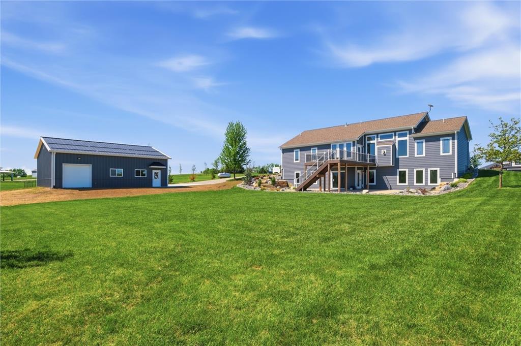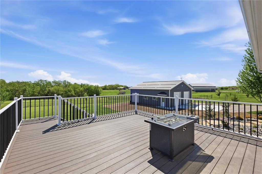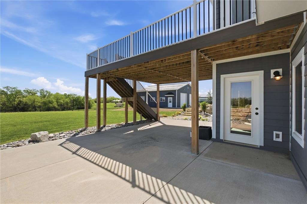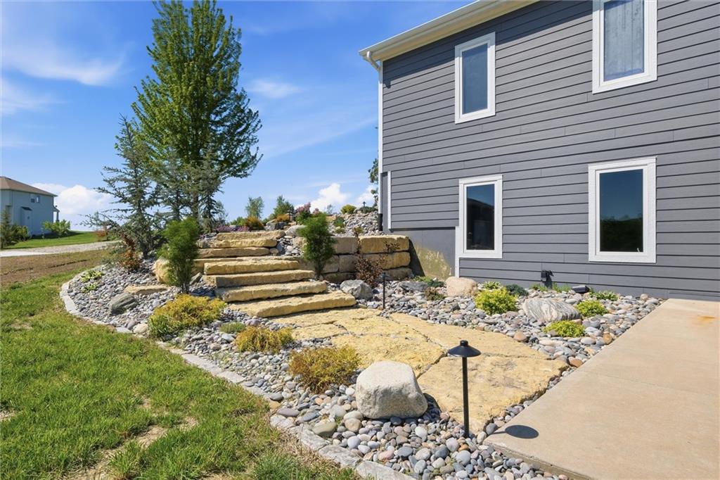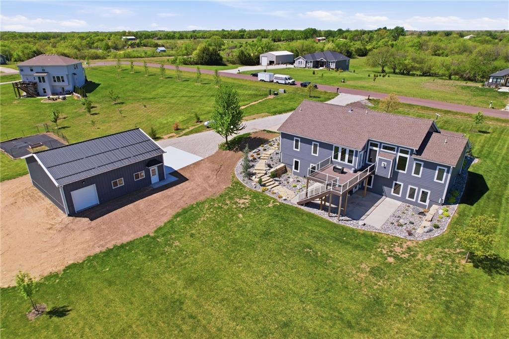 STUNNING ACREAGE RETREAT IN ROCKING C ESTATES | 2.5 ACRES | OUTBUILDING + WALKOUT BASEMENT | NO HOA Positioned on a premier corner 2.5-acre homesite atop a gentle rise with sweeping countryside views in sought-after Rocking C Estates of Tonganoxie. This meticulously maintained property has perfect views from every angle & offers privacy, functionality & some of the BEST country living—OFF PAVED ROADS with NO HOA! From the moment you arrive, the INCREDIBLE landscaping creates a true resort-like setting with a dreamy arrival with wraparound front porch inviting you to slow down and enjoy your own private retreat. A TRUE ranch floorplan offers 3 spacious bedrooms split for privacy PLUS a beautiful office with French doors and 2 full baths delivering 2,400 SF of main-level living! This home has been completely REFRESHED with paint, carpet, stunning natural hardwood flooring complemented by soaring ceilings and new oversized kitchen windows that flood the interior with natural light. You’ll LOVE the thoughtfully designed updated kitchen featuring gorgeous countertops, a large island, Designer selected custom inset white oak cabinetry & gorgeous hardware w/ stunning luxury appliances! The full unfinished walkout basement offers HIGH ceilings and endless potential for additional living space, a home gym, or entertainment area. ##### OUTBUILDING DREAMS ###### A show-stopping NEW (June 2025) 36x40 outbuilding is fully insulated and impressively built with a 5-inch concrete floor reinforced with #4 rebar and high-voltage service—ideal for hobbyists, entertaining, a home business, in-law suite, multi-generational living, or future expansion. This is more than a home—it’s a rare BETTER THAN NEW acreage lifestyle opportunity offering space, flexibility, and hard-to-find detail!