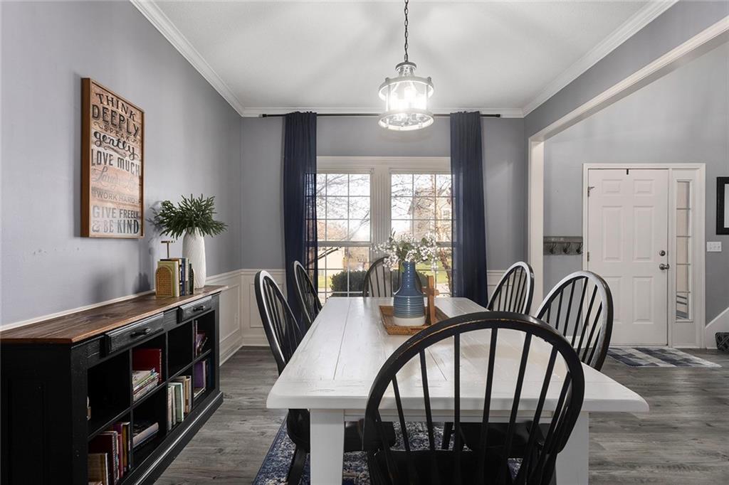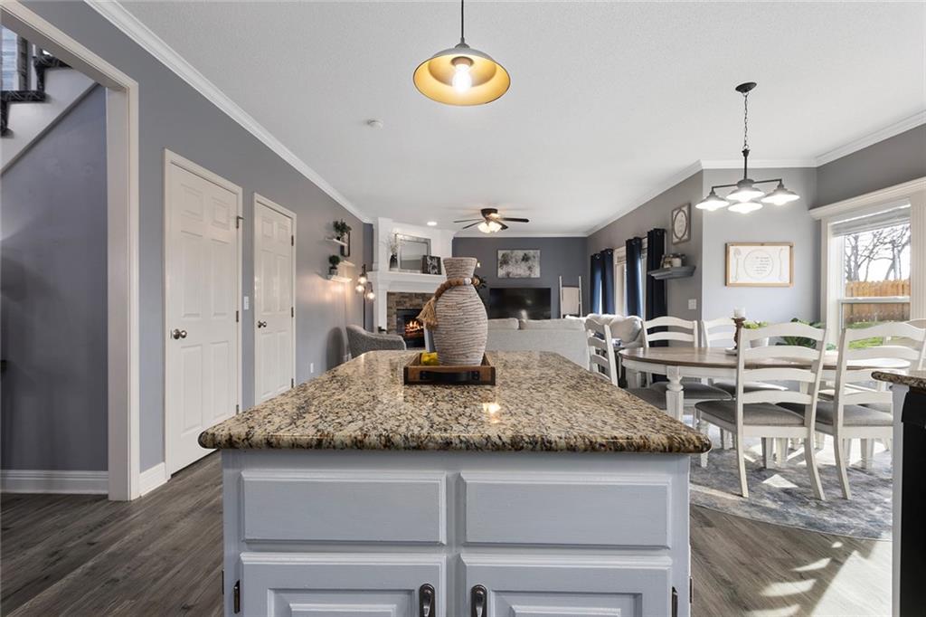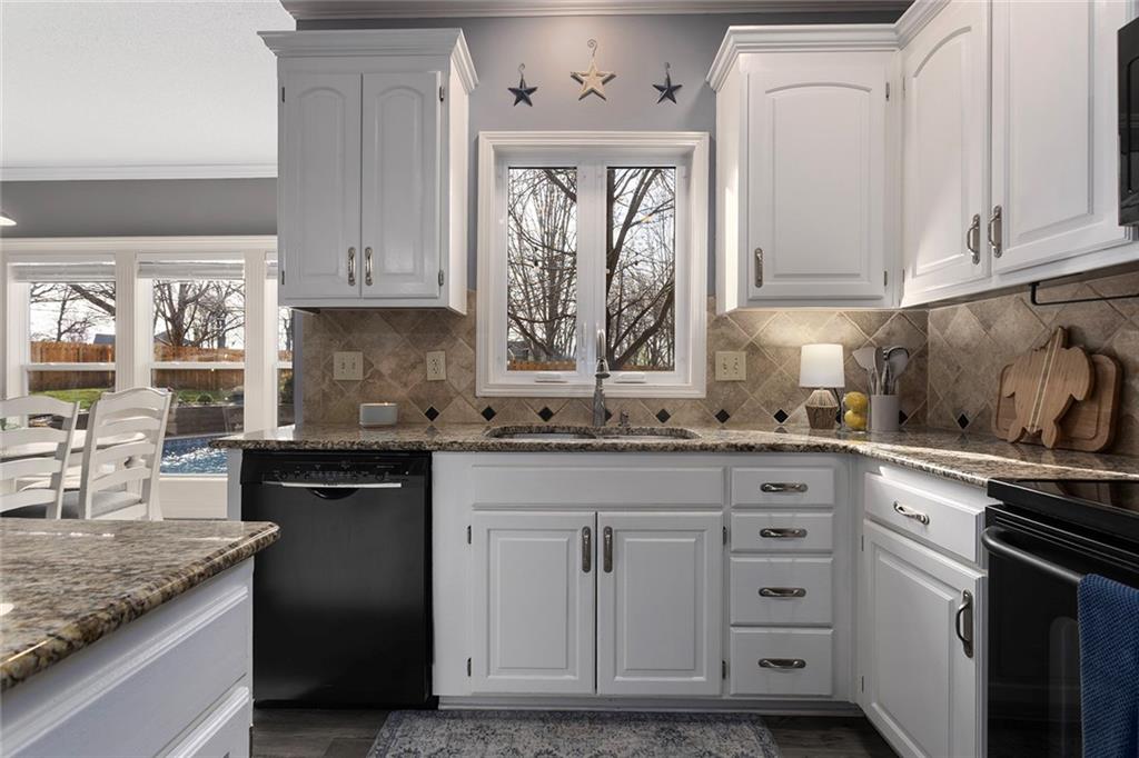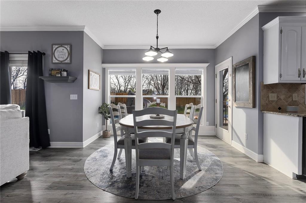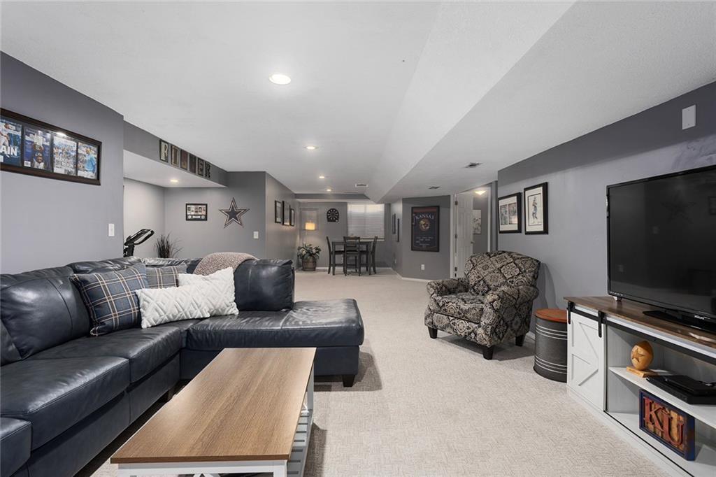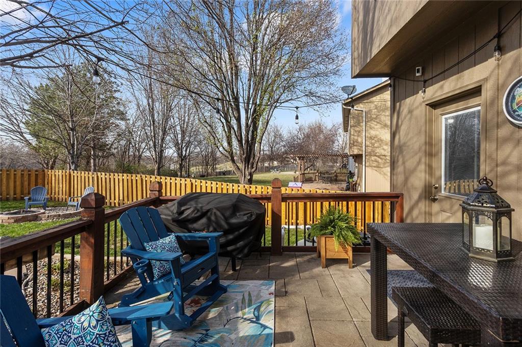 Welcome to this exceptional Shawnee residence with heated saltwater pool. The home is ideally situated on a cul-de-sac. Inside, the home showcases soaring ceilings, quality craftsmanship, and a thoughtfully designed floor plan suited for everyday living and hosting. Luxury vinyl plank flooring extends throughout the main level. A formal dining room and light-filled living room which features a striking masonry fireplace. The kitchen is well-appointed with a large island, granite countertops, and a pantry, offering both functionality and style. The half bath provides secondary access to the back deck and pool. The spacious primary suite serves as a private retreat, complete with a bath featuring a soaking tub, walk-in shower, dual vanities, and an expansive walk-in closet with access to additional out of sight storage areas. The second level also includes generously sized secondary bedrooms which include ample closet spaces; two with walk-in closets and one with dual closets. A full bath and conveniently located laundry room complete the upper level. The finished lower level is designed for versatility and entertainment, offering a large recreation area, additional space for a game table and another area for fitness equipment or future bar. A fifth non-conforming bedroom with a private full bath completes the lower level. The backyard is a private retreat, surrounded by a fully fenced yard. Outdoor living is enhanced by a wood deck, an expansive paver patio, and a dedicated firepit area; perfect for both relaxation and entertaining. Recent updates include newer fence, pool liner (1 year old), HVAC system and water heater (2 years old). Ideally located near three De Soto schools and scenic walking trails, this home combines comfort, style, and convenience in a highly desirable setting.