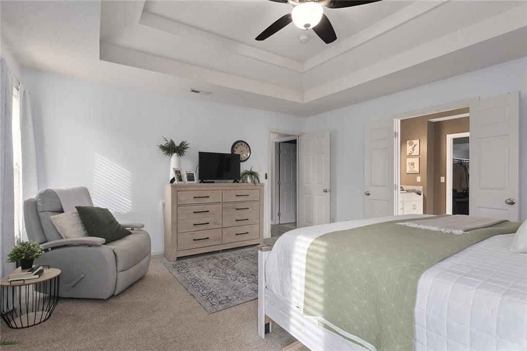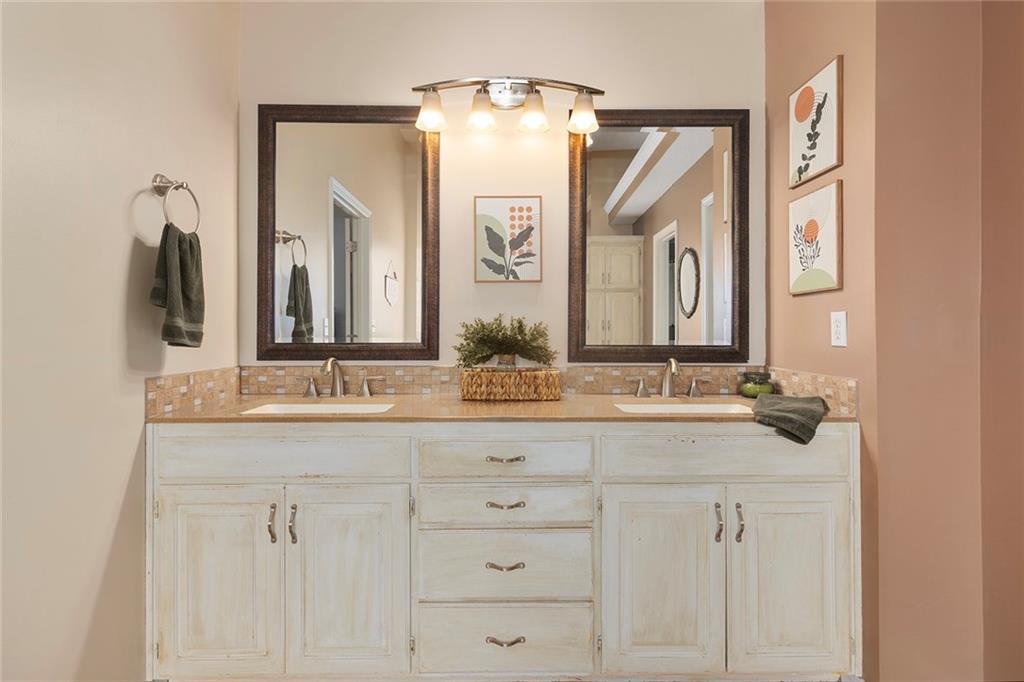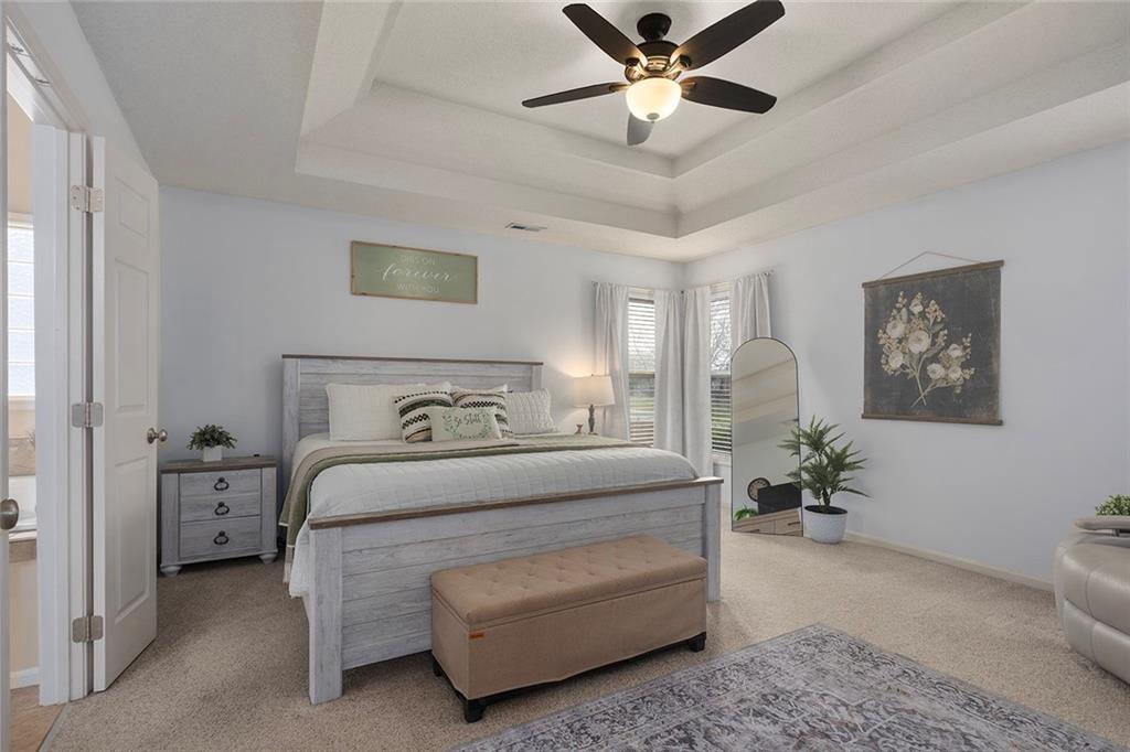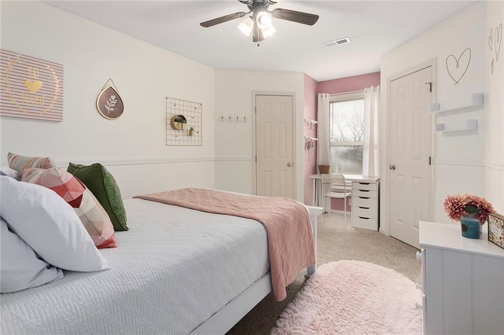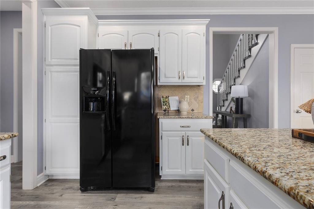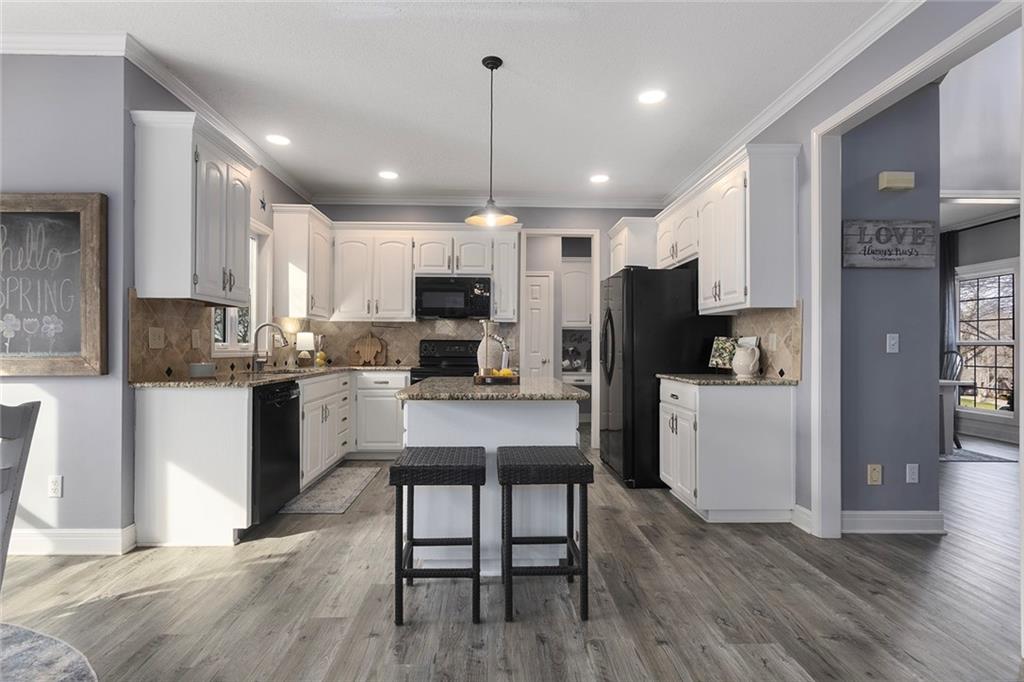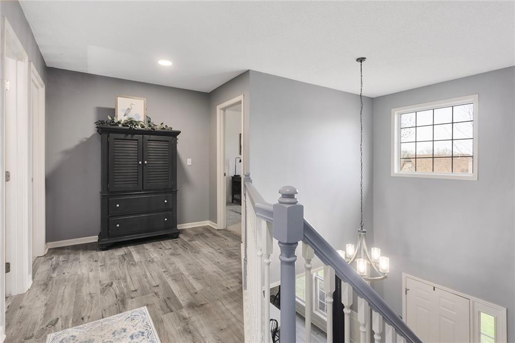 Welcome to this exceptional Shawnee residence with heated saltwater pool. The home is ideally situated on a cul-de-sac. Inside, the home showcases soaring ceilings, quality craftsmanship, and a thoughtfully designed floor plan suited for everyday living and hosting. Luxury vinyl plank flooring extends throughout the main level. A formal dining room and light-filled living room which features a striking masonry fireplace. The kitchen is well-appointed with a large island, granite countertops, and a pantry, offering both functionality and style. The half bath provides secondary access to the back deck and pool. The spacious primary suite serves as a private retreat, complete with a bath featuring a soaking tub, walk-in shower, dual vanities, and an expansive walk-in closet with access to additional out of sight storage areas. The second level also includes generously sized secondary bedrooms which include ample closet spaces; two with walk-in closets and one with dual closets. A full bath and conveniently located laundry room complete the upper level. The finished lower level is designed for versatility and entertainment, offering a large recreation area, additional space for a game table and another area for fitness equipment or future bar. A fifth non-conforming bedroom with a private full bath completes the lower level. The backyard is a private retreat, surrounded by a fully fenced yard. Outdoor living is enhanced by a wood deck, an expansive paver patio, and a dedicated firepit area; perfect for both relaxation and entertaining. Recent updates include newer fence, pool liner (1 year old), HVAC system and water heater (2 years old). Ideally located near three De Soto schools and scenic walking trails, this home combines comfort, style, and convenience in a highly desirable setting.