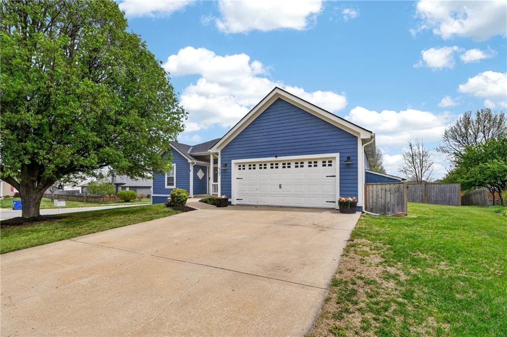 Welcome to 409 S Pumpkin Ridge Circle, where classic ranch living meets contemporary farmhouse style. This stunning four-bedroom, three-full-bath ranch situated on a prime corner lot in a sought-after Gardner subdivision. This home perfectly blends modern with incredible future potential, features a newer roof & gutters (2022) with one time transferable warranty to the buyer. As well as updated exterior (2022) makes for lasting peace of mind. The heart of the home is the expansive kitchen, updated kitchen sink & refrigerator (2024) Also, painted countertops, a tiled backsplash, painted cabinetry, and a large island peninsula with a breakfast bar that is perfect for entertaining. The main-level ranch layout ensures effortless living, while the deep two-car garage provides ample space for oversized vehicles and storage. Reverse osmosis system & water softener system has been installed (2024) Out back, enjoy a private retreat within the 6-foot wood privacy fence installed (2023) with double gate. Perhaps the most exciting feature is the massive full basement; with two-thirds currently unfinished, it offers a blank canvas to create your dream recreation space while building instant equity. Move right in and enjoy today while planning for tomorrow's growth. Located on a quiet circle in the heart of Gardner, you are just minutes away from local parks and highly rated Gardner Edgerton schools. Don't miss your chance to own this Gardner standout.