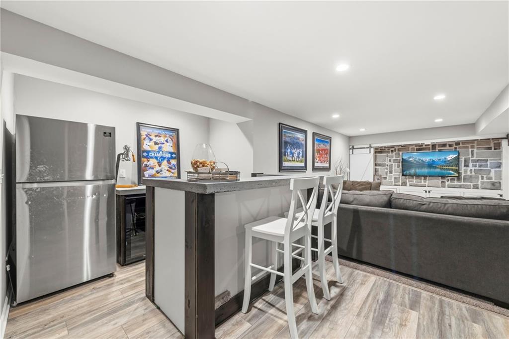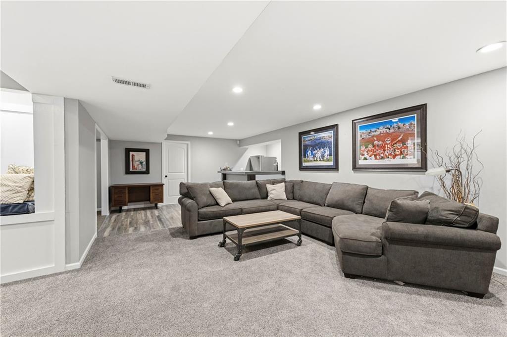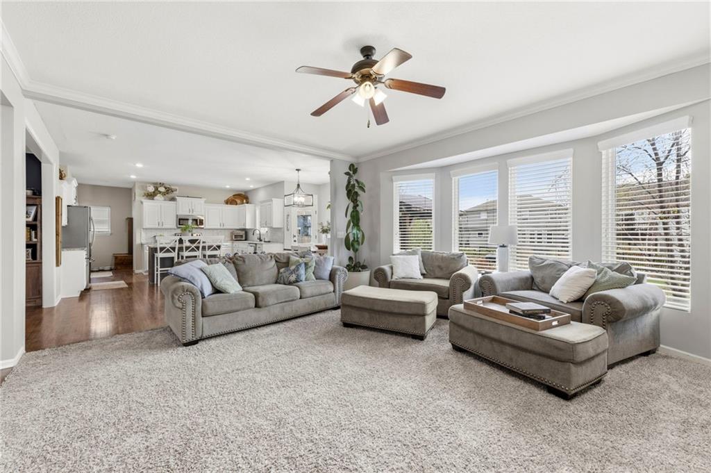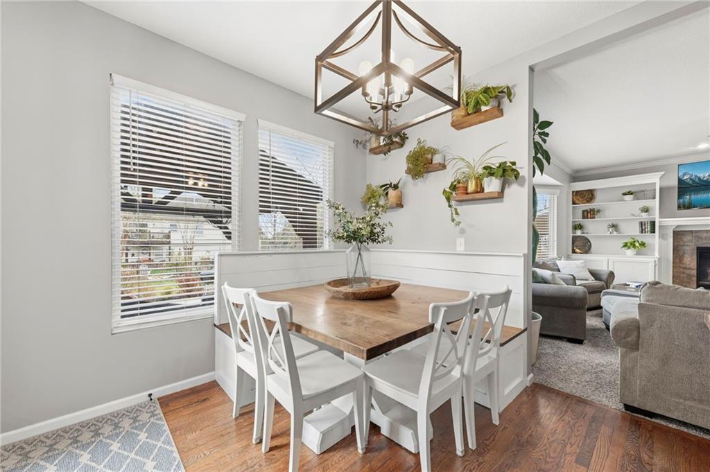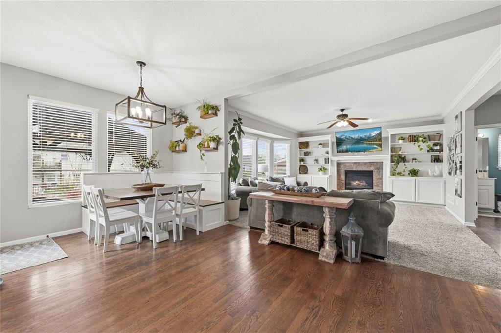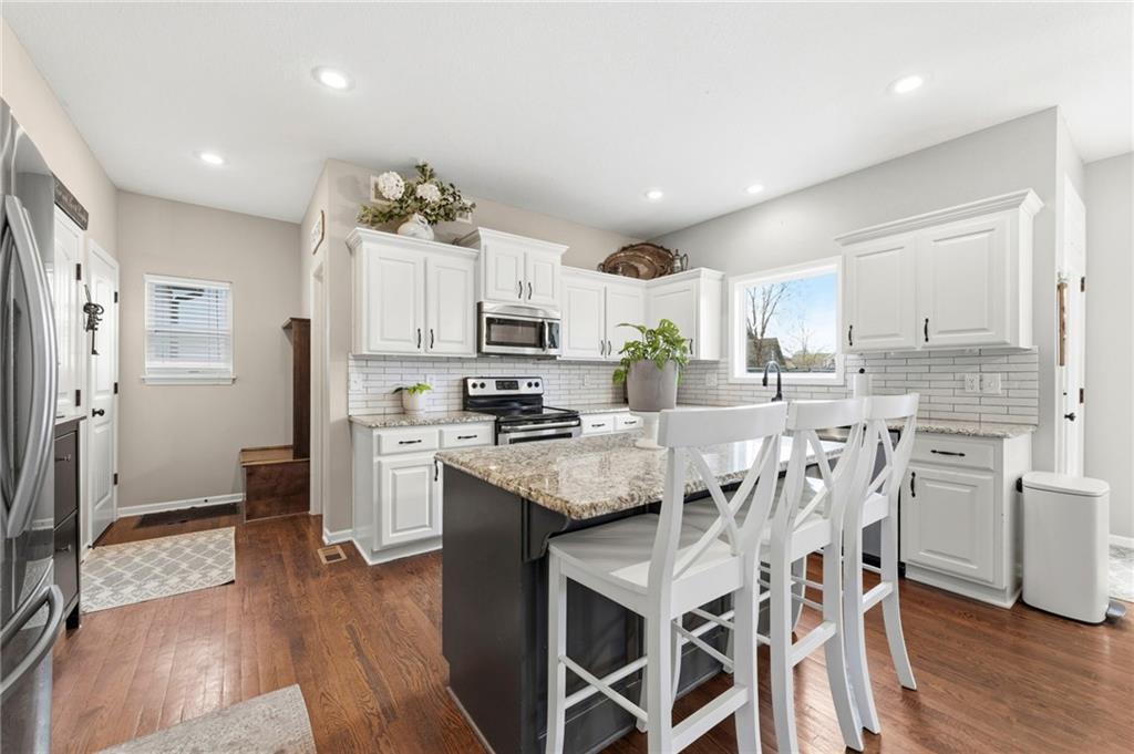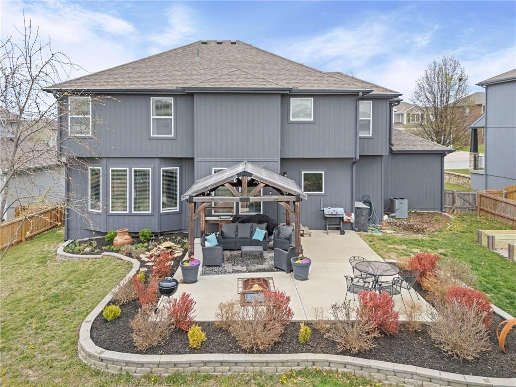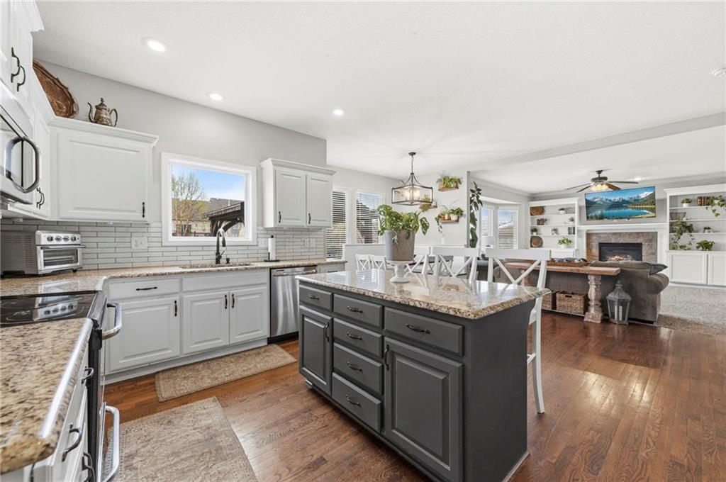 Why wait for a new build and pay more to get less? This 4-bedroom, 3.5-bath, 3-car garage home offers a spacious, open layout with ideal updates and is ready now! The beautifully updated kitchen features hardwood flooring, stainless steel appliances, granite countertops, an eat-in area with custom, built-in seating and table, and a large walk-in pantry. Just off the kitchen, enjoy a bright living room with fireplace and custom built-ins, plus a versatile dining room or office and convenient half bath. Upstairs, you’ll find the incredible primary suite featuring large ensuite and massive closet. Down the hall there are three additional bedrooms, a jack-and-jill bath, an additional full bath, and the convenience of second-floor laundry! The finished basement provides excellent additional living space with a bar area, under-stair play nook, a non-conforming bedroom or flex room, and plenty of storage space w/egress window. Step outside to a level backyard with mature landscaping and plenty of room for entertaining. Located just a short walk from neighborhood amenities including the pool, park, walking trails, and Lake Olathe. To make this even better, the roof and mechanicals are nearly new as well! A true full-package home—don’t miss it! Be sure to check out the virtual tour to fully appreciate the layout and space. Schedule your showing today.
