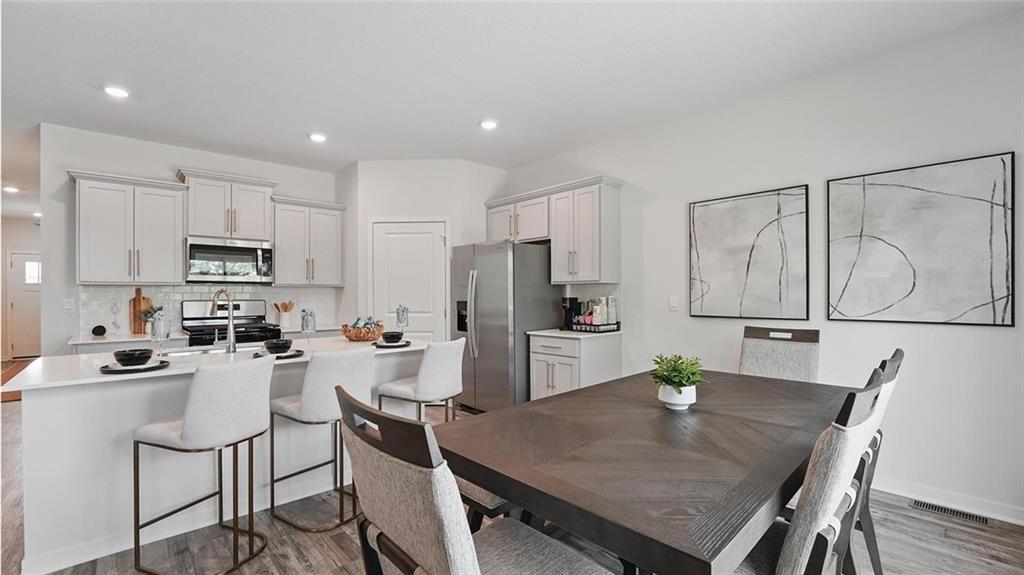 Welcome to Prairie Trace, where modern design meets timeless elegance in this exceptional home crafted by D.R. Horton, “America’s Builder.” This home stands out with James Hardie® siding and stone and shake shingle accents, providing both durability and timeless curb appeal. You'll be greeted with a three-rail, two-panel insulated front door that enhances both curb appeal and energy efficiency. Step inside to find a beautifully appointed interior with 9-foot ceilings that exude sophistication. The chef’s kitchen is the heart of the home, featuring 36-inch painted maple cabinets, quartz countertops, and state-of-the-art Whirlpool® stainless steel appliances. Bathrooms feature quartz-topped vanities and Moen® chrome faucets. The primary bath offers a 5-foot shower with a framed glass enclosure. This home is designed for the future with advanced Smart Home technology, including a Honeywell® Pro Z-Wave® Thermostat, Amazon Echo, and a connected home panel, allowing you to control and monitor your home from anywhere. Energy efficiency is prioritized with LED lighting throughout, a high-efficiency gas furnace, and insulated low E vinyl windows, ensuring comfort and savings year-round. Additional features such as luxury vinyl plank flooring, a spacious garage with opener(s), and detailed wiring solutions like dual data/TV lines in the main bedroom and family room, enhance both convenience and style. D.R. Horton’s commitment to quality is evident in every aspect of this home, offering you a place where luxury, technology, and comfort come together seamlessly. Don’t miss your chance to own this extraordinary home in Prairie Trace. Schedule your private tour today and experience the D.R. Horton difference!