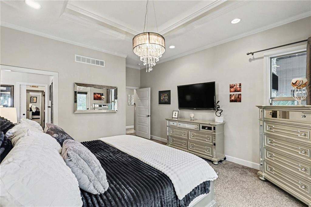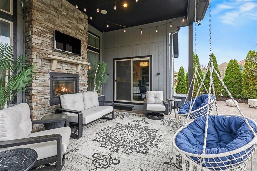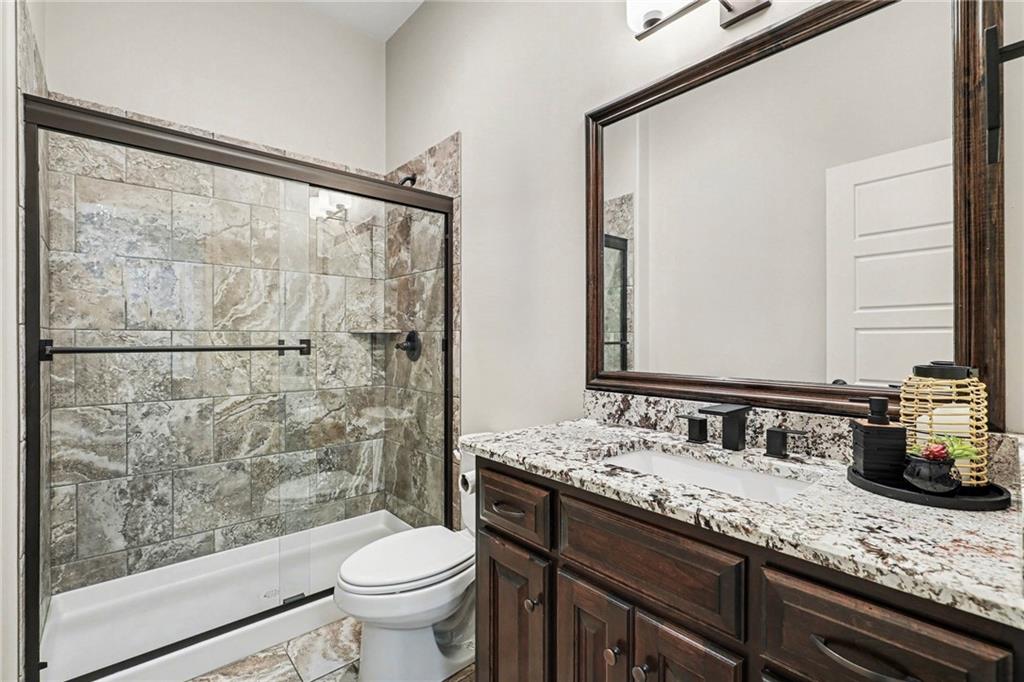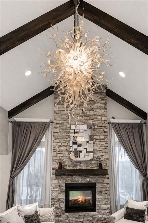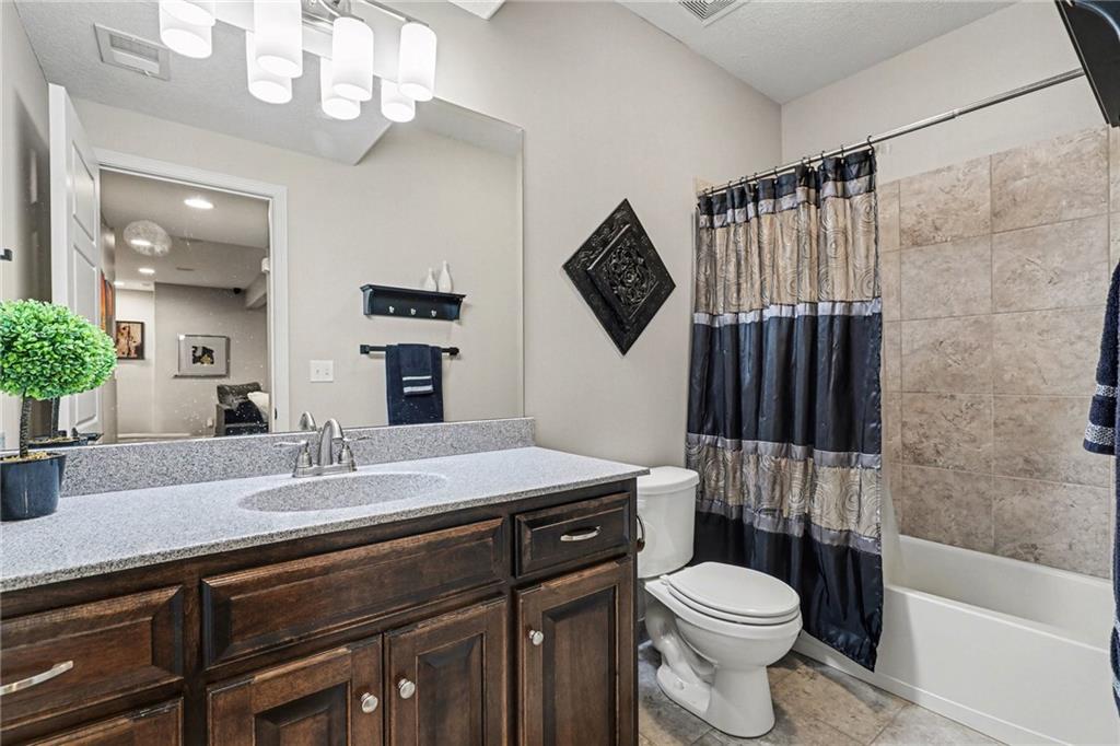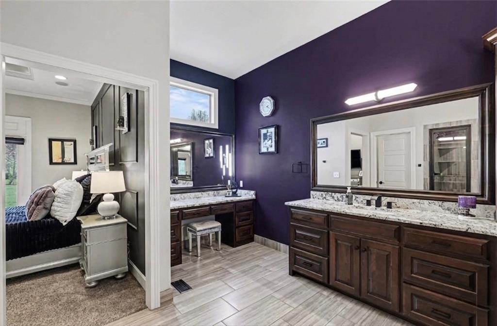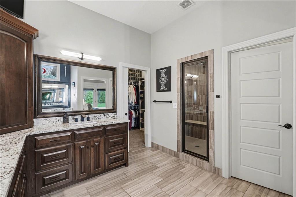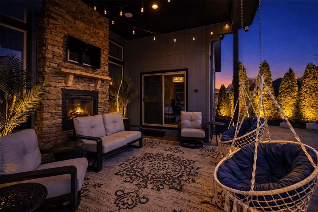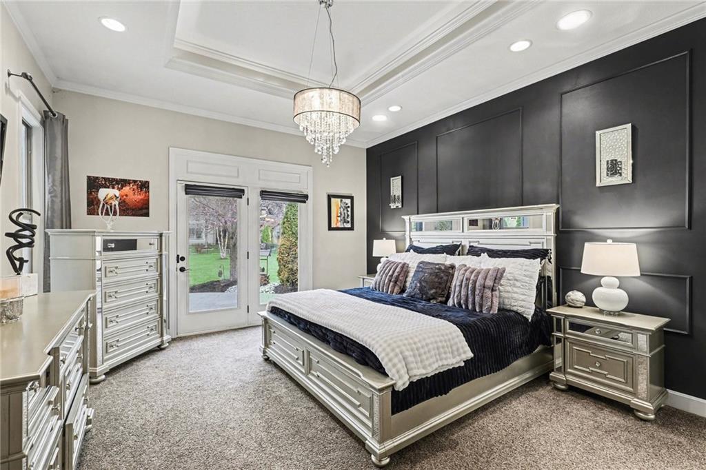 Custom built, upgraded and exceptionally well maintained by the original owner, this Reverse 1.5 Story is impressive. Every inch and finish was thoughtfully curated for the owners enjoyment, comfort and security. Fresh exterior paint, brand new roof, backlit address, up lit landscaping and a water feature provide the ultimate curb appeal. Drawn inside by the vaulted ceilings, stacked stone fireplace highlighted by a 110 piece blown glass fixture by Seth Parks and dimmed for entertaining in the open concept main level. Smart sound system throughout main, lower and exterior living spaces. Upgraded kitchen with thoughtfully planned pantry space, opens to a vaulted dining space. Beautiful landscaping and lighting pulls the outdoors in from every vantage point. Accessible from both the dining area and the primary suite, enjoy the backyard from the covered or uncovered stamped concrete patio space and yard large enough to easily add a pool! Finished lower level entertainment space offers recreation room with wet-bar, 2 additional bedrooms with ensuite bathrooms. Plus plenty of storage in 2 fully insulated unfinished spaces- including a storm shelter! Extra tall and deep finished garage will impress the large truck owners. Be sure to see the full list of upgrades because there are too many to list here!