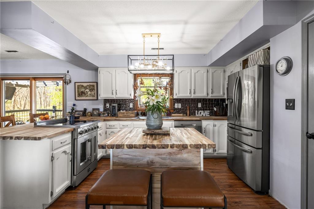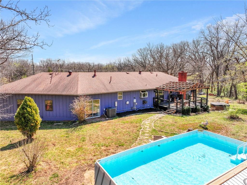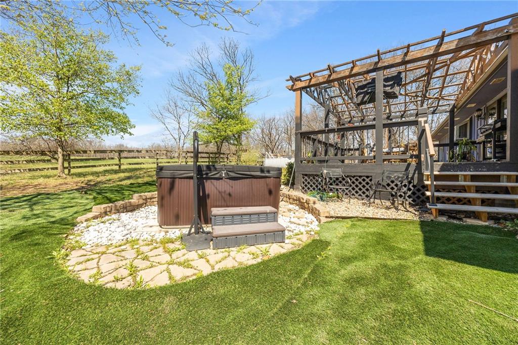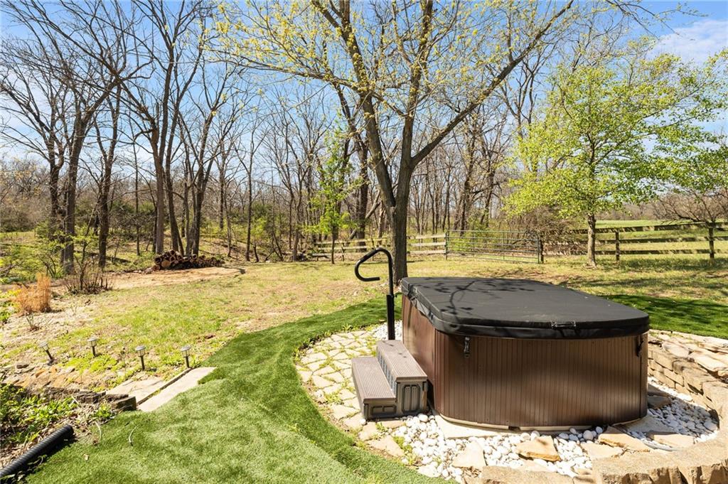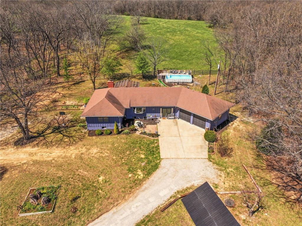 Solar panels, hot tub, pool, space, three wooded acres, and upgrades—this property brings it all. With $80,000 in paid-off solar panels, a hot tub, an above-ground pool with a custom-built deck, and an incredible setting surrounded by mature trees, open fields, and beautifully maintained landscaping, this is the kind of property that makes an impression from the very start. Located just 7 miles north of Warrensburg, it offers the perfect blend of convenience and peaceful country escape. Inside, the home is spacious, updated, and built for both everyday living and entertaining, featuring 4 large bedrooms, an upstairs and downstairs master, 3 full bathrooms, brand-new top-of-the-line appliances, a media room with a giant projector screen, and a full bar downstairs. The oversized garage has room for 2 vehicles plus tools, freezers, and extra storage, and there is an additional shed on the property as well. The paid-off solar system adds tremendous long-term value, with energy savings that can make utility bills nearly nonexistent during sunny months and dramatically lower in the winter. Whether you are looking for a private retreat, a home built for hosting, or a beautifully updated property with standout amenities close to town and Whiteman Air Force Base, this one checks every box.