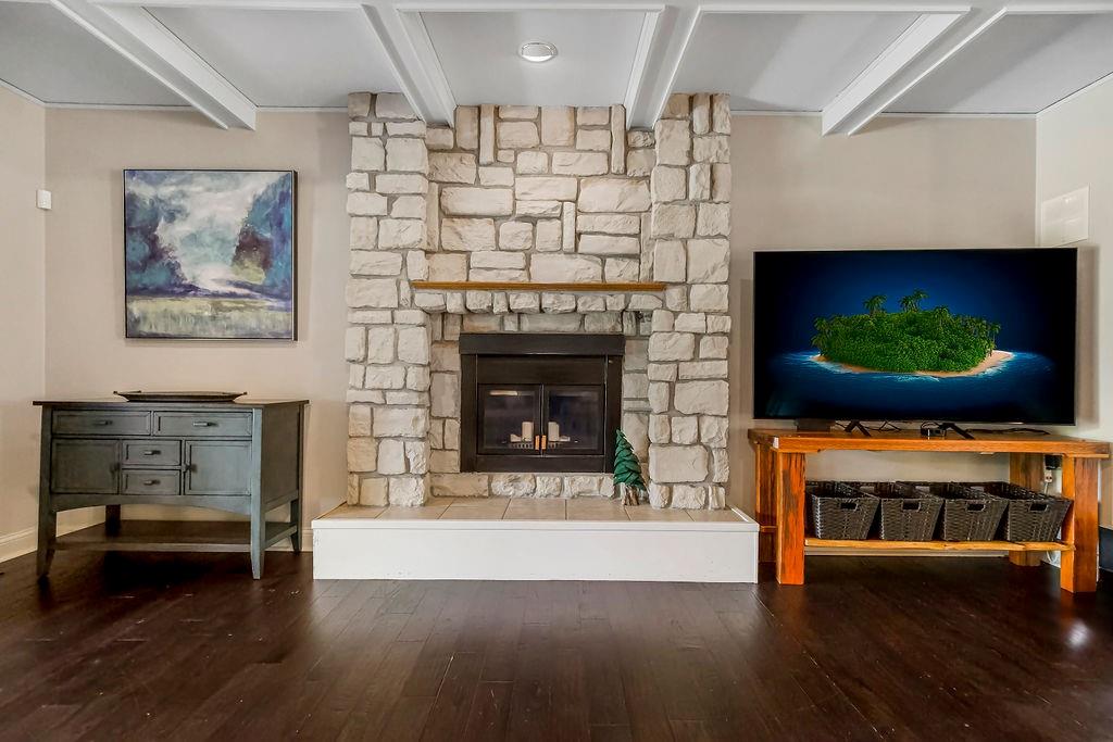 With over $50,000 in updates over the past several years and priced $15,000 UNDER a November 2025 appraisal value, this exquisitely renovated true ranch home set on 17.35 acres is a DREAM! Located within the Basehor-Linwood School District, this property is a nature lover's paradise, featuring abundant wildlife, two stocked ponds, scenic trails, and a creek with a bridge. The main level showcases a formal dining room, a spacious living room with beamed ceilings and a wood-burning fireplace, an updated kitchen with quartz countertops, new backsplash, updated flooring, new stainless-steel appliances, a pantry, and a cozy breakfast nook. Adjacent to the kitchen is the master suite with a walk-in closet, dual vanities, shower, and laundry room. For added privacy, there are two additional bedrooms and a full updated bath on the opposite side of the house. The lower level includes a family room, 4th bedroom, and half bath, with access to the garage/workshop, making it ideal for potential separate living quarters. The lower tandem garage workshop is equipped with AC and can accommodate 3 cars (additional 2-car garage on main level), with ample storage space available. The fenced backyard features a generously sized covered patio perfect for entertaining, relaxing in the hot tub, and enjoying the company of hummingbirds. With custom finishes throughout and recent updates that include a freshly painted interior, scraped ceilings, flooring, kitchen renovations, fixtures, and electrical/lighting, this home offers an absolutely tranquil setting just outside the city limits, where you can revel in the soothing sounds of nature.