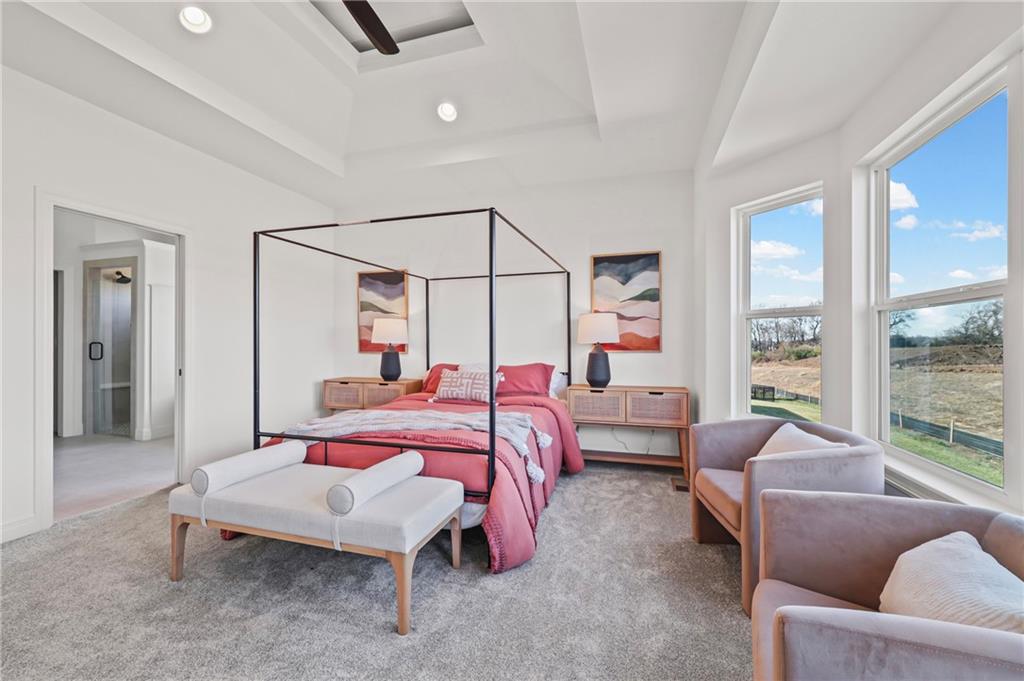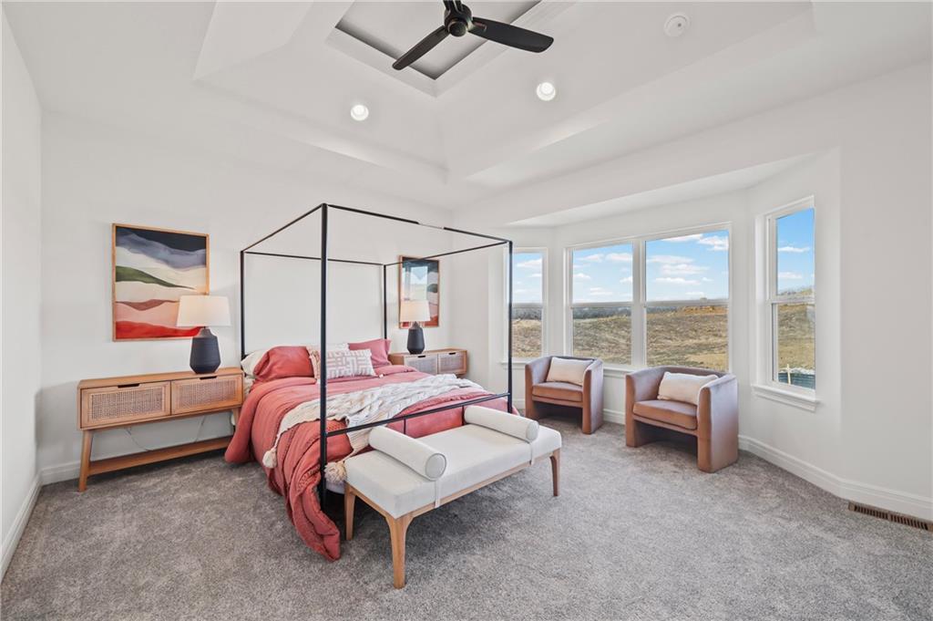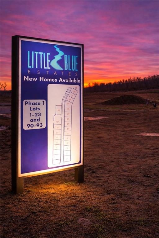 Welcome to this custom-built home in Little Blue Estates, where modern design meets everyday function. Conveniently located near major highways, shopping, and dining, it combines comfort and style, with quality craftsmanship and intentional design throughout. Situated on a spacious walkout/walk-up corner lot, the home offers strong curb appeal with board-and-batten siding, stone accents, a 3-car side-entry garage, and a covered front entry. Inside, the open layout is filled with natural light, soaring ceilings, hardwood floors, and a floor-to-ceiling stone fireplace. The living area flows into a well-designed kitchen with a large center island, custom cabinetry, designer lighting, and a walk-in pantry. The dining area is surrounded by windows with peaceful views. The layout offers privacy with a spacious primary suite featuring a walk-in tiled shower, dual vanities, and a large walk-in closet with custom shelving. The lower level includes a large rec room with a wet bar, plus two additional bedrooms, a full bath, an office, and a play space under the stairs with a Dutch door. Upstairs, extend your living space on the covered deck. Community pool construction will begin during phase three—walking distance to Little Blue Elementary, with Independence taxes and utilities. Photos are from a previously built home, so finishes may vary. Over $23K in planned upgrades are included at the current list price, with the option to reduce cost by adjusting selections.