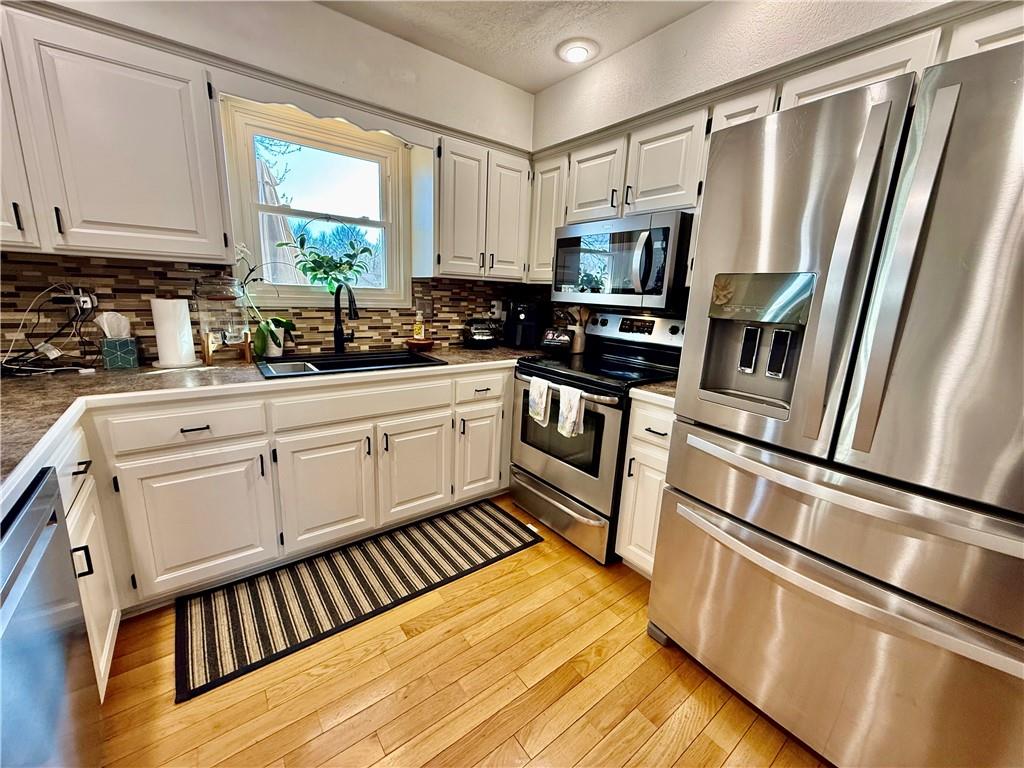 Back on the market due to no fault of the sellers. Fall in love with this Move-In Ready Gem in West Lawrence! This beautifully maintained home welcomes you with a sun-filled main level featuring warm hardwood floors, a cozy fireplace, and an easy flow between the kitchen and dining areas—perfect for hosting friends or quiet evenings. The kitchen shines with newly painted cabinets, a new sink, updated fixtures, and brand-new dishwasher and microwave. The completely finished basement adds incredible value, boasting brand-new flooring and walls, modern light fixtures, and a newly installed full bathroom with a shower—creating the perfect guest suite or second living area. You’ll appreciate the extensive list of "new," including windows throughout, fresh exterior paint, water heater, sump pump, and light fixtures/fans. For the tech-savvy, this home is fully equipped with a NEST thermostat, Ring video doorbell, keyless entry, and a dedicated electric car outlet in the garage! Step outside to a private oasis featuring a new painted fence, fresh patio, and professional landscaping with a new drainage system and a practical new storage shed that blends convenience and practicality. Location…Location…Location: Near shops, grocery stores, restaurants, parks, Theater Lawrence, Rock Chalk Park, and the Aquatic Center. Nestled in the premier Quail Run, Southwest, and Free State school district. Just minutes from I-70 and K-10 for easy access to Kansas City, Topeka, and across Lawrence. This home offers you style, comfort, convenience and is ready for its next owners to call it Home! Seller has another home under contract and is ready for a fast closing! —don't miss this one! OPEN HOUSE, Saturday April 4th, 1-3 p.m.!!!