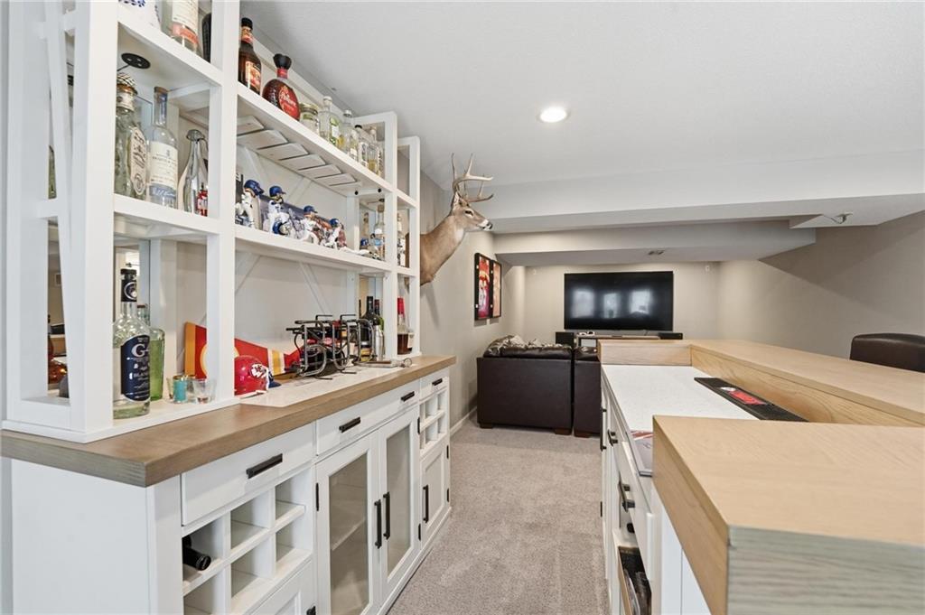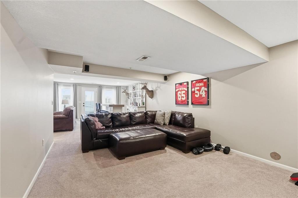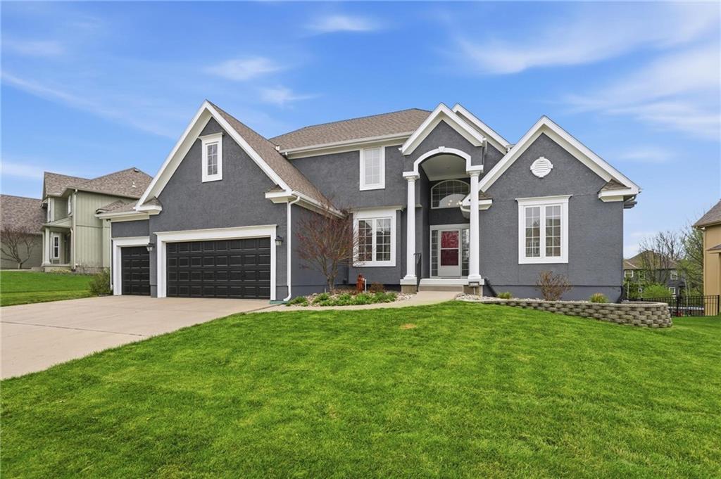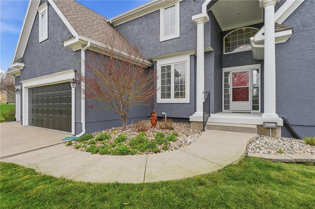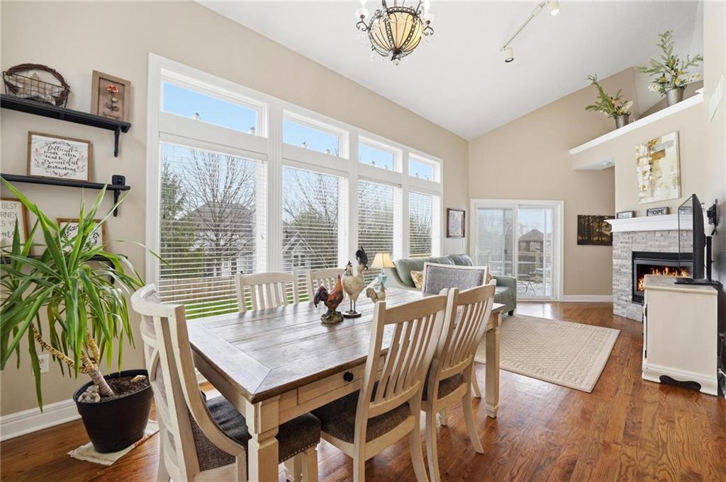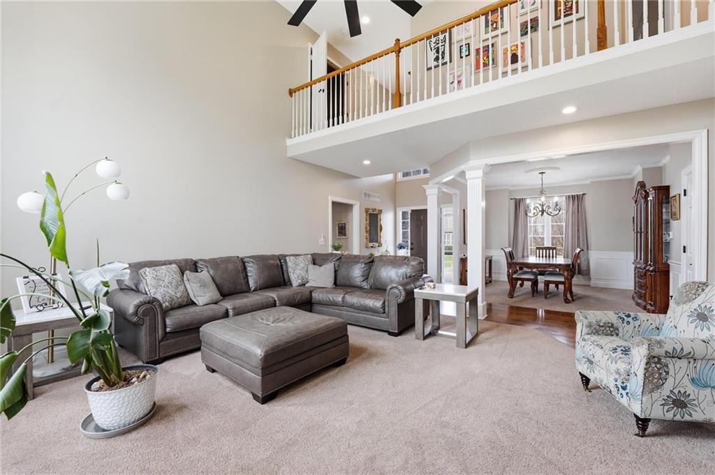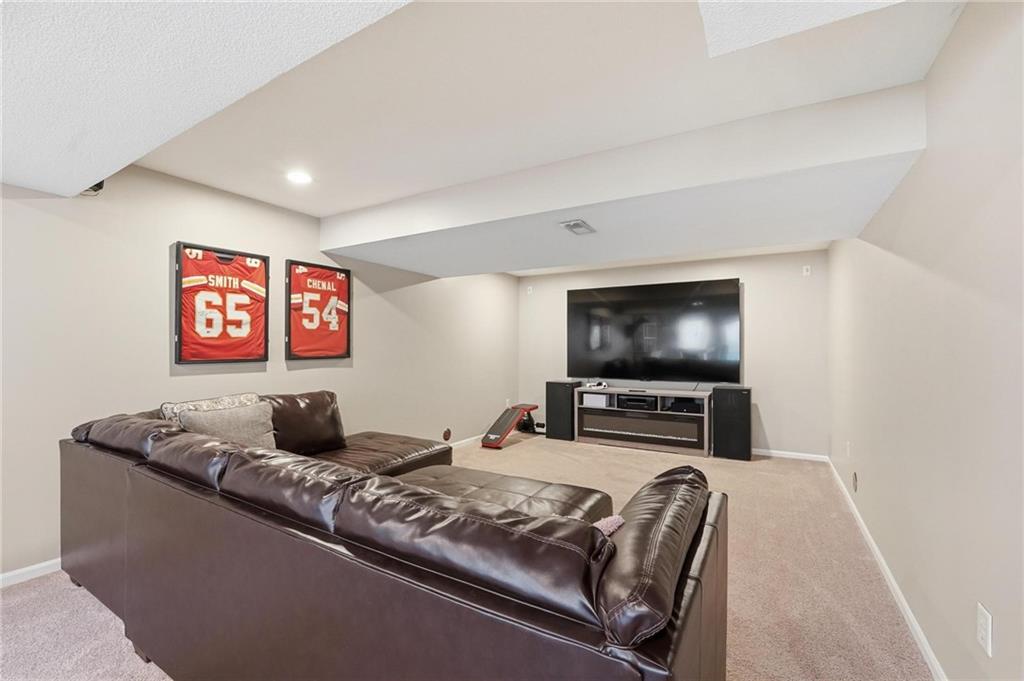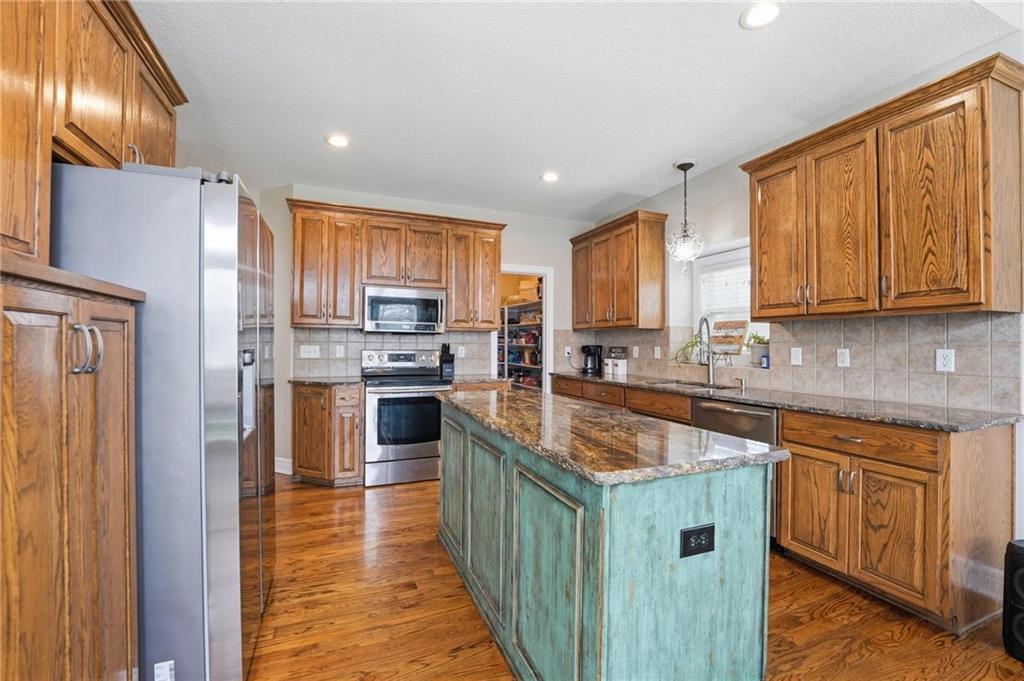 This beautifully designed 1.5-story home offers space, character, and a layout that truly stands out, along with an abundance of storage throughout. The main-level primary suite provides a private retreat, featuring a barn-style sliding door leading to the updated bathroom complete with a jetted tub, separate shower, double vanity with built-in cabinetry, a private toilet room, and a large walk-in closet with custom shelving. Just off the entry, you’ll find a formal dining room, with the living room straight ahead showcasing dramatic floor-to-ceiling windows, a stunning see-through fireplace, and an open view to the second-floor balcony above. The bright, eat-in kitchen features floor-to-ceiling windows, granite countertops, a rustic painted island, and stainless steel appliances—perfect for both everyday living and entertaining. Adjacent to the breakfast area is a cozy sitting room with access to the see-through fireplace and direct entry to the brand-new deck overlooking the fenced backyard—ideal for outdoor living. Upstairs, you’ll find three additional bedrooms. Bedrooms two and three are connected by a Hollywood-style bathroom, while the third bedroom also offers hallway access—perfect for guests. The finished lower level adds even more living space with a media area, dry bar, sitting area, full bathroom, and two additional rooms perfect for a home office, gym, or hobby space. Fresh paint inside and out, thoughtful updates, and inviting spaces throughout make this home move-in ready and a must-see.