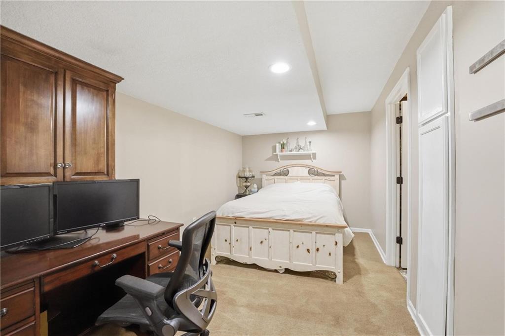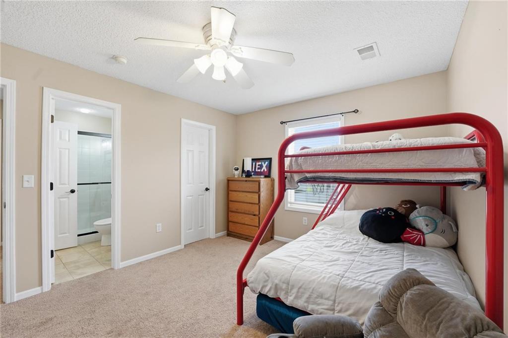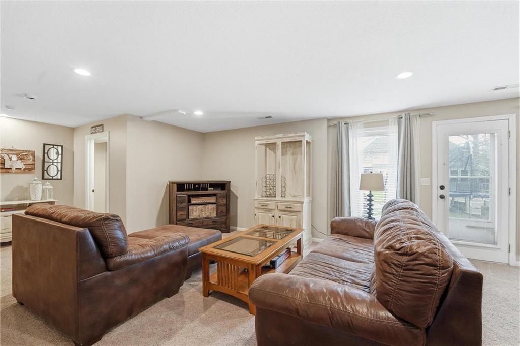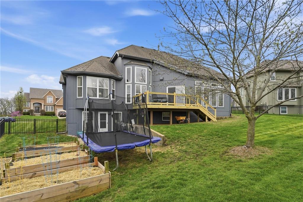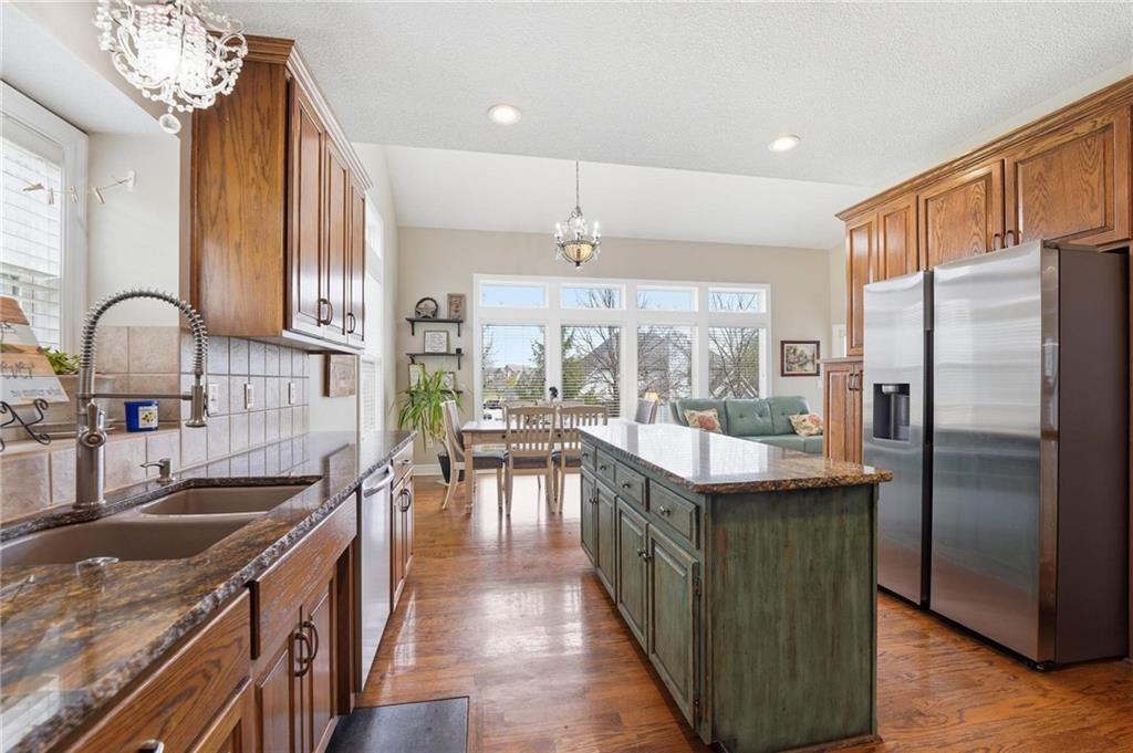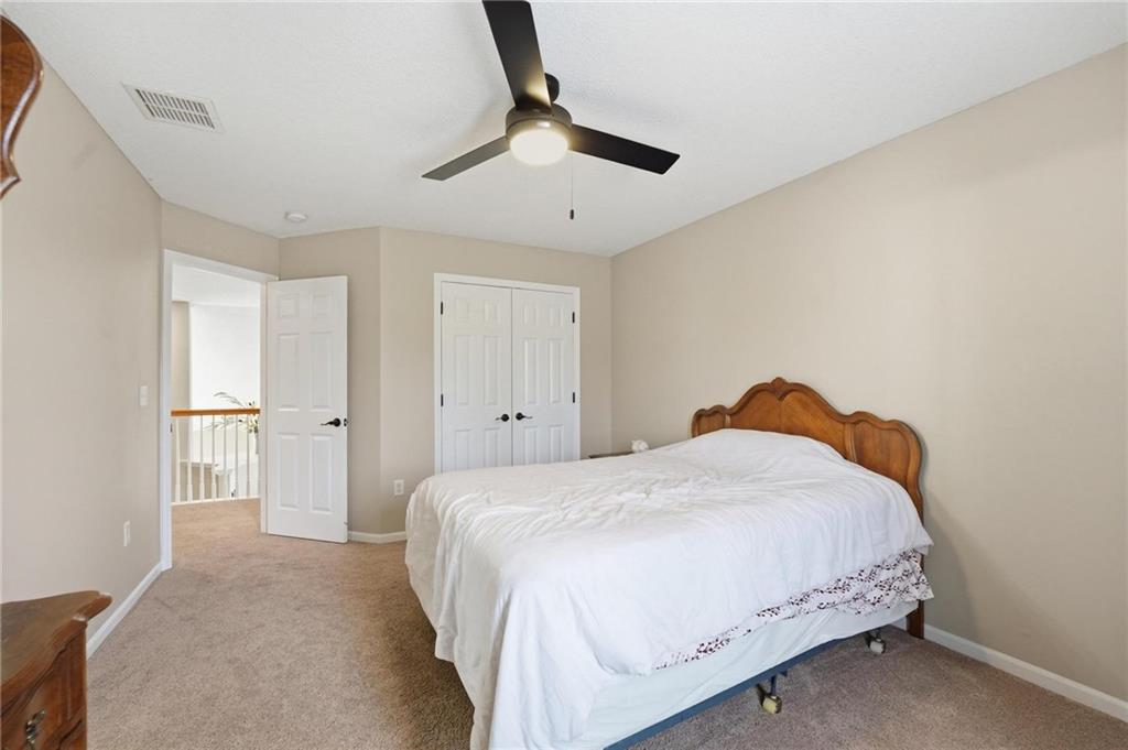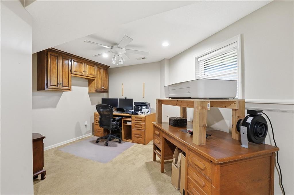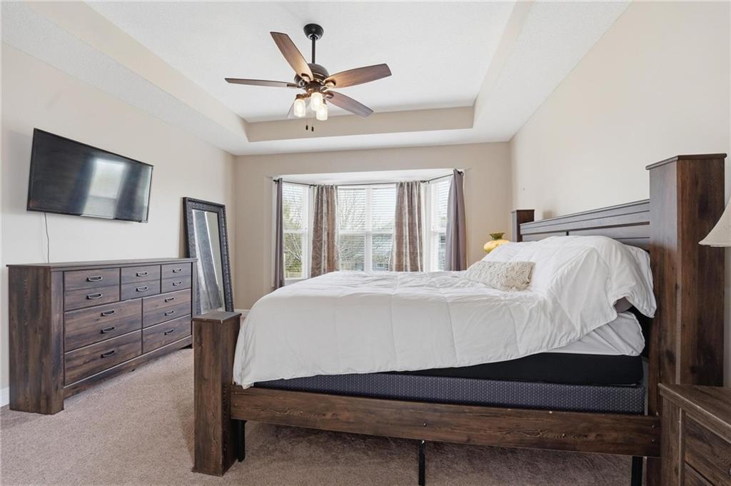 This beautifully designed 1.5-story home offers space, character, and a layout that truly stands out, along with an abundance of storage throughout. The main-level primary suite provides a private retreat, featuring a barn-style sliding door leading to the updated bathroom complete with a jetted tub, separate shower, double vanity with built-in cabinetry, a private toilet room, and a large walk-in closet with custom shelving. Just off the entry, you’ll find a formal dining room, with the living room straight ahead showcasing dramatic floor-to-ceiling windows, a stunning see-through fireplace, and an open view to the second-floor balcony above. The bright, eat-in kitchen features floor-to-ceiling windows, granite countertops, a rustic painted island, and stainless steel appliances—perfect for both everyday living and entertaining. Adjacent to the breakfast area is a cozy sitting room with access to the see-through fireplace and direct entry to the brand-new deck overlooking the fenced backyard—ideal for outdoor living. Upstairs, you’ll find three additional bedrooms. Bedrooms two and three are connected by a Hollywood-style bathroom, while the third bedroom also offers hallway access—perfect for guests. The finished lower level adds even more living space with a media area, dry bar, sitting area, full bathroom, and two additional rooms perfect for a home office, gym, or hobby space. Fresh paint inside and out, thoughtful updates, and inviting spaces throughout make this home move-in ready and a must-see.