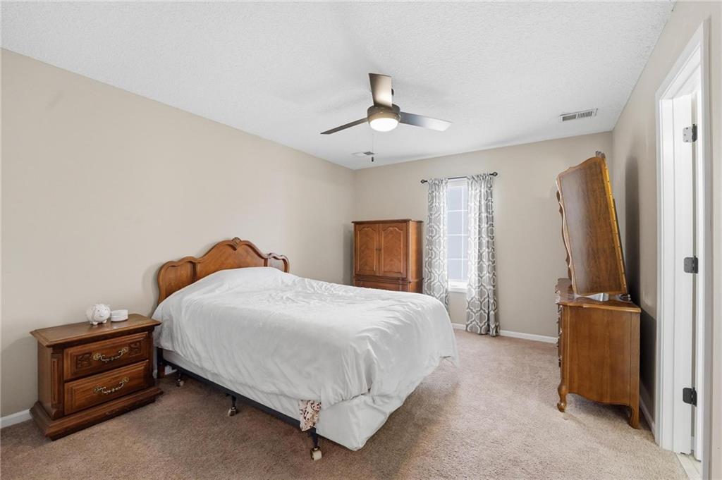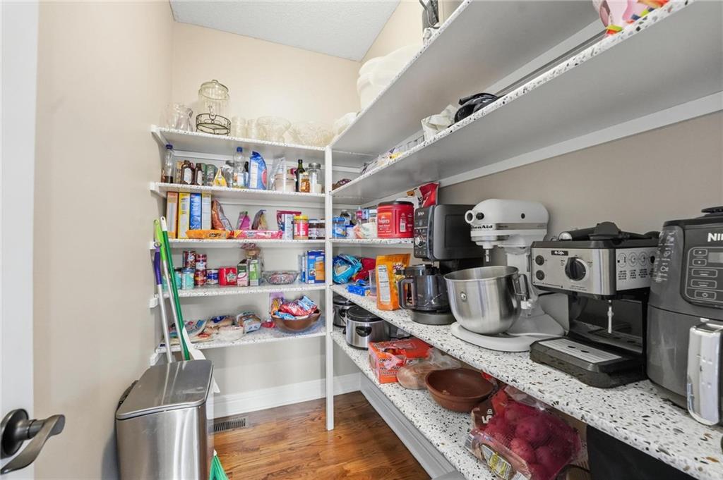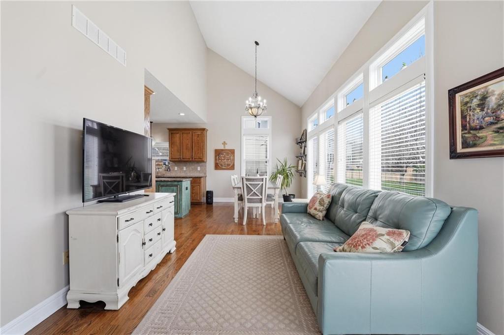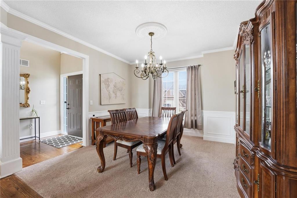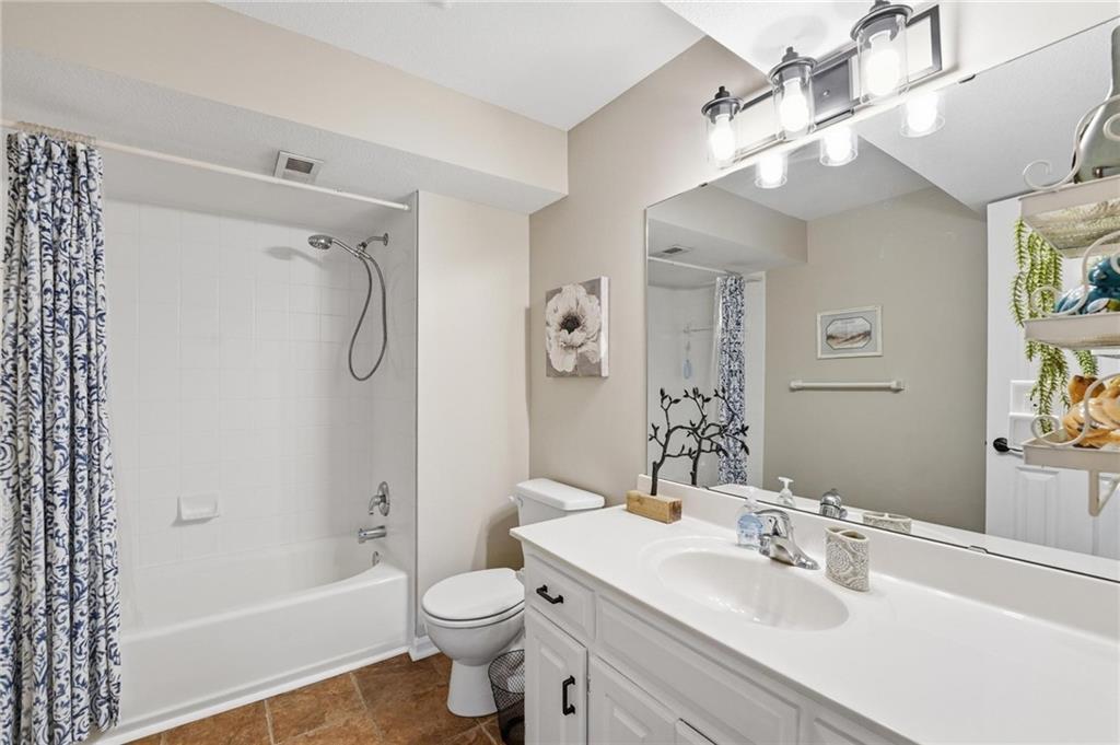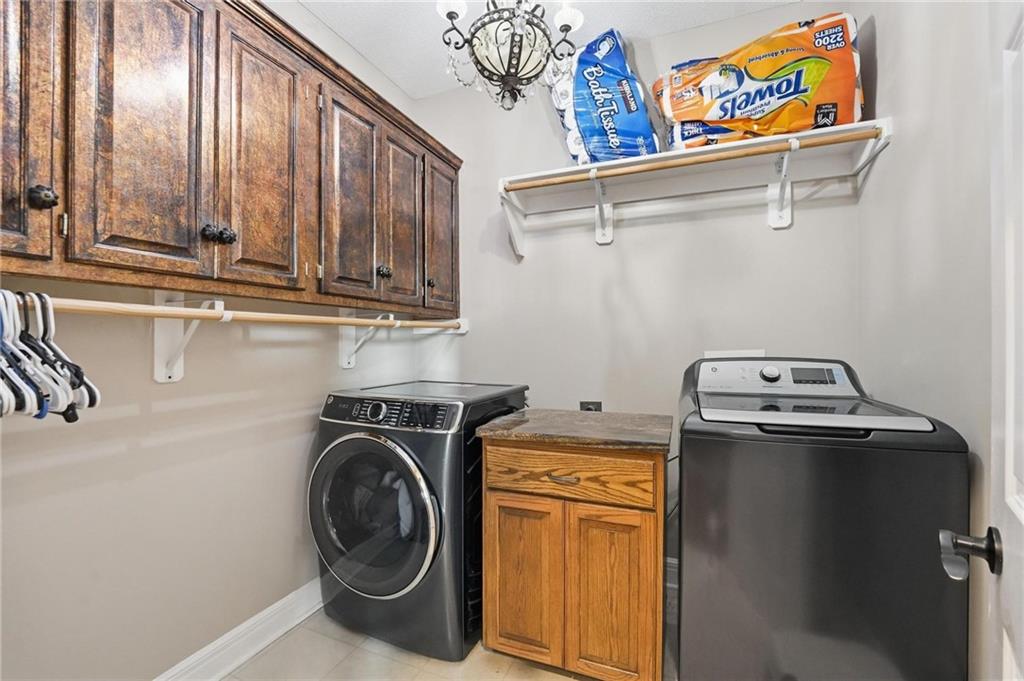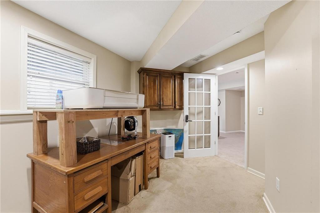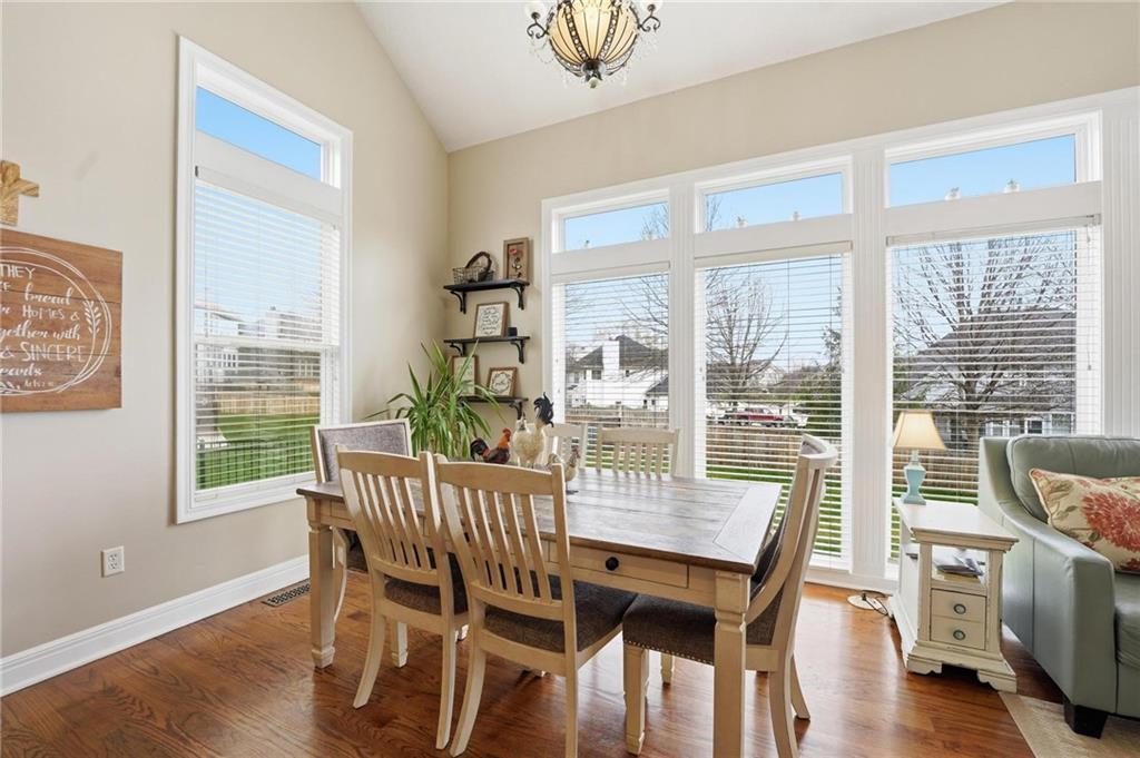This beautifully designed 1.5-story home offers space, character, and a layout that truly stands out, along with an abundance of storage throughout. The main-level primary suite provides a private retreat, featuring a barn-style sliding door leading to the updated bathroom complete with a jetted tub, separate shower, double vanity with built-in cabinetry, a private toilet room, and a large walk-in closet with custom shelving. Just off the entry, you’ll find a formal dining room, with the living room straight ahead showcasing dramatic floor-to-ceiling windows, a stunning see-through fireplace, and an open view to the second-floor balcony above. The bright, eat-in kitchen features floor-to-ceiling windows, granite countertops, a rustic painted island, and stainless steel appliances—perfect for both everyday living and entertaining. Adjacent to the breakfast area is a cozy sitting room with access to the see-through fireplace and direct entry to the brand-new deck overlooking the fenced backyard—ideal for outdoor living. Upstairs, you’ll find three additional bedrooms. Bedrooms two and three are connected by a Hollywood-style bathroom, while the third bedroom also offers hallway access—perfect for guests. The finished lower level adds even more living space with a media area, dry bar, sitting area, full bathroom, and two additional rooms perfect for a home office, gym, or hobby space. Fresh paint inside and out, thoughtful updates, and inviting spaces throughout make this home move-in ready and a must-see.