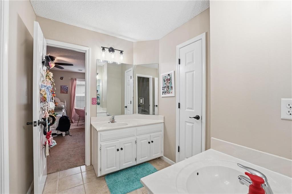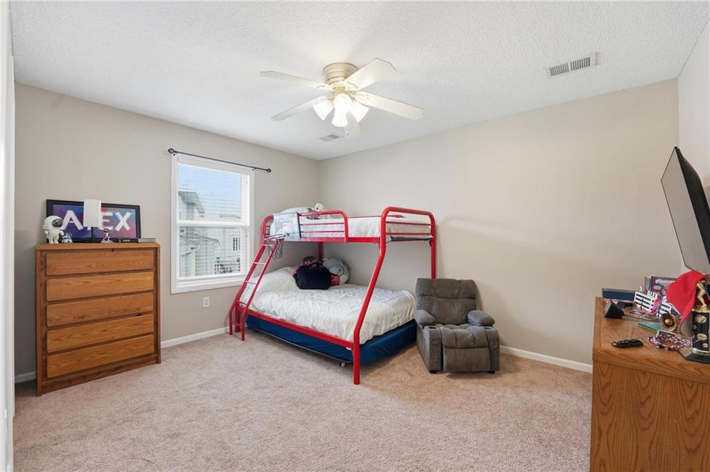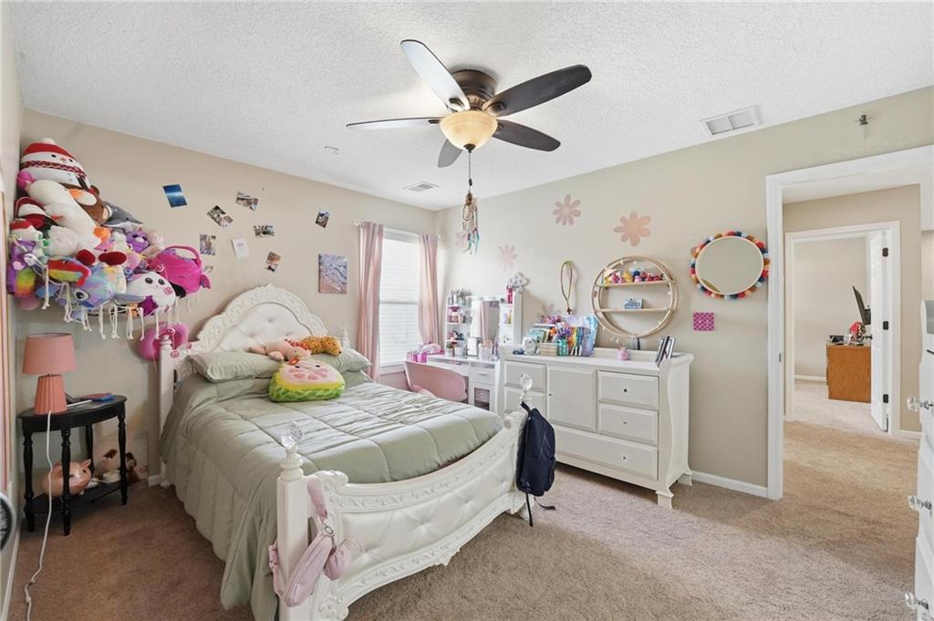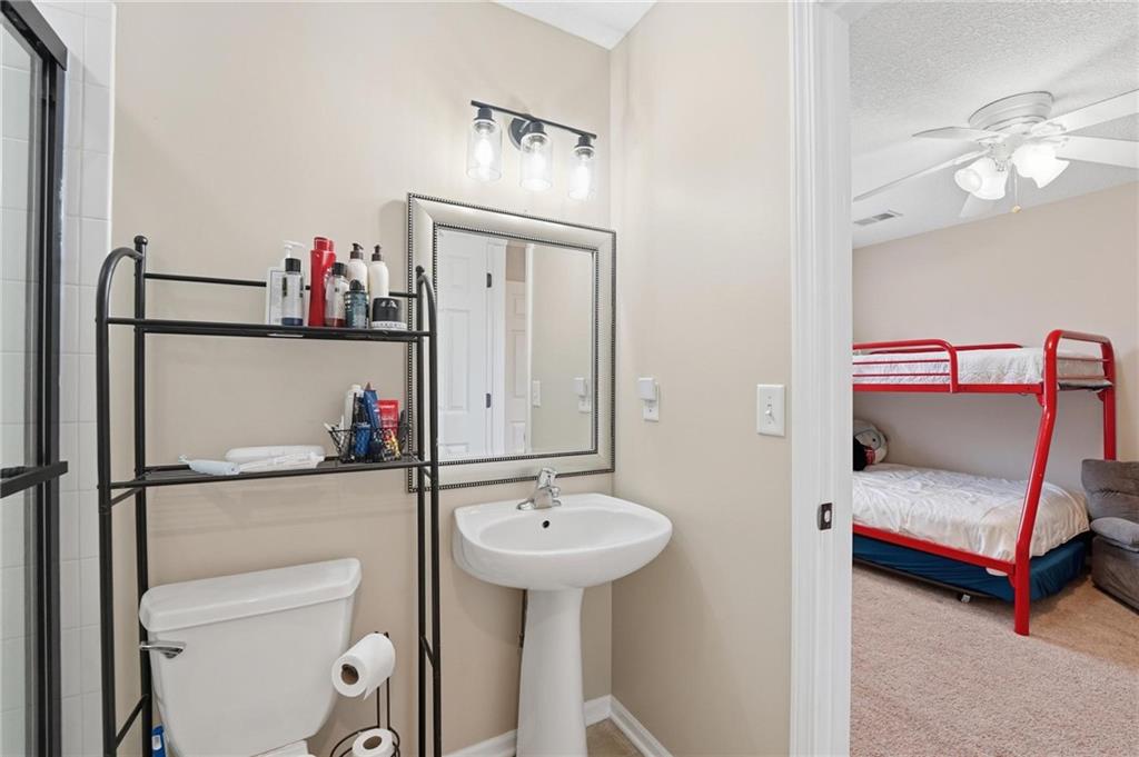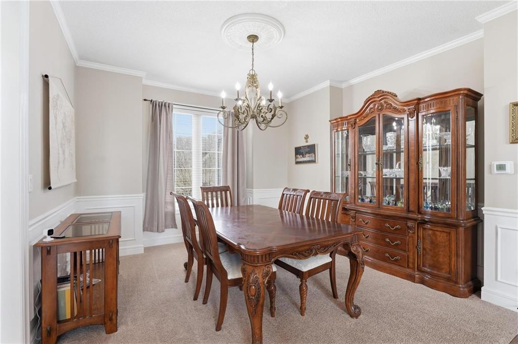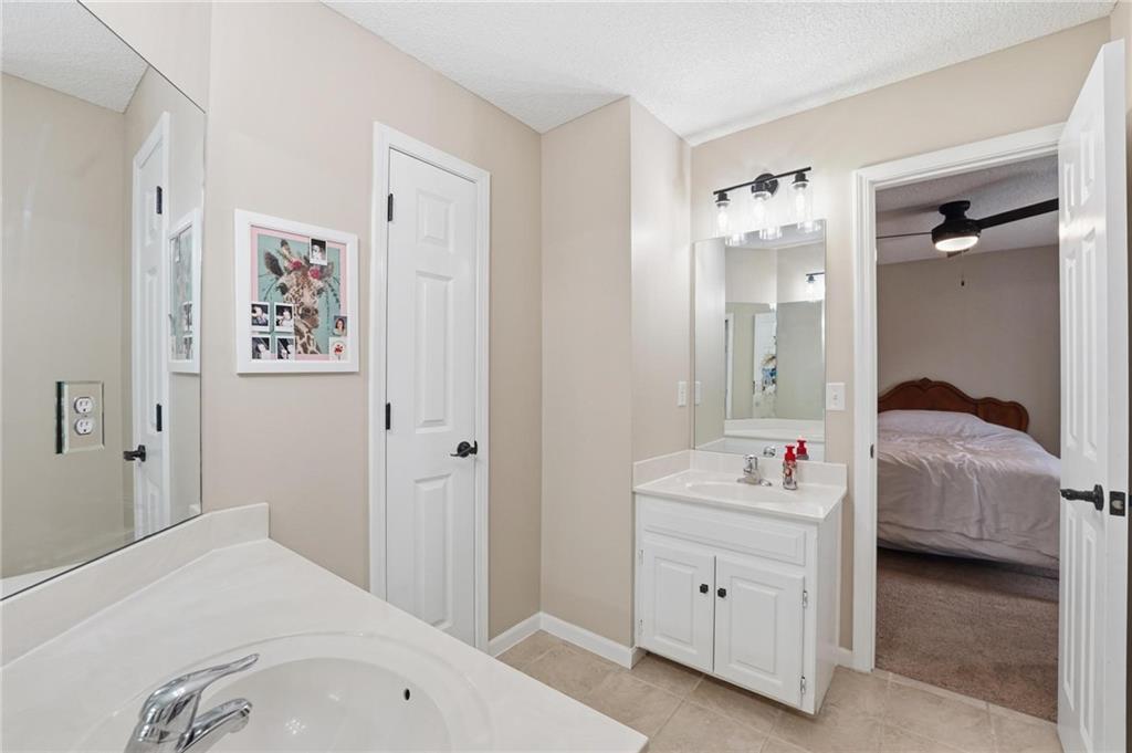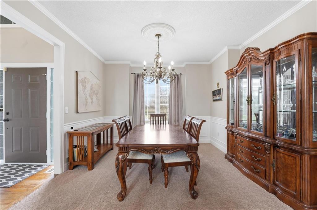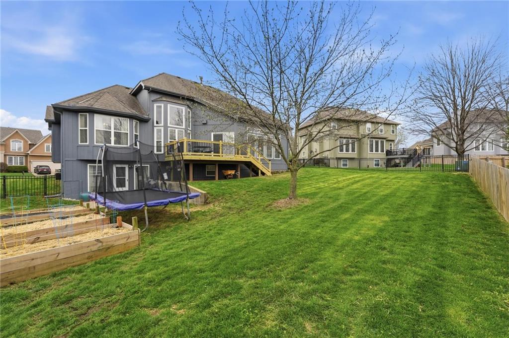 This beautifully designed 1.5-story home offers space, character, and a layout that truly stands out, along with an abundance of storage throughout. The main-level primary suite provides a private retreat, featuring a barn-style sliding door leading to the updated bathroom complete with a jetted tub, separate shower, double vanity with built-in cabinetry, a private toilet room, and a large walk-in closet with custom shelving. Just off the entry, you’ll find a formal dining room, with the living room straight ahead showcasing dramatic floor-to-ceiling windows, a stunning see-through fireplace, and an open view to the second-floor balcony above. The bright, eat-in kitchen features floor-to-ceiling windows, granite countertops, a rustic painted island, and stainless steel appliances—perfect for both everyday living and entertaining. Adjacent to the breakfast area is a cozy sitting room with access to the see-through fireplace and direct entry to the brand-new deck overlooking the fenced backyard—ideal for outdoor living. Upstairs, you’ll find three additional bedrooms. Bedrooms two and three are connected by a Hollywood-style bathroom, while the third bedroom also offers hallway access—perfect for guests. The finished lower level adds even more living space with a media area, dry bar, sitting area, full bathroom, and two additional rooms perfect for a home office, gym, or hobby space. Fresh paint inside and out, thoughtful updates, and inviting spaces throughout make this home move-in ready and a must-see.