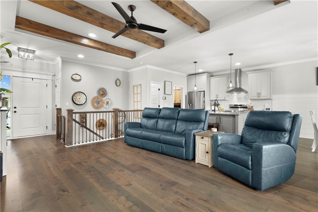 Located in the sought-after Woodbury subdivision, this beautifully maintained reverse 1.5-story home offers 4 bedrooms and 3.5 bathrooms in a thoughtfully designed layout. Only 6 years old, this home combines modern style with everyday comfort. The spacious kitchen features white painted cabinets, an oversized island perfect for gathering and entertaining. The open floor plan flows seamlessly into the main living areas, creating an inviting space for family and guests alike. Keep the lawn lush and green with help from the irrigation system. This home also offers a wood private fenced backyard. This move-in-ready home offers the perfect blend of style, function, and neighborhood amenities in one of Grain Valley's most popular communities.
