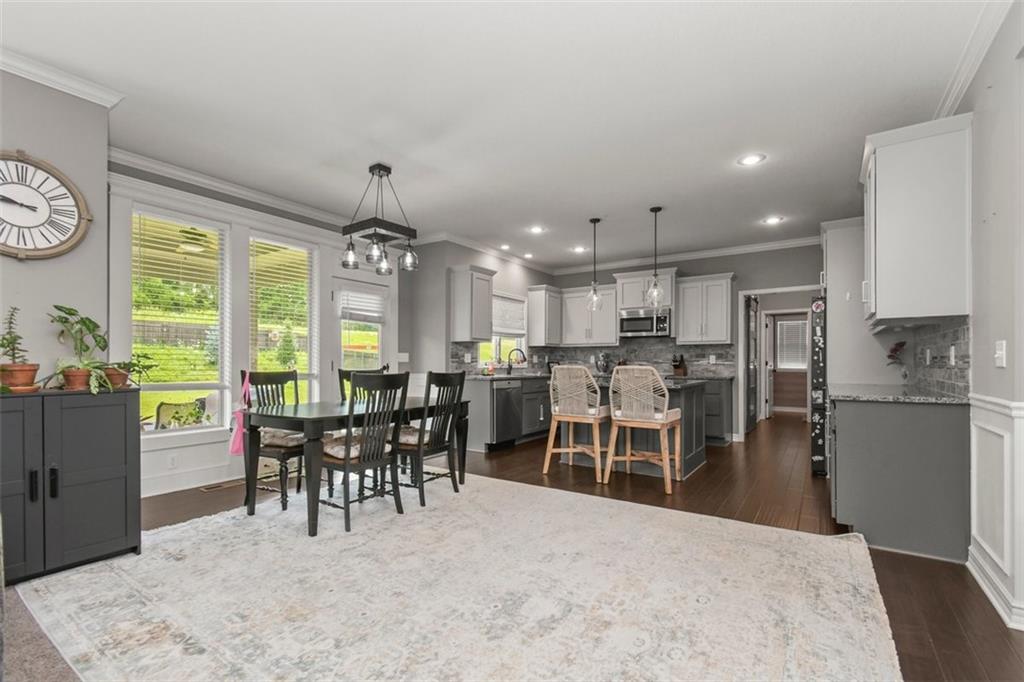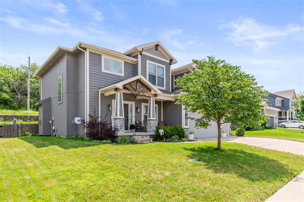 Modern elegance meets Craftsman's Charm in this sought-after Creekmoor Community!! This stunning home features 4-bedrooms, 3.5-bathrooms and a 3-car garage. Built in 2017, this beautifully maintained craftsman-style residence offers a perfect blend of modern luxury and timeless design. Step inside and you’ll immediately notice the attention to detail—from the soft-close custom cabinetry finished with crown molding to the upgraded finishes that flow seamlessly throughout the home. The kitchen is a chef’s dream, featuring sleek granite countertops, a huge island, a spacious walk-in pantry, high-end finishes, and a functional layout ideal for both everyday living and entertaining. Backed by serene green space, the backyard provides the perfect setting for morning coffee or evening gatherings—offering peace, privacy, and serene views. Located near Hawk Ridge Park, this home offers access to Creekmoor’s unbeatable amenities, including a resort-style clubhouse, an amazing 18-hole golf course, pools, tennis and basketball courts, a fishing pond, walking trails, a gym and more. Don’t miss this opportunity to own a move-in ready home in one of Raymore’s most coveted communities—where comfort, convenience, and community truly come together.