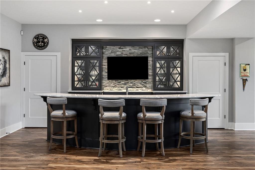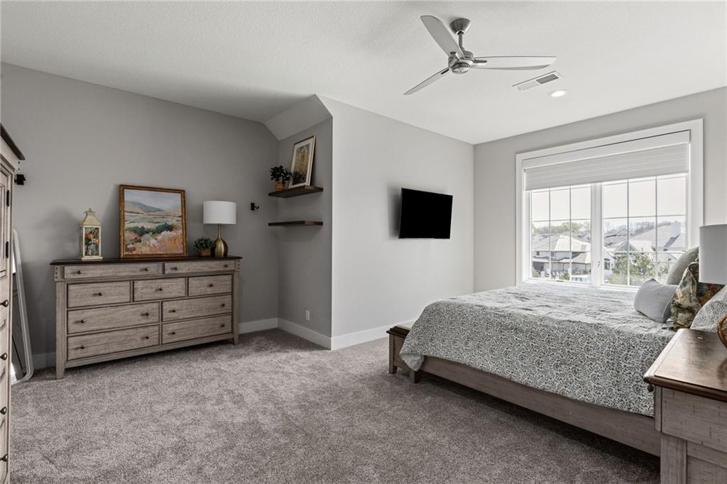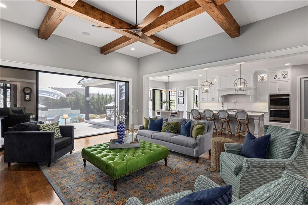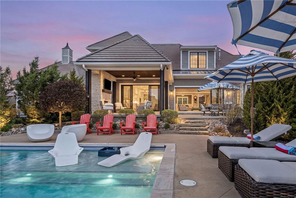 Your DREAM HOME in Mills Ranch in South Overland Park. This estate home offers a truly one-of-a-kind setting. Extensive landscaping ensures incredible privacy on the almost full acre lot adjoining greenspace—a rare find in a suburban neighborhood! Gorgeous 1.5 story home built in 2019 by Todd Hill Homes with high-end design & luxury finishes. Recent upgrades include ALL brand-new, top-of-the-line Pella windows, sliding doors, new carpet, & fresh designer wallpaper in the powder room & primary bedroom. The primary bedroom is a true retreat with ensuite bath featuring a deep soaker tub, & two walk-in closets recently upgraded with custom California Closets. The kitchen features beautiful white cabinets, oversized fridge, & walk-in pantry. Tucked away on this floor is a private office, a spacious laundry room, and a convenient mudroom (or "drop space") with built-in cabinets to hide all the day-to-day "stuff." Get ready to host—this house is perfect for entertaining! Enjoy seamless indoor/outdoor living with massive panoramic sliding doors off the living room. Step outside to the lanai with fireplace, terraced patio, & a top of the line 20x40 saltwater pool! It has all the bells and whistles: a lounge pad, water features, LED lighting—everything you could want! Upstairs, you'll find three spacious bedrooms, each with its own full bathroom. Also upstairs is a massive bonus room that you can use for anything—a second office, game room, or kids' playroom. Finished lower level includes two more bedrooms, 1.5 baths, a custom media wall, pool table area, & seating for everyone to catch the big games. The sleek wet bar features illuminated liquor shelves, a bev fridge, dishwasher, & marble bar that seats six. Don't miss the large, mirrored workout room. This is truly an extraordinary property that guarantees a lifestyle of absolute comfort and luxury. It sits on a quiet cul-de-sac surrounded by other exceptional homes. Don't miss out—schedule your private showing today!