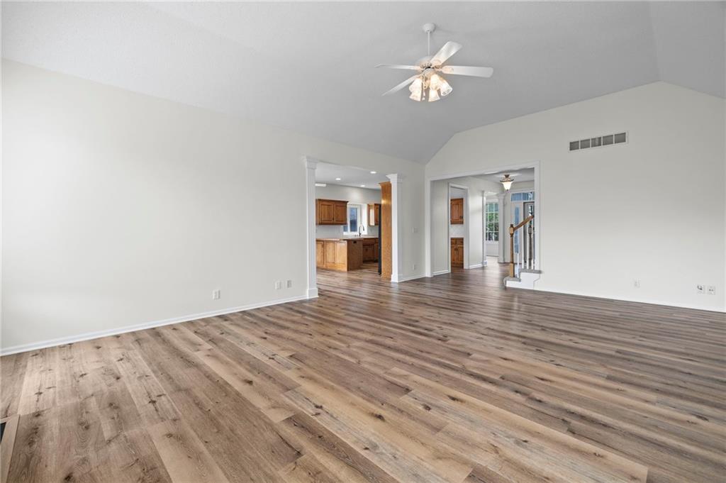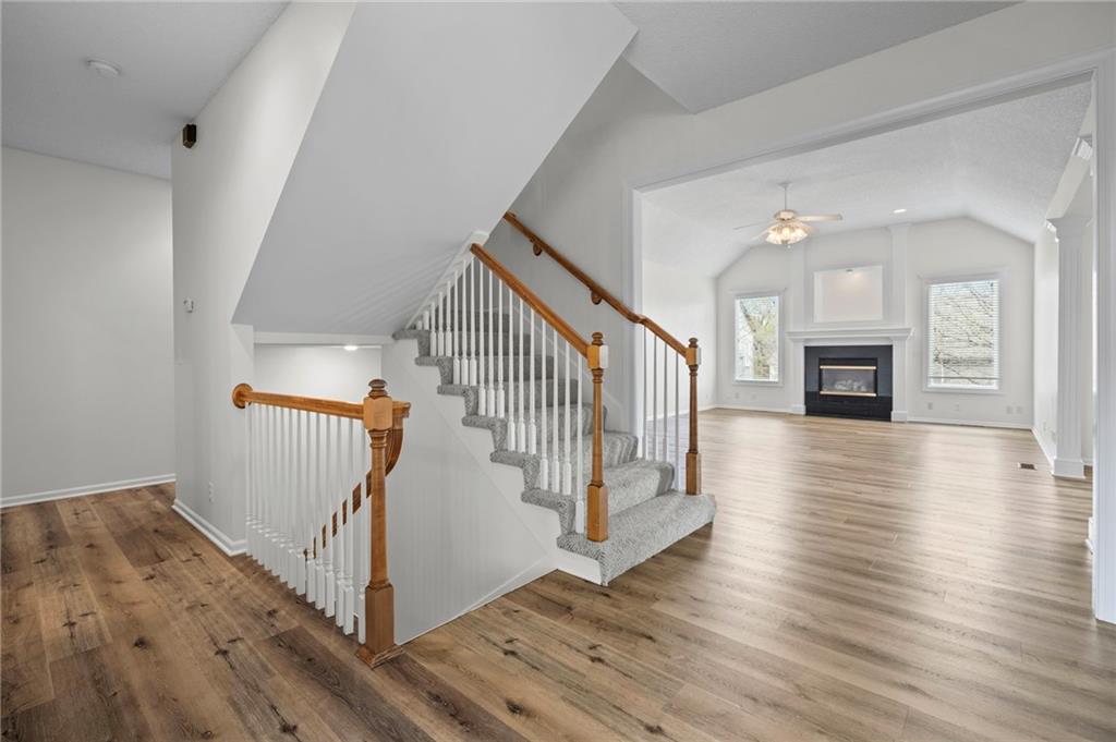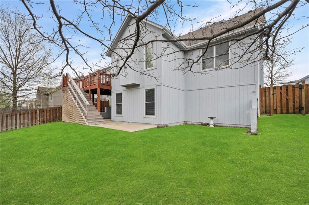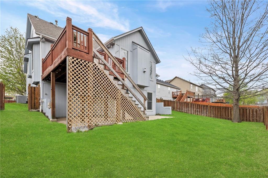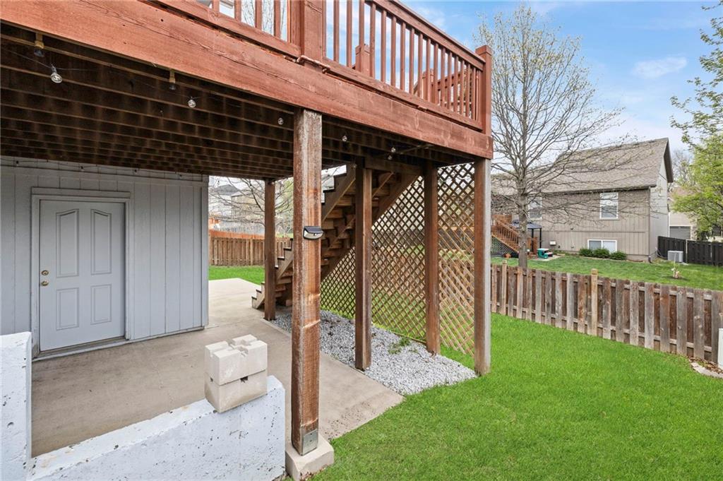 Welcome to this beautifully updated custom 1.5-story home in the highly sought-after Bridlewood Downs subdivision! With 4 bedrooms, 3.5 baths, and over 3,800 sq ft, this meticulously maintained home offers space, style, and functionality. You’ll love the eye-catching stone exterior, gleaming hardwood floors, fresh paint, and much more. The bright, open kitchen features hardwood floors, a large pantry, and abundant cabinet space—perfect for everyday living and entertaining. Step out onto the newly stained deck for morning coffee or evening BBQs. The main-floor primary suite offers comfort and convenience with double vanities, along with a well-equipped laundry room (washer, dryer, sink, and freezer included). The finished walk-out lower level is an entertainer’s dream—complete with a second kitchen, full bath, pool table area, and a versatile enclosed room ideal for a home theater, guest suite, or private retreat. Plus, enjoy plenty of additional storage space. Relax outdoors in the fully fenced backyard with a lower-level patio. A newer roof with upgraded Owens Corning Duration Storm Shingles adds peace of mind. Located within walking distance to Prairie Center Elementary, Mission Trail Middle School, and Olathe West High School, with quick access to shopping, dining, and Olathe Lake—this home truly has it all!