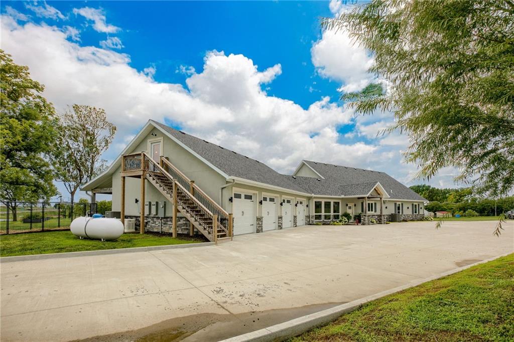 Discover the convenience of this picturesque estate located just off exit 40 in Lathrop MO. This newly constructed home offers over 4400 square feet of livable space and just over 5 acres with and livestock facilities. Ideal for business owners, large families, or those wanting a quick commute to Kansas City or the airport. The stunningly designed home offers 4 bed, four bathrooms, two fireplaces and a massive great room perfect for family living and entertaining guests. Inside there is a blend of marble and high end flooring that adds elegance and durability throughout. The heart of the home features a state of the art kitchen with an 11 foot custom granite island, walk in pantry, and personalized kitchen cabinetry. The expansive concrete driveway and parking pad outside the 4 car garage provides extra parking for additional guests. Additionally the main floor offers oversized hallways and doorways making it completely handicapped accessible. Outside the home there is a 30x40 barn with a fully fenced paddock with water spigots already suitable for livestock or horses. Additional highlights include a vault style safe room, a dedicated office space and an integrated Generac backup generator, ensuring your home remains comfortable and functional in any situation. This property seamlessly combines luxury security and practically practicality making it a true sanctuary. homeowner is also willing to sell adjoining acreage for an cost. Don't miss the opportunity to own this remarkable estate just 30 minutes from Kansas City and the MCI Airport. Schedule your showing today Inexperience all this stunning home has to offer!