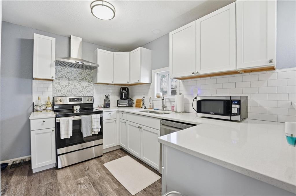 Beautifully remodeled 2-bedroom, 2 full bathroom home with inviting spaces inside and out! The large front porch offers the perfect spot to relax and unwind. Inside, the open floor plan maximizes space while maintaining a warm, cozy feel. The updated kitchen features shaker-style cabinetry, custom solid surface countertops, stainless steel appliances and a stainless vent hood. Both full bathrooms have been thoughtfully updated with modern finishes. Enjoy the convenience of main-level laundry, eliminating trips to the basement. The private primary suite is located on the second floor and includes a double vanity and a spacious shower. With updates throughout, this home is truly move-in ready. Just bring your furniture and make it yours!