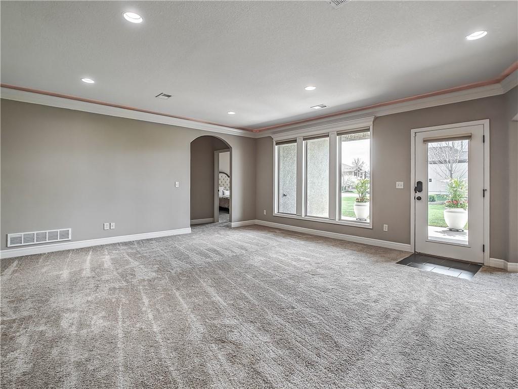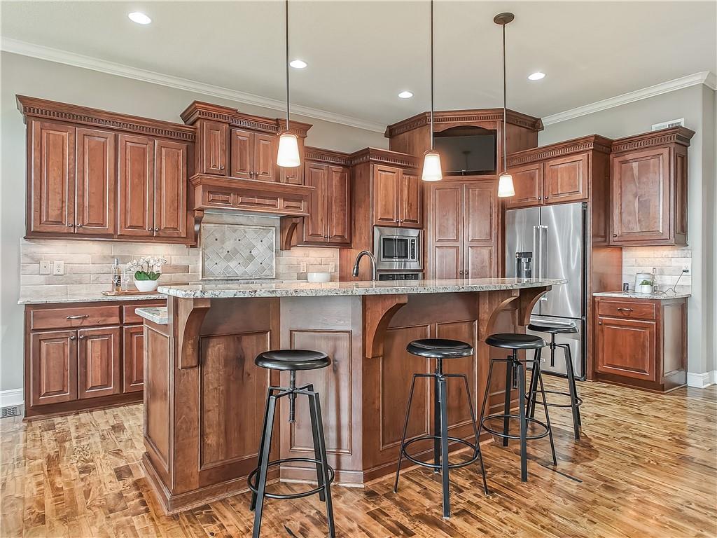 Sensational walk-out reverse 1.5-story in sought-after Polo Fields, offering the perfect blend of open living, thoughtful design, and exceptional functionality. The expansive great room welcomes you with rich hardwood floors and a striking see-through direct vent fireplace, creating a warm connection between the living and entertaining spaces. The open layout flows seamlessly into the kitchen and dining area—ideal for both everyday living and hosting. The kitchen is a true centerpiece, featuring a large island, granite countertops, stainless steel appliances, and a spacious walk-in pantry. A conveniently located laundry room with utility sink sits just off the kitchen for added ease. This meticulously maintained home shines with a massive finished walk-out lower level designed for entertaining and versatility. Enjoy two separate rec spaces, a stylish wet bar with granite countertops, and a convenient half bath. Two additional bedrooms with a full bath provide the perfect setup for guests, family, or flexible living needs, plus abundant storage throughout. Step outside to relax or entertain on the private screened-in covered deck, or take in the outdoors from the lower-level patio—both offering peaceful, usable outdoor living spaces. Additional highlights include: • All stucco exterior for timeless curb appeal • Walk-out lower level • Instant hot water system • Storm shelter for peace of mind • Sprinkler system • Oversized 3-car garage with heaters and high-intensity lighting—perfect for hobbies, projects, or extra storage This home truly delivers space, comfort, and quality in one of the area’s most desirable communities.