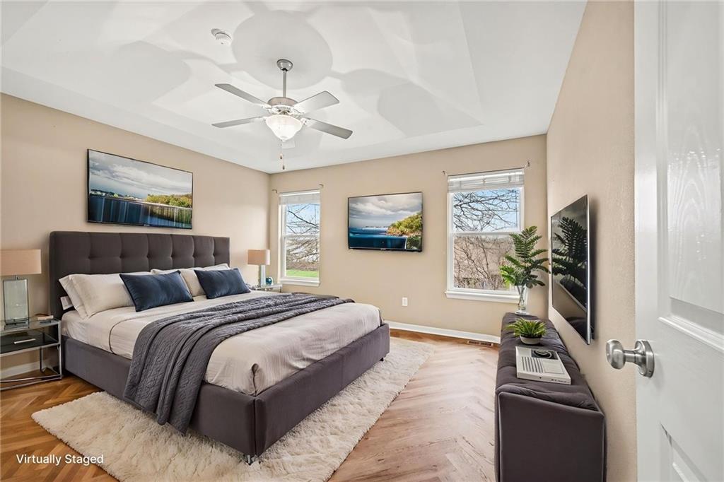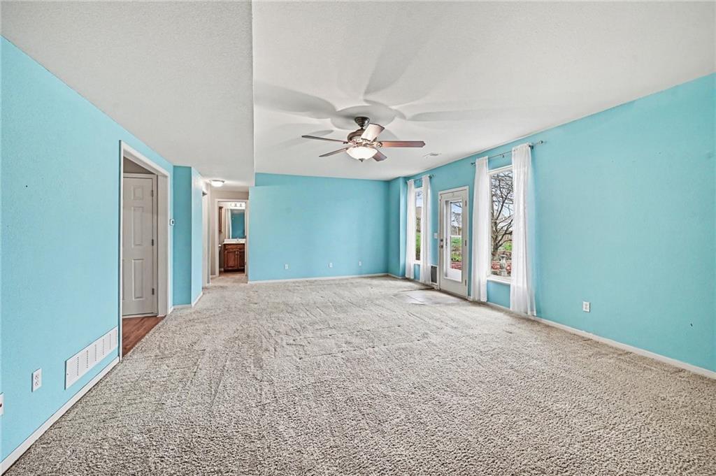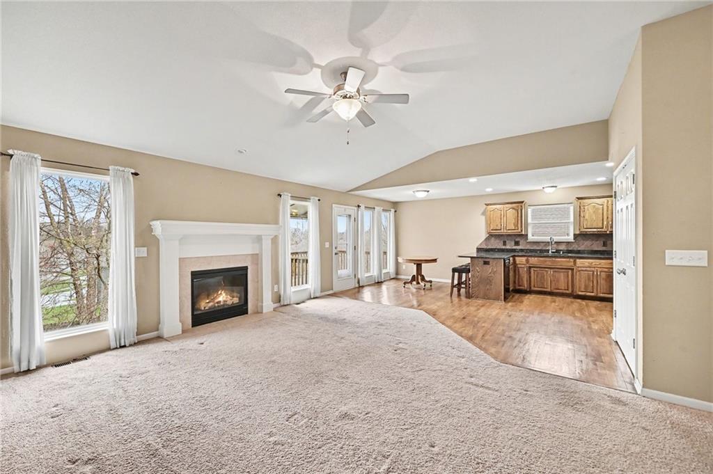 OPPORTUNITY is knocking! This versatile former model home is built for multi-generational living, house hacking, or income potential (World Cup?) with 2 SEPARATE LIVING SPACES under one roof! Each level offers its own kitchen, laundry, living room with fireplace, private entrance, and outdoor space—making it easy to live in one and rent the other, or keep everyone comfortably together. Upstairs offers true one-level living with an accessible entry ramp (concrete steps are still underneath if removal is desired). You’ll find 3 bedrooms, all with walk-in closets, and 2 full baths. The primary suite includes gorgeous chevron-pattern LVP flooring, a jetted tub, separate walk-in shower, double vanity, and bidet. The main living area is bright with lots of windows, soft curtain treatments, a cozy gas fireplace, and opens to a private deck with a covered awning. The kitchen is spacious and fully equipped, ALL APPLIANCES STAY—including the front-load washer and dryer. The lower level lives like its own place with a separate entrance, full kitchen, large living room with fireplace, bright windows, a bedroom with a walk-in closet, and a full bath. There’s also a laundry area (hookups in place), a huge storage space with built-in shelving, and a walk-out to the patio and fully fenced backyard. Outside you’ll find a 3-car garage, terraced flower beds, fire pit, and low-maintenance vinyl siding. Big-ticket items are already done—the roof is newer, the HVAC, A/C, and water heater are all under 3 years old. 200 AMP service and radon mitigation system already in place.All appliances stay, including a 3rd Refrigerator in the garage. It's hard to find this kind of flexibility in one home—especially with everything already set up and ready to go. Located in the established White Tail Pond Subdivision this area offers a quiet setting with a pond and easy access to shopping, dining, and major highways. NO HOA!