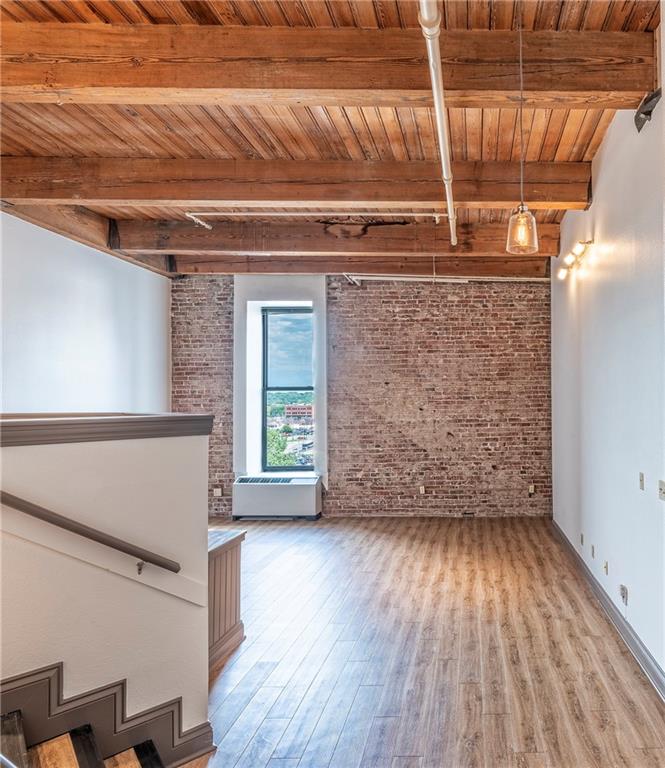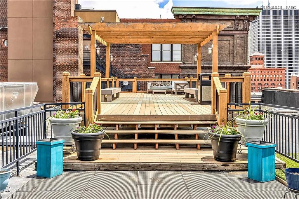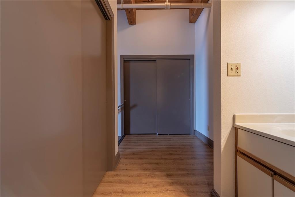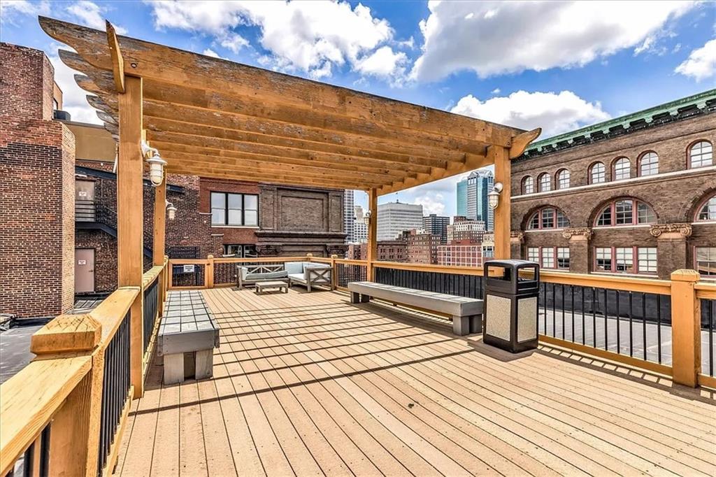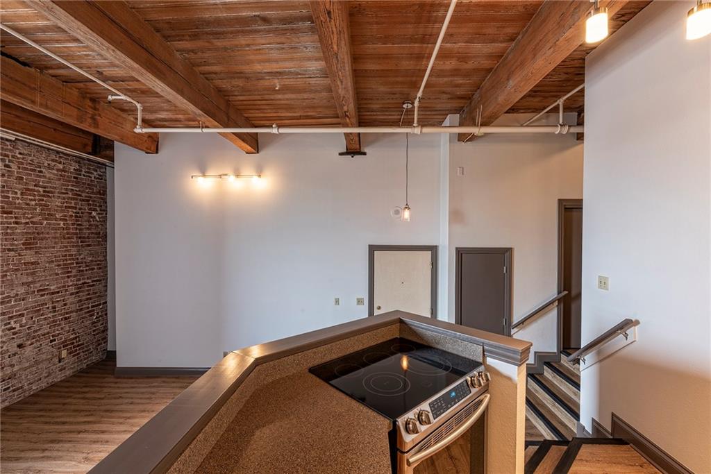 This Soho studio delivers everything people want in city living. It offers a sophisticated warehouse aesthetic, great amenities, and exceptional walkability. Nearby entertainment districts provide options day and night, while a one-month minimum lease policy makes it not only a great place to live but also a flexible investment opportunity. Exposed brick walls, soaring timber ceilings, sky-high views, and new flooring add texture, warmth, and just the right amount of industrial edge, while practical upgrades like an in-unit washer/dryer and new HVAC add real value. A pull-out bed rounds things out beautifully, allowing the space to shift between living, sleeping, and hosting without sacrificing openness. The elevated kitchen features thoughtful updates, including granite countertops, stainless steel appliances, and generous cabinetry, delivering both functionality and a seamless connection to the living area. Residents enjoy a rooftop patio with skyline views, fitness center, sauna, yoga room, and a club room complete with a pool table for relaxing or socializing. Additional storage is available, and garage parking can be leased. Located in the heart of Downtown Kansas City, you’re steps from coffee shops, restaurants, nightlife, and everyday essentials, with easy access to the River Market, KC Streetcar, and the energy of the Power & Light District just minutes away. Equal parts character, convenience, and investment potential, this loft is proof that good things come in well-designed spaces.